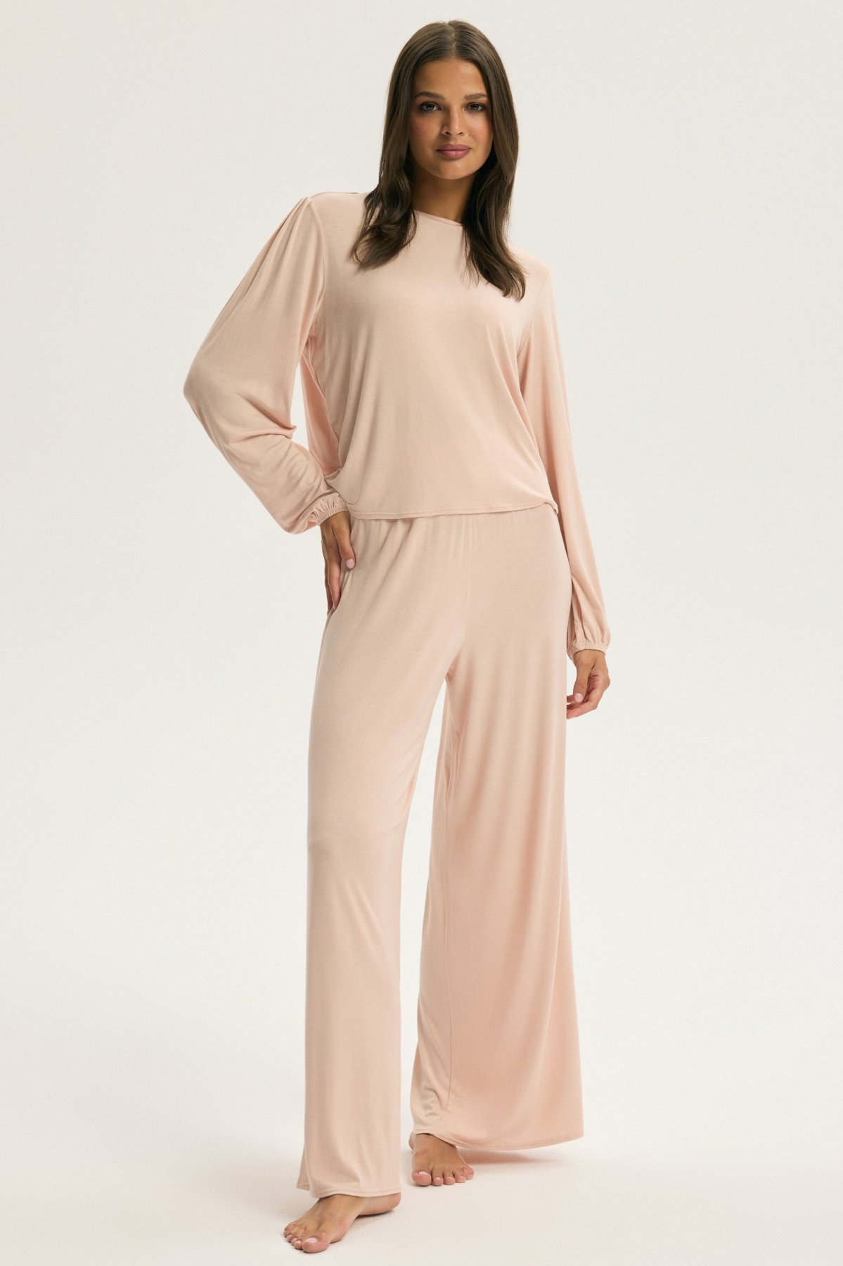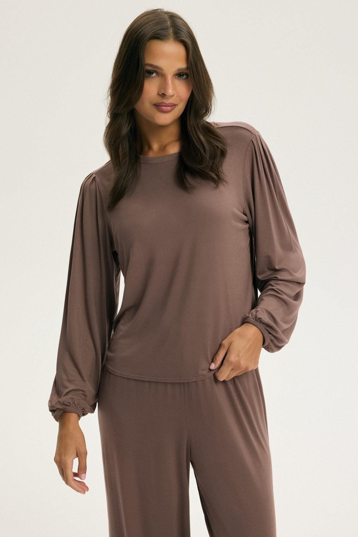 Dámská pyžama / homewear z měkkého materiálu typu softVolný a pohodlný střih – mikina s kulatým výstřihem a dlouhým…
