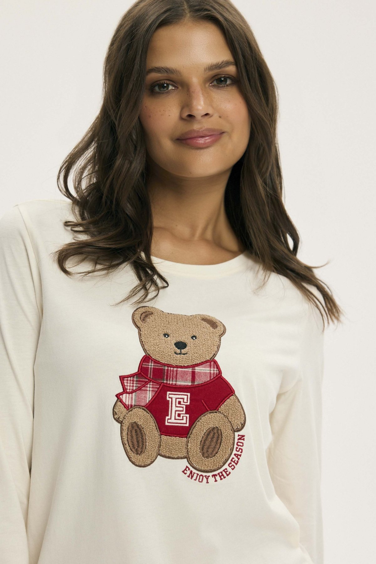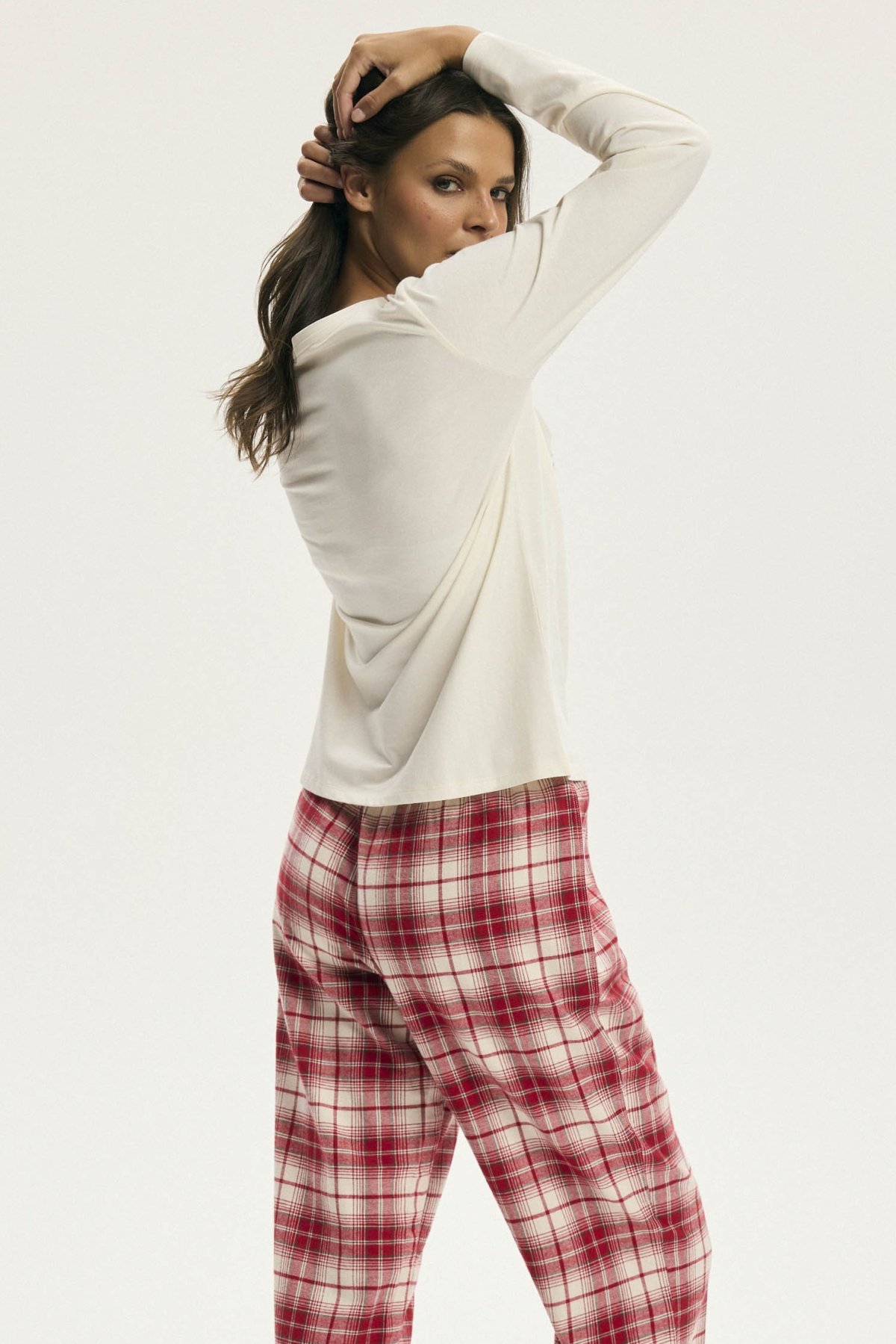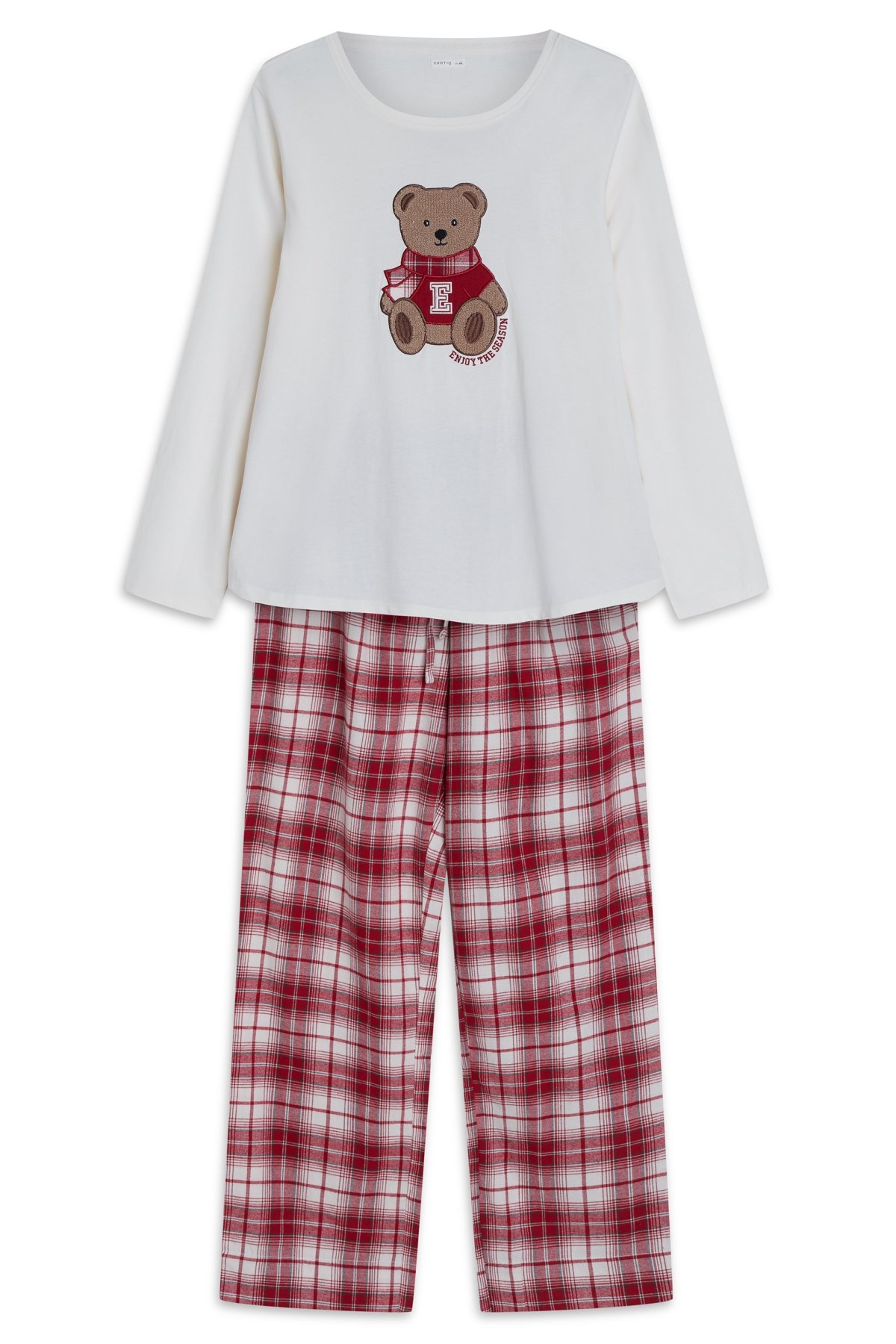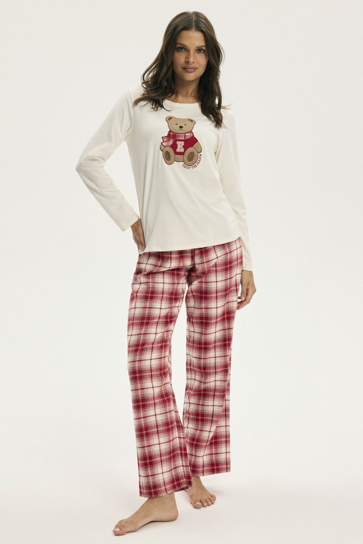 Pyžamo Chrismis spojuje měkkost, teplo a hravou náladu v jednom. Horní díl tvoří tričko s dlouhým rukávem, kulatým výstřihem a obrázkem medvídka na přední straně. Součástí jsou dlouhé kostkované kalhoty, které zahřejí. V pase mají pružnou gumu a stahovací šňůrku.