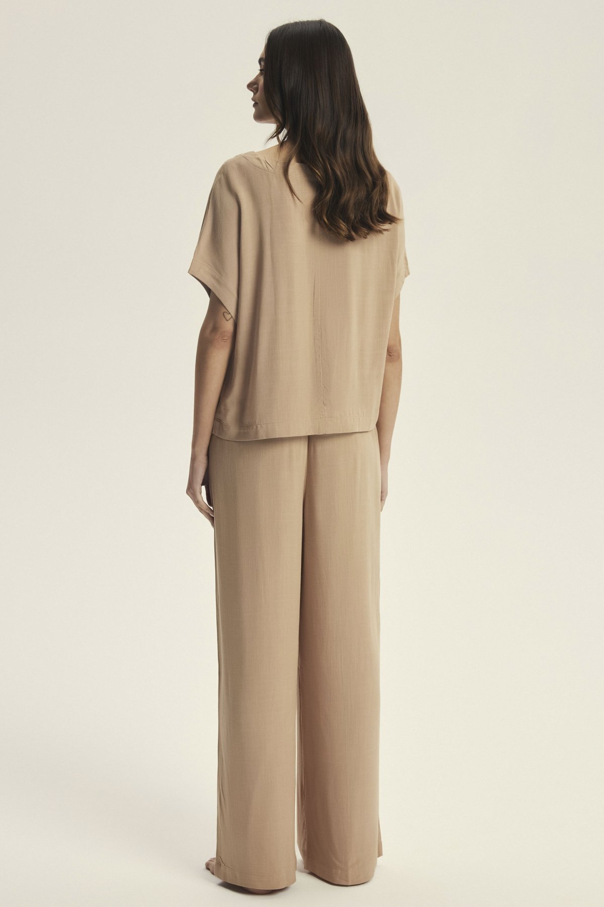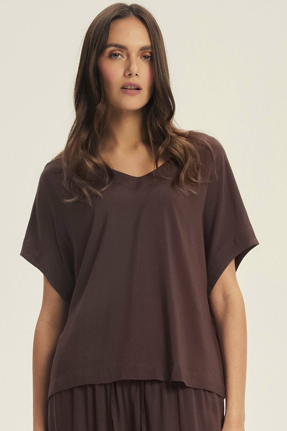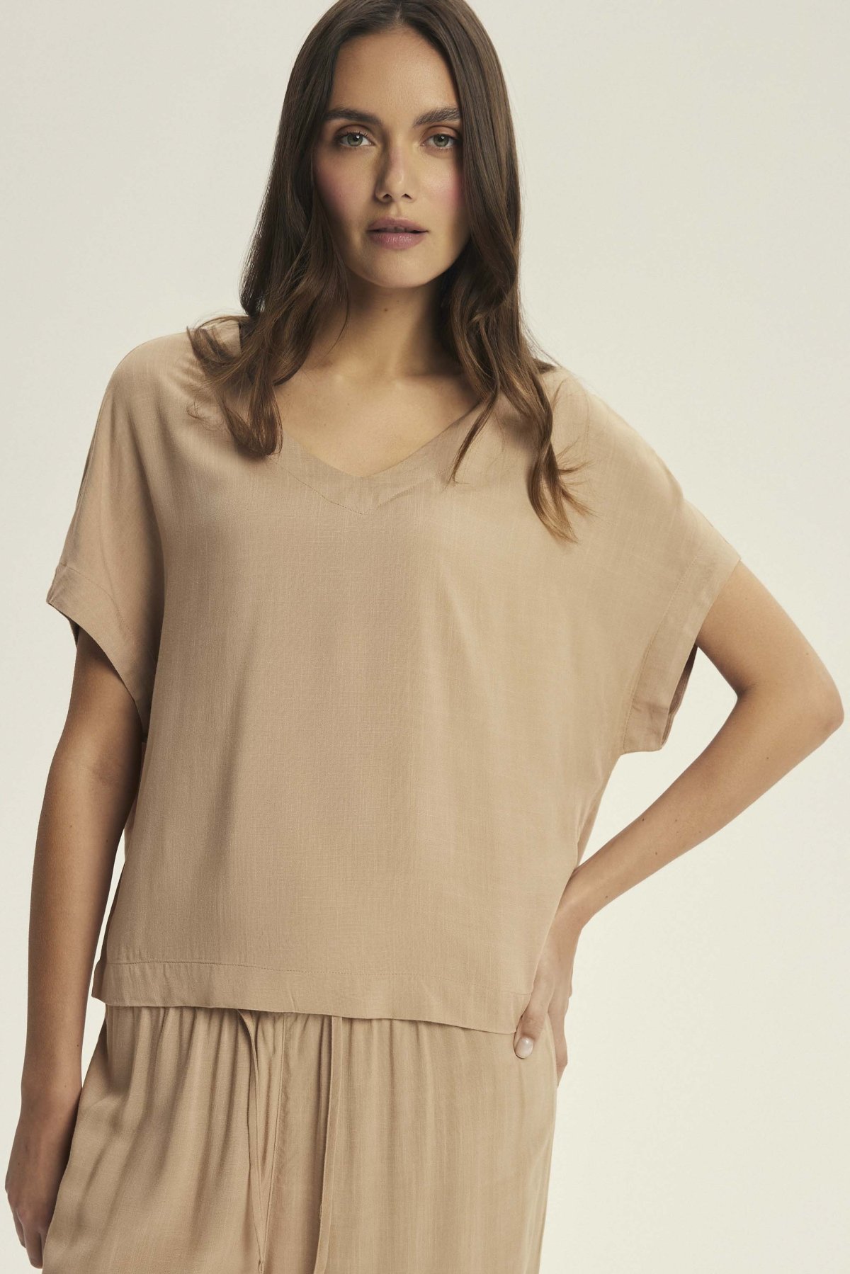 - volná halenka s krátkým rukávem a výstřihem do „V“
