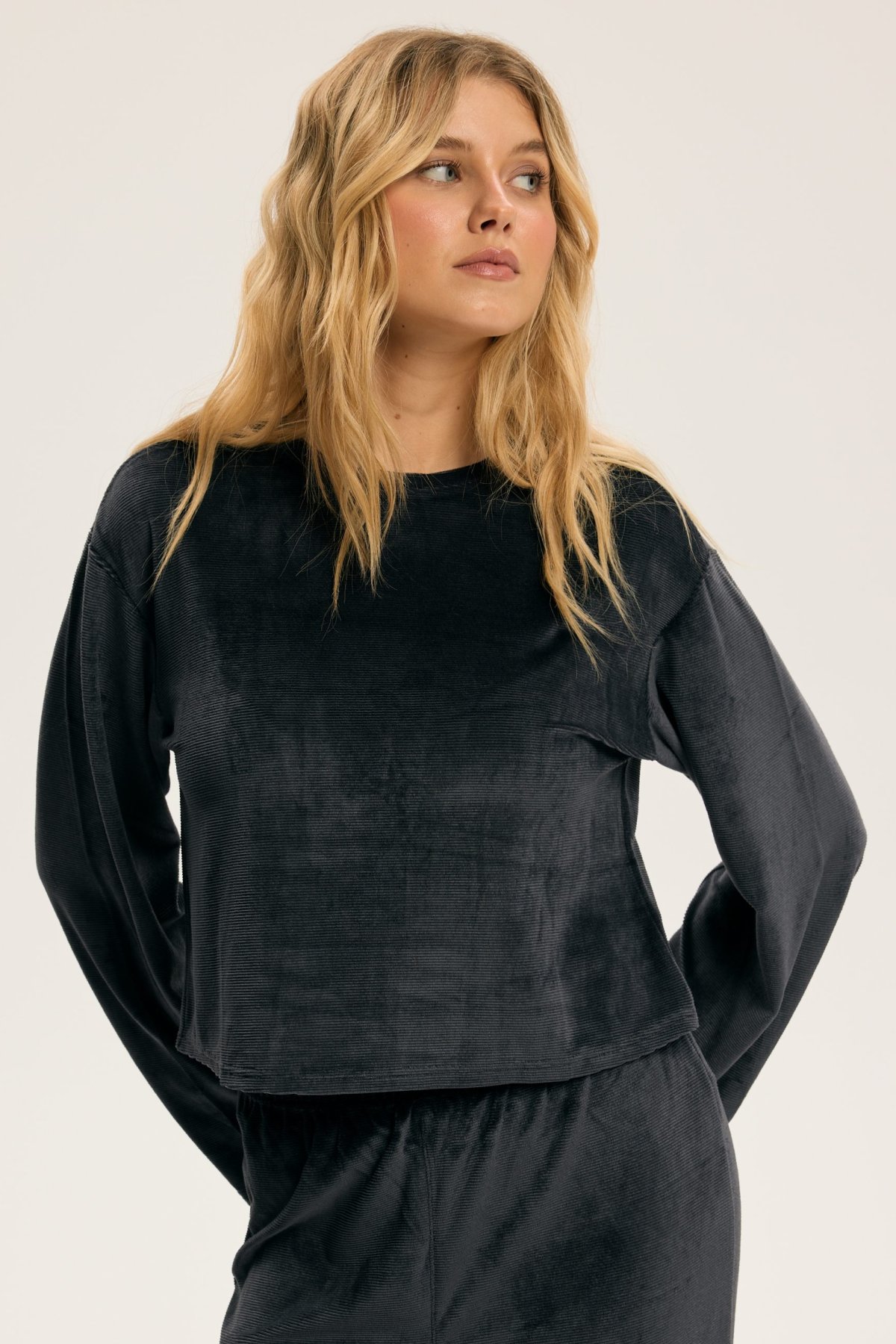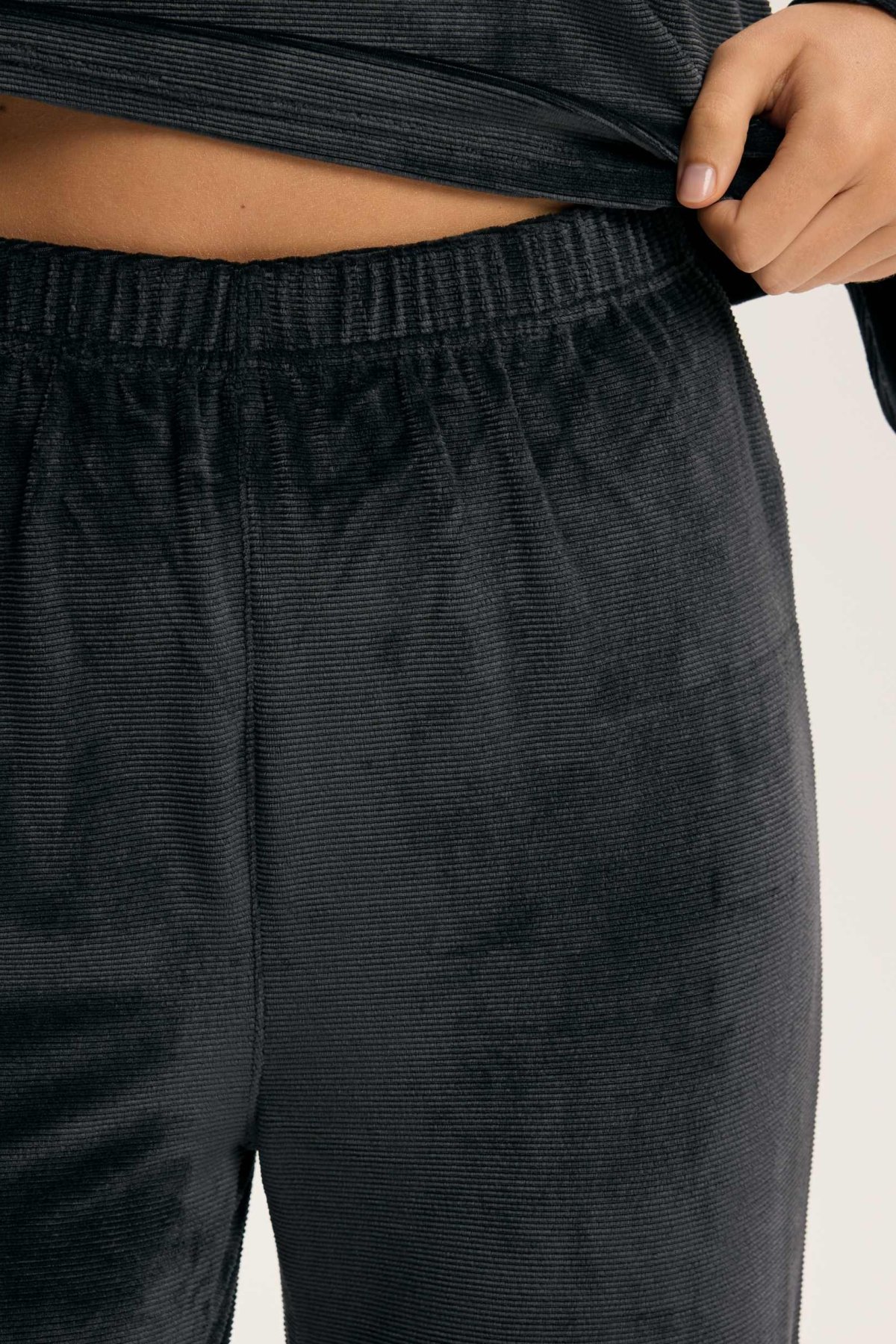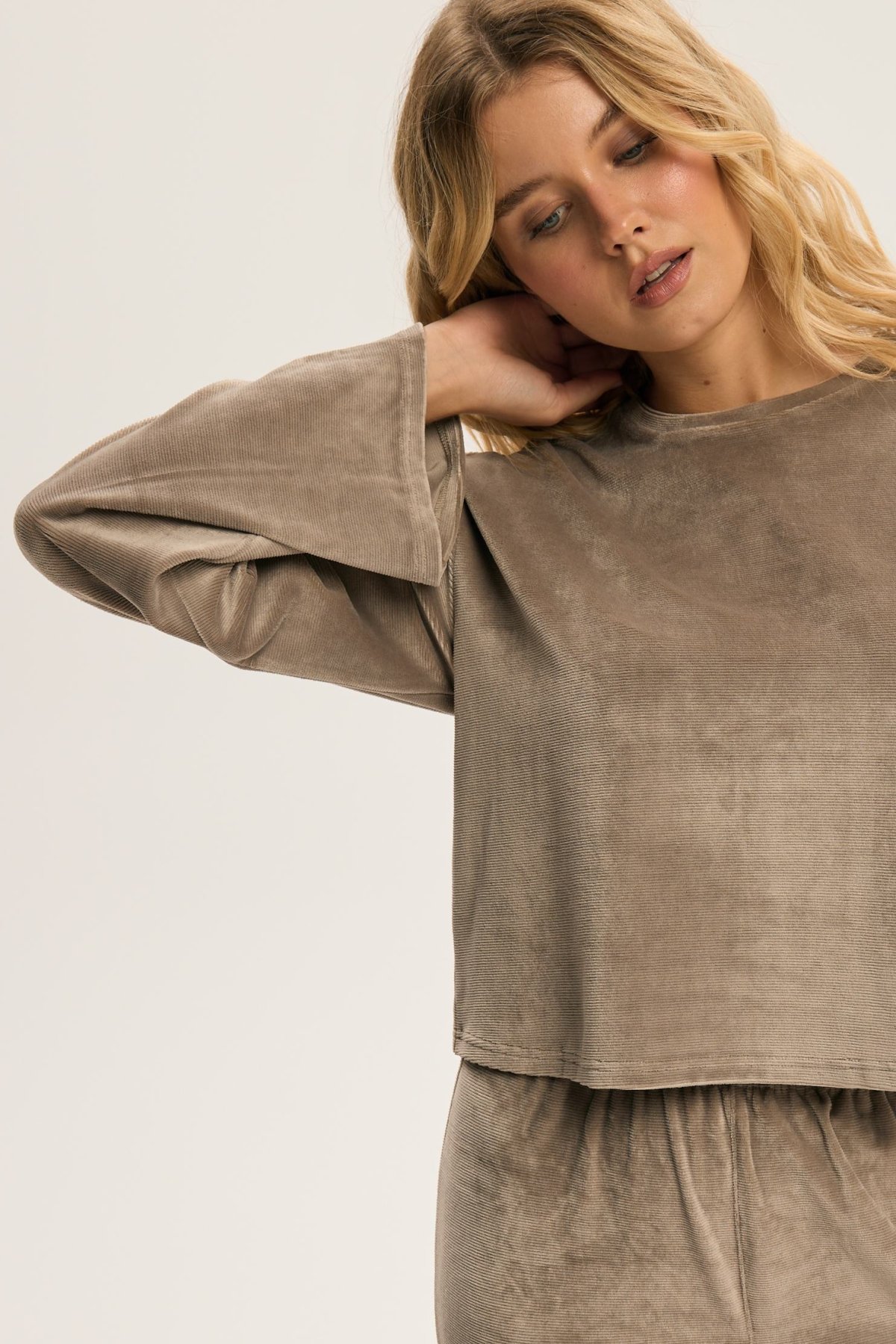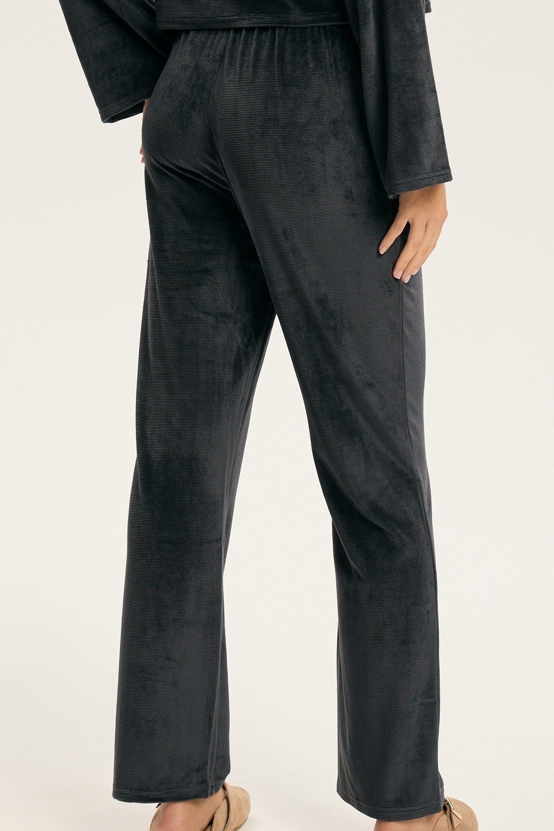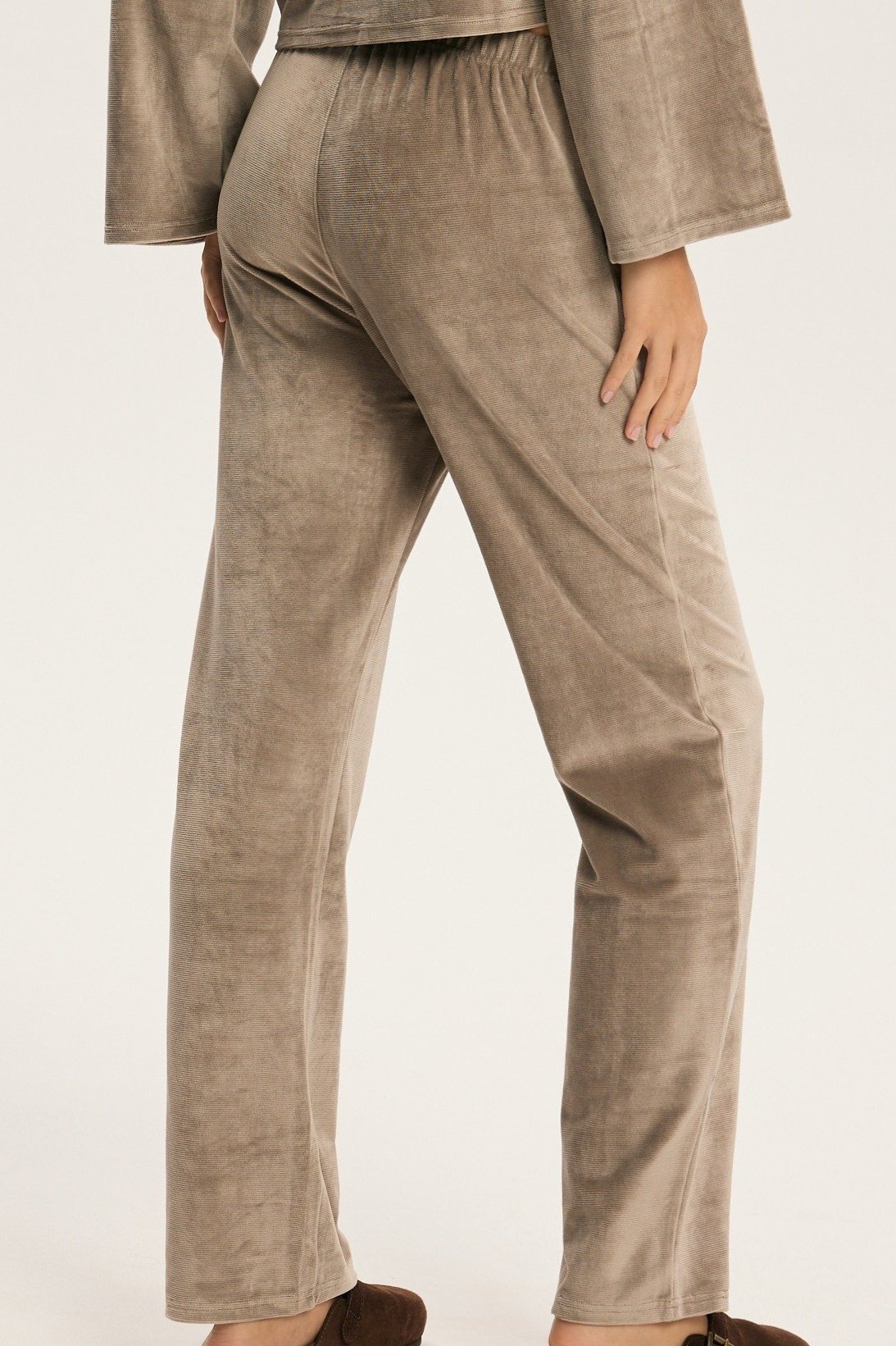 Dámské pyžamo Dreamy je ztělesněním elegance a pohody v jednom. Hebký velurový materiál jemně přiléhá k pokožce a vytváří příjemný pocit tepla a měkkosti. Volný horní díl s širokými rukávy působí uvolněně a sofistikovaně zároveň. Kalhoty s pružným pasem se přizpůsobí postavě a zaručí maximální komfort při spánku i lenošení. Decentní odstíny pyžama dodávají klidnou, harmonickou energii, která navozuje pocit relaxace už při oblékání. Dreamy je perfektní volbou pro ženy, které si chtějí dopřát luxusní pohodlí a styl i během klidných večerů doma.
