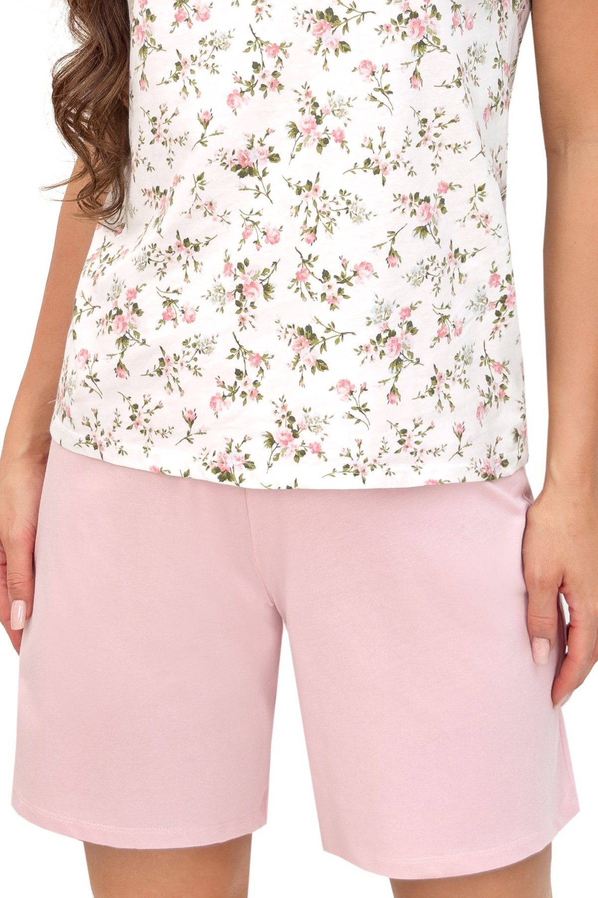 dámské pyžamo z jemné bavlny top na tenká ramínka květinový vzor v jemných barvách růžové kraťásky s ozdobnou…
