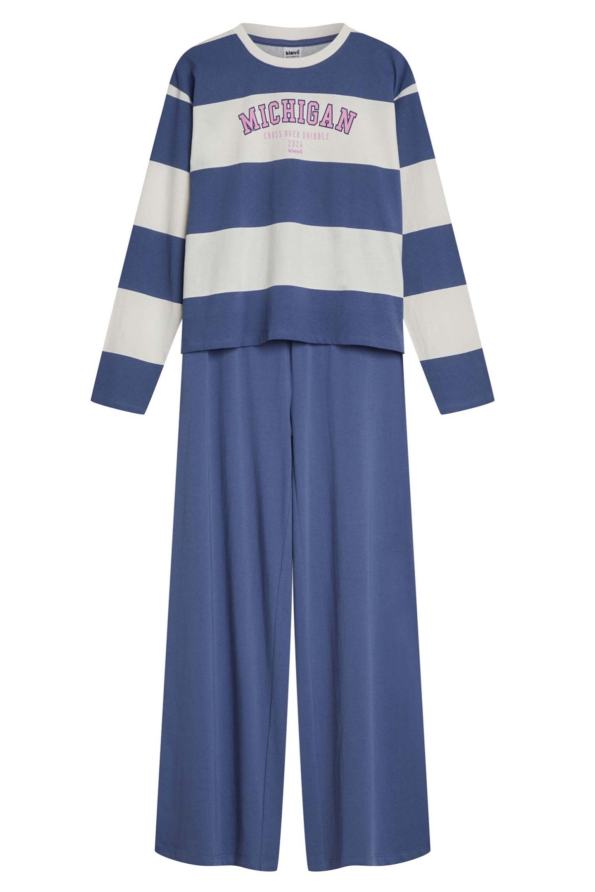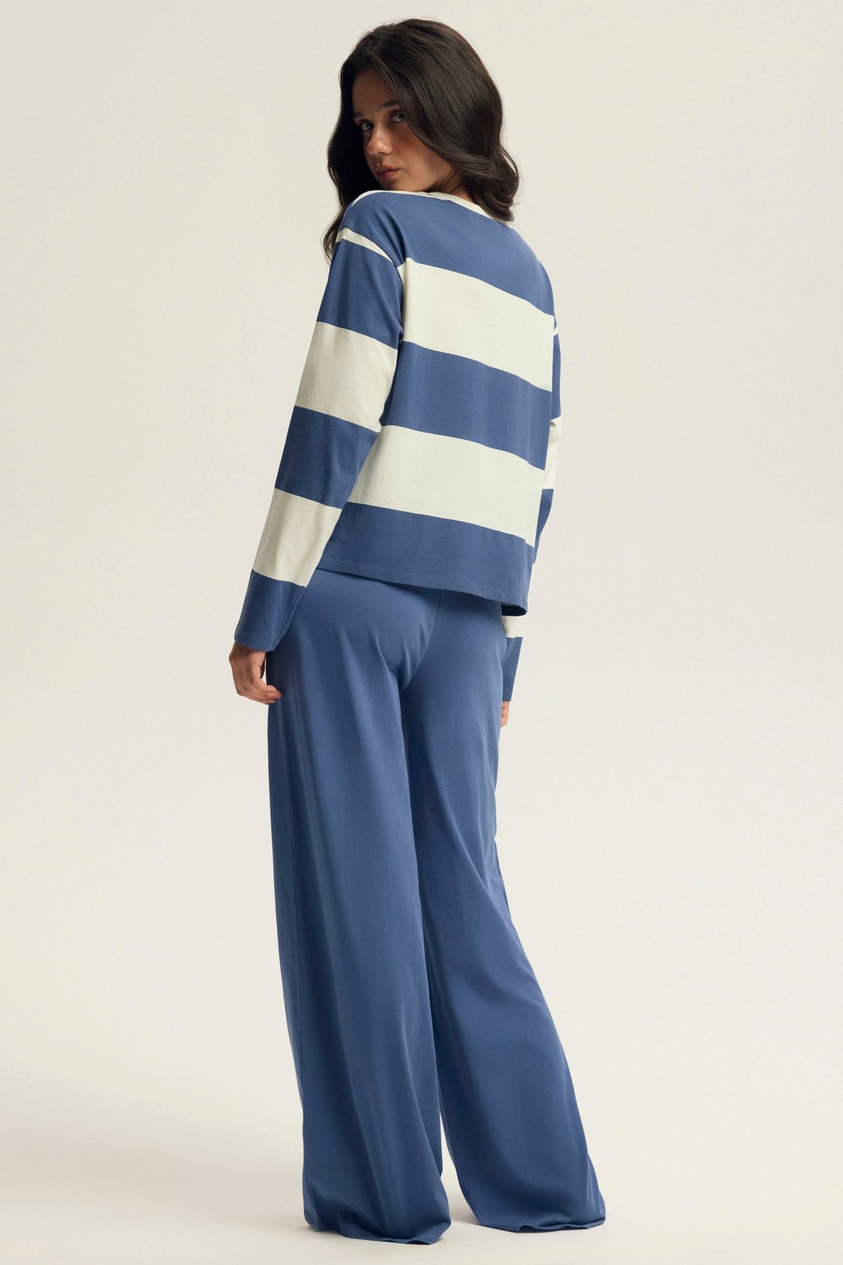 - horní díl s dlouhými rukávy, klasickým kulatým výstřihem a rovnými kalhotami