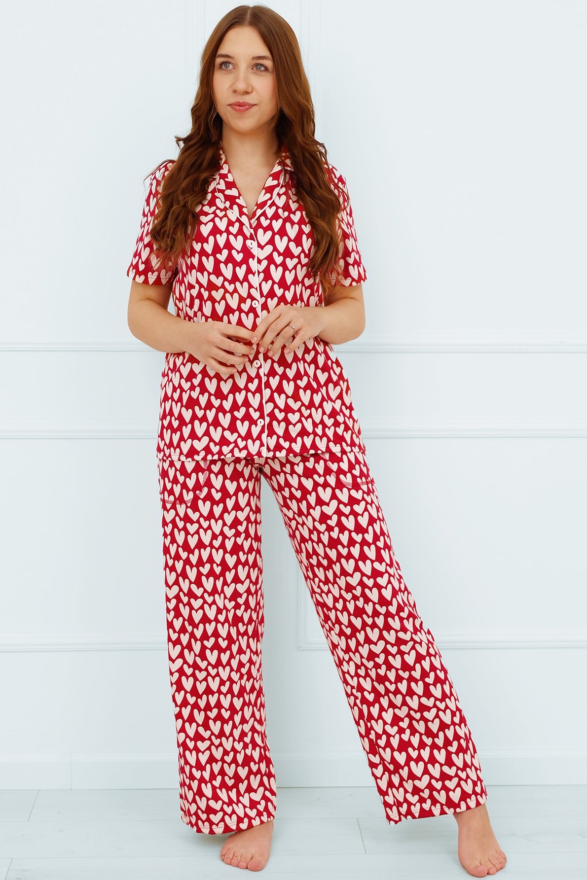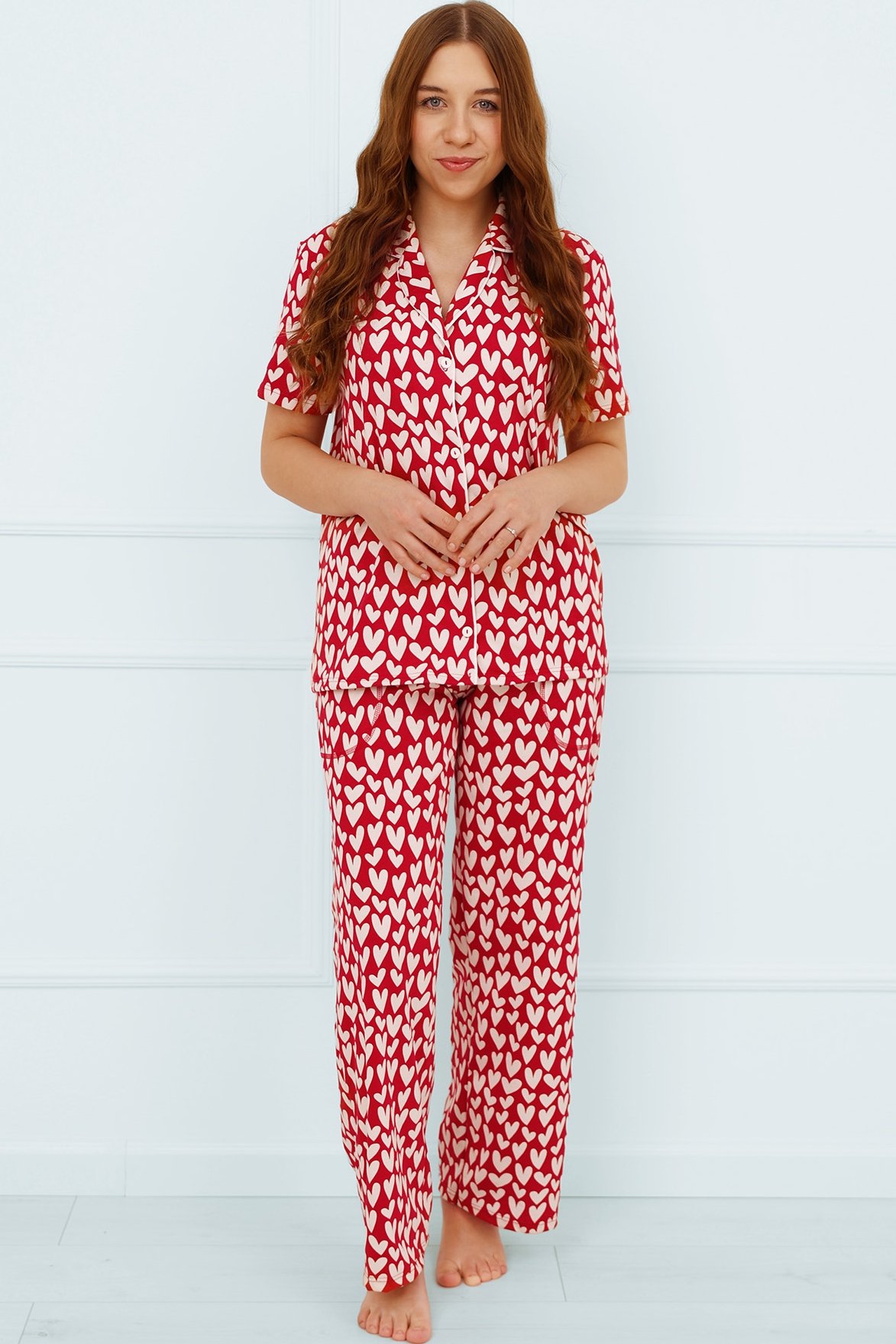 Romantické dvoudílné pyžamo s půvabnými motivy srdíček, které se může hodit na Valentýna nebo pro jakýkoliv jiný večer…