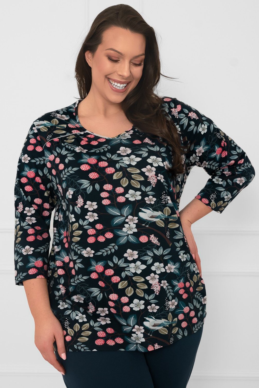 - halenka s jemným květinovým potiskem na tmavém podkladu