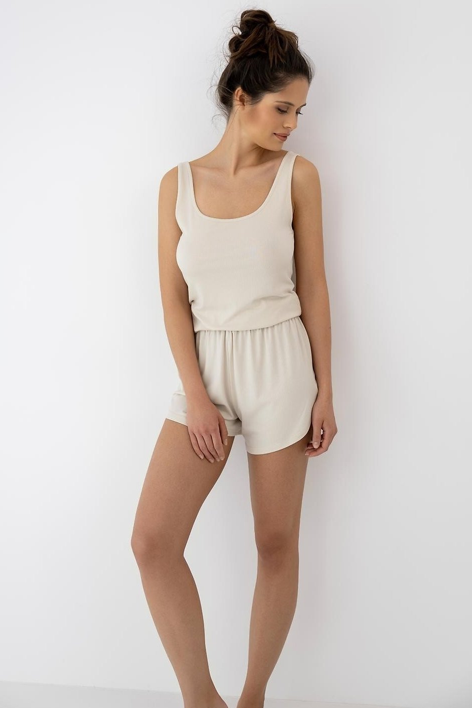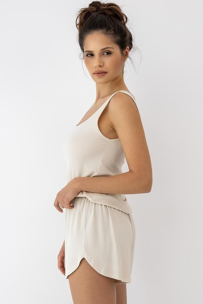 Letní pyžamo Lumi je ideální pro teplé noci – lehké, prodyšné a nesmírně příjemné na těle. Jemně žebrovaná viskóza působí elegantně a zároveň zajišťuje skvělý komfort při spaní i domácím odpočinku. Volný střih šortek a širší ramínka topu poskytují svobodu pohybu, zatímco široká guma v pase drží šortky na místě bez nepříjemného stahování. Pyžamo působí minimalisticky, přesto žensky – perfektní pro ženy, které ocení jednoduchý design a kvalitu zpracování. Skvělá kombinace stylu, komfortu a lehkosti od značky Sensis.