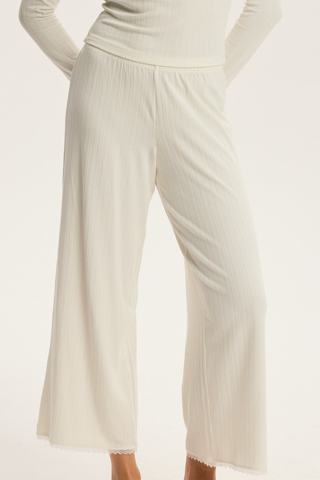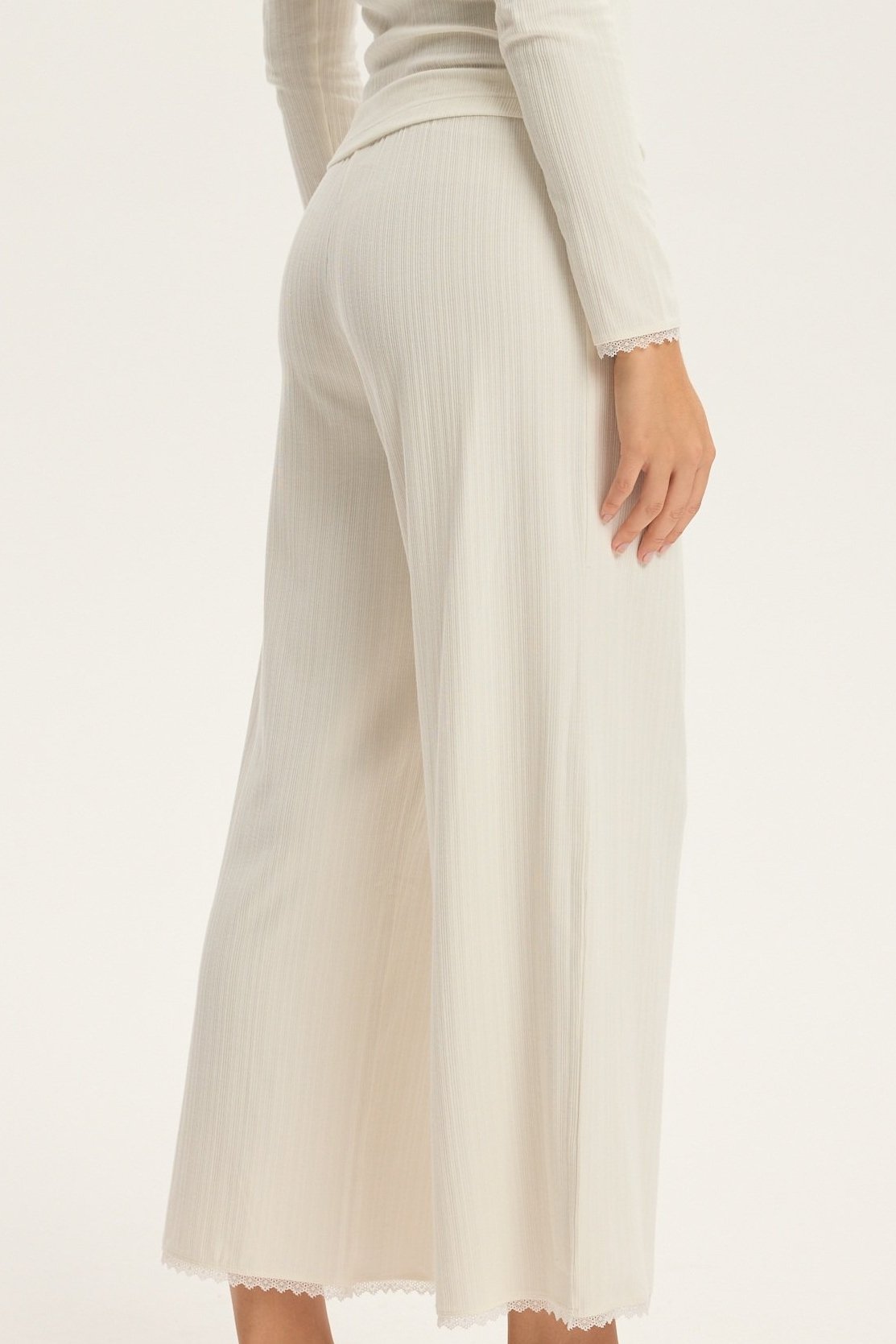 Dvoudílné dámské pyžamo Misty v barvě jemného krému. Je vyrobeno z kvalitní směsi viskózy, bavlny, akrylu a elastanu, která je příjemná na dotek, prodyšná a zároveň krásně hřeje. Tato směs materiálů zajišťuje, že pyžamo si zachovává svůj tvar i po mnoha praních. Jednoduchý, ale promyšlený střih doplňuje pružný pas, díky kterému se dokonale přizpůsobí postavě.