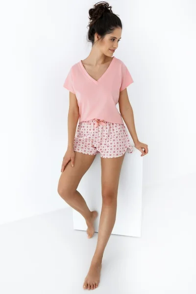 Dámské dvoudílné pyžamo, jeho základem je kvalitní bavlna a prodyšná viskóza.