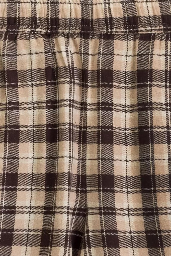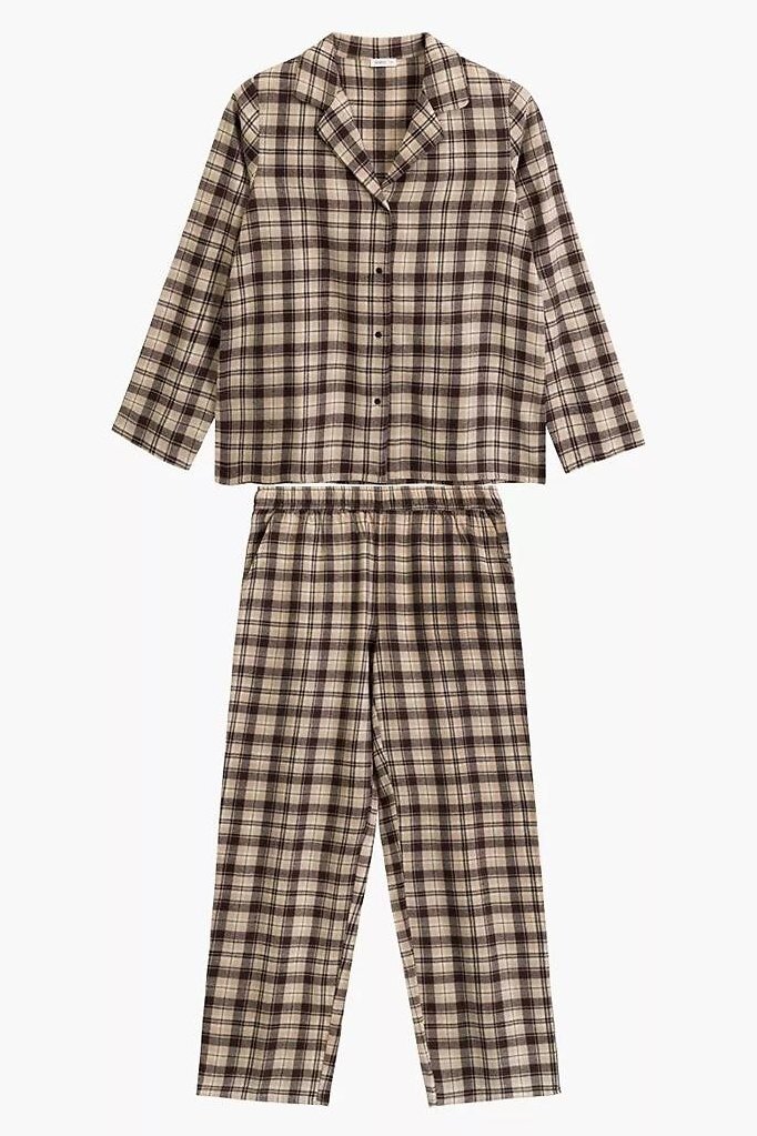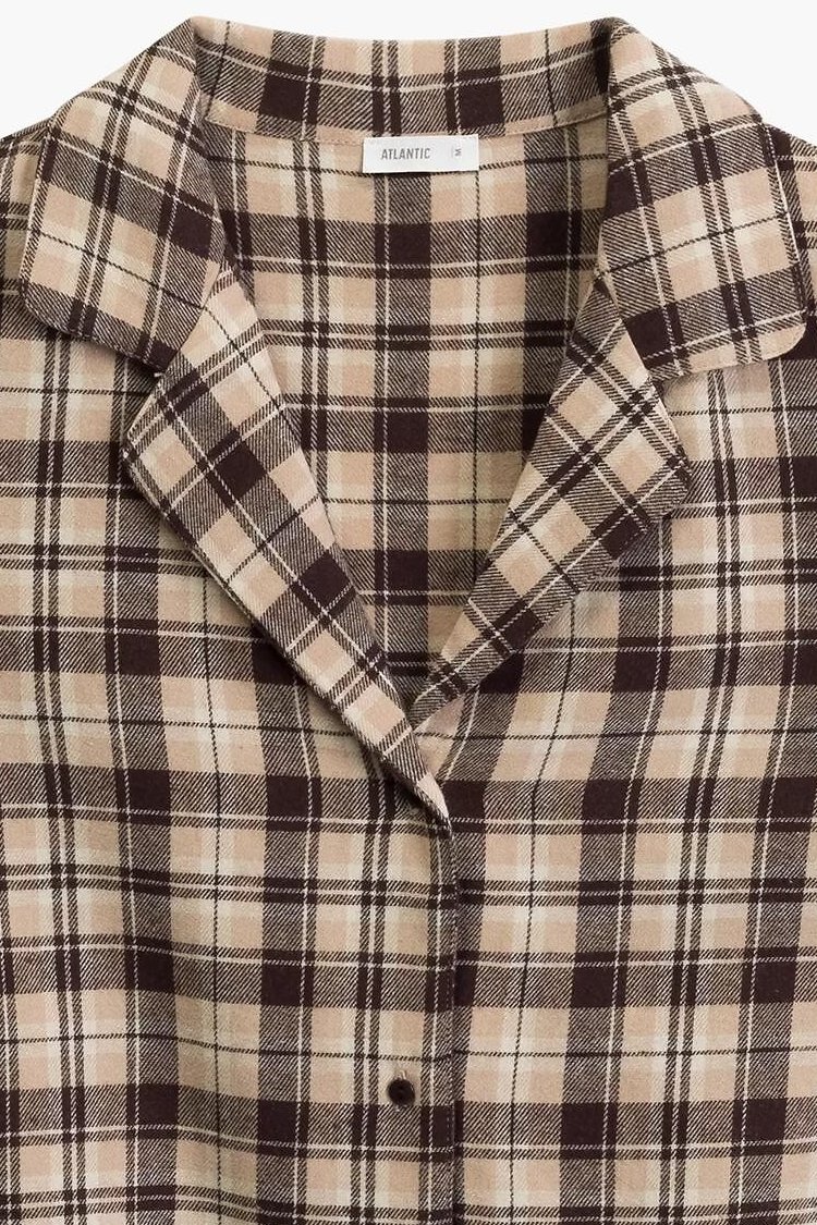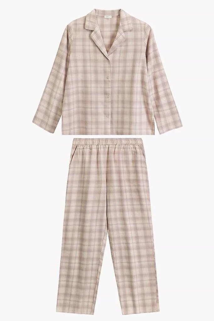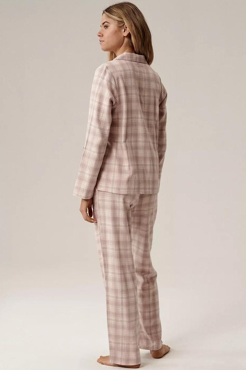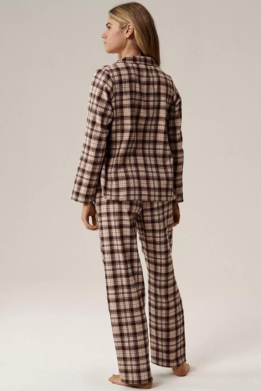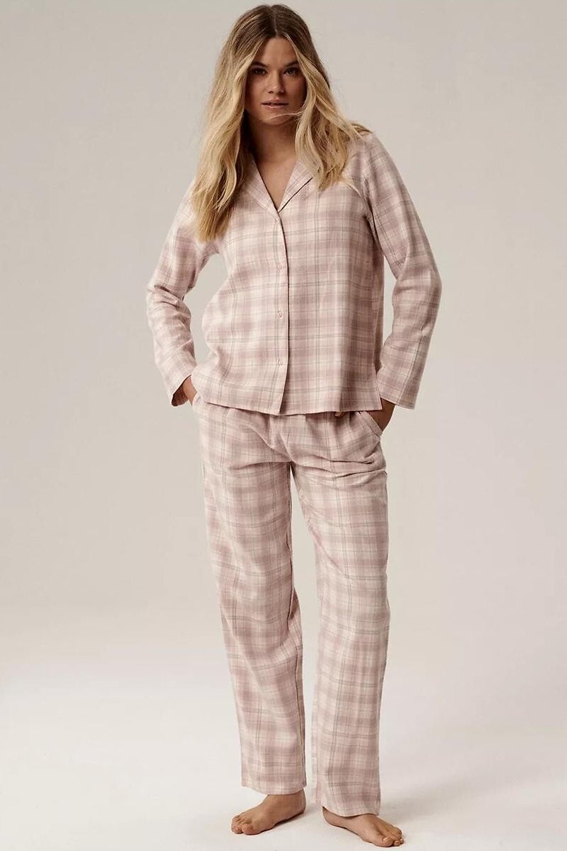 Klasické dámské pyžamo je ideálním společníkem na chladnější večery i lenivé víkendové rána. Je vyrobena z měkké flanelové bavlny, která je hřejivá, prodyšná a příjemná na dotek. Nadčasový vzor v kostku dodává pyžamu útulný a elegantní charakter. Horní díl v podobě košile s límečkem a zapínáním na knoflíky působí tradičně, ale zároveň velmi pohodlně. Spodní část tvoří dlouhé kalhoty s uvolněným střihem nohavic, které zajišťují volnost pohybu. Díky gumce v pase obšité bavlnou se kalhoty příjemně nosí a nikde netlačí. Praktické kapsy v bocích oceníte při domácím nošení.
