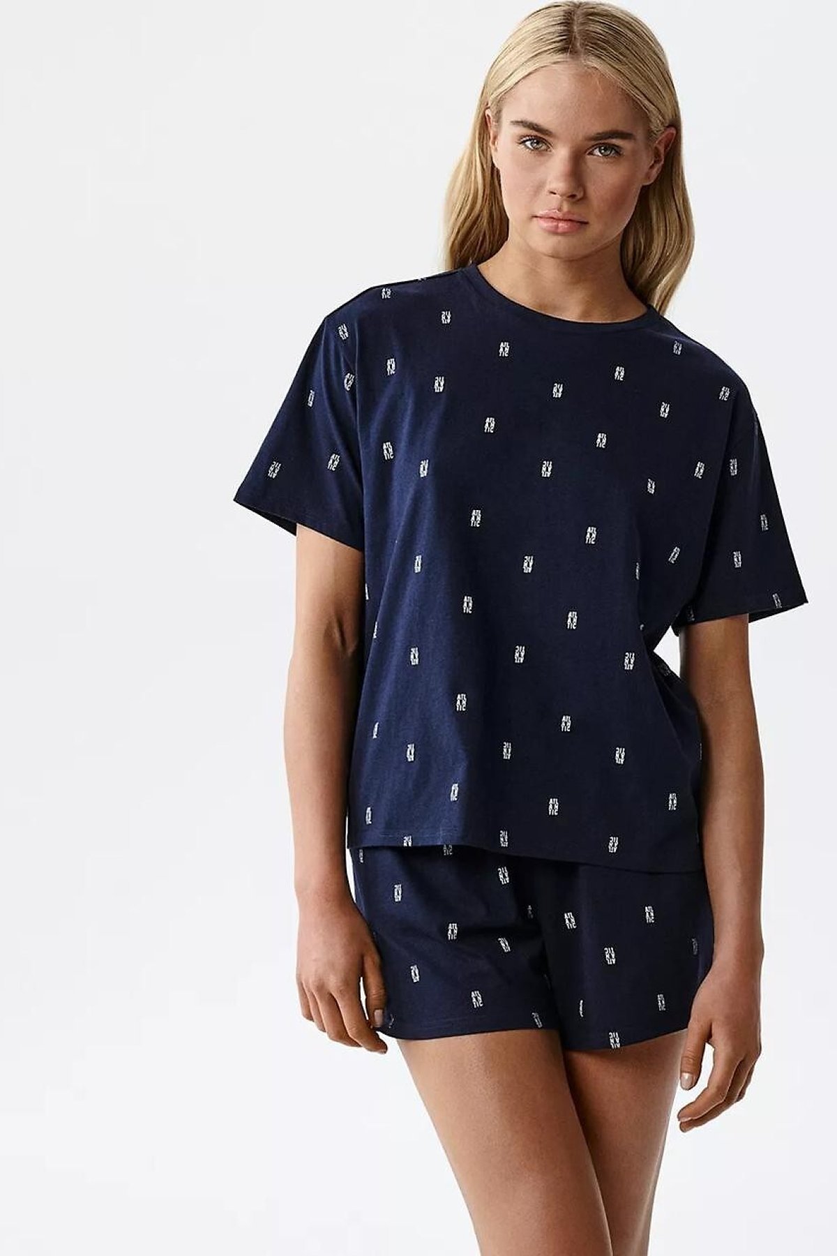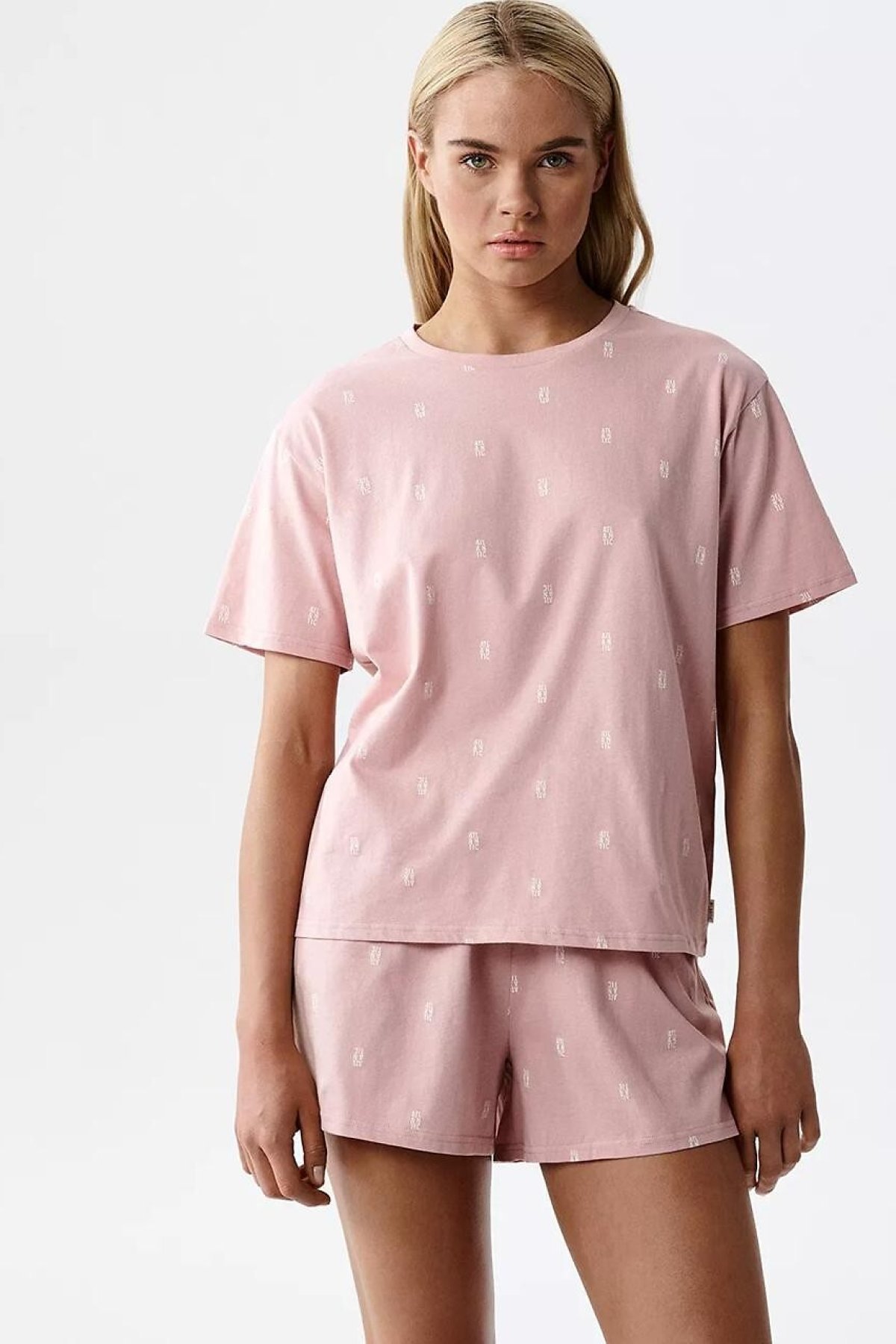 Dámské pyžamo Atlantic NLP-510 je pohodlný komplet na spaní i domácí odpočinek. Tvoří ho volnější tričko s krátkým rukávem a kulatým výstřihem doplněné krátkými šortkami se šňůrkou v pase pro lepší přizpůsobení postavě.