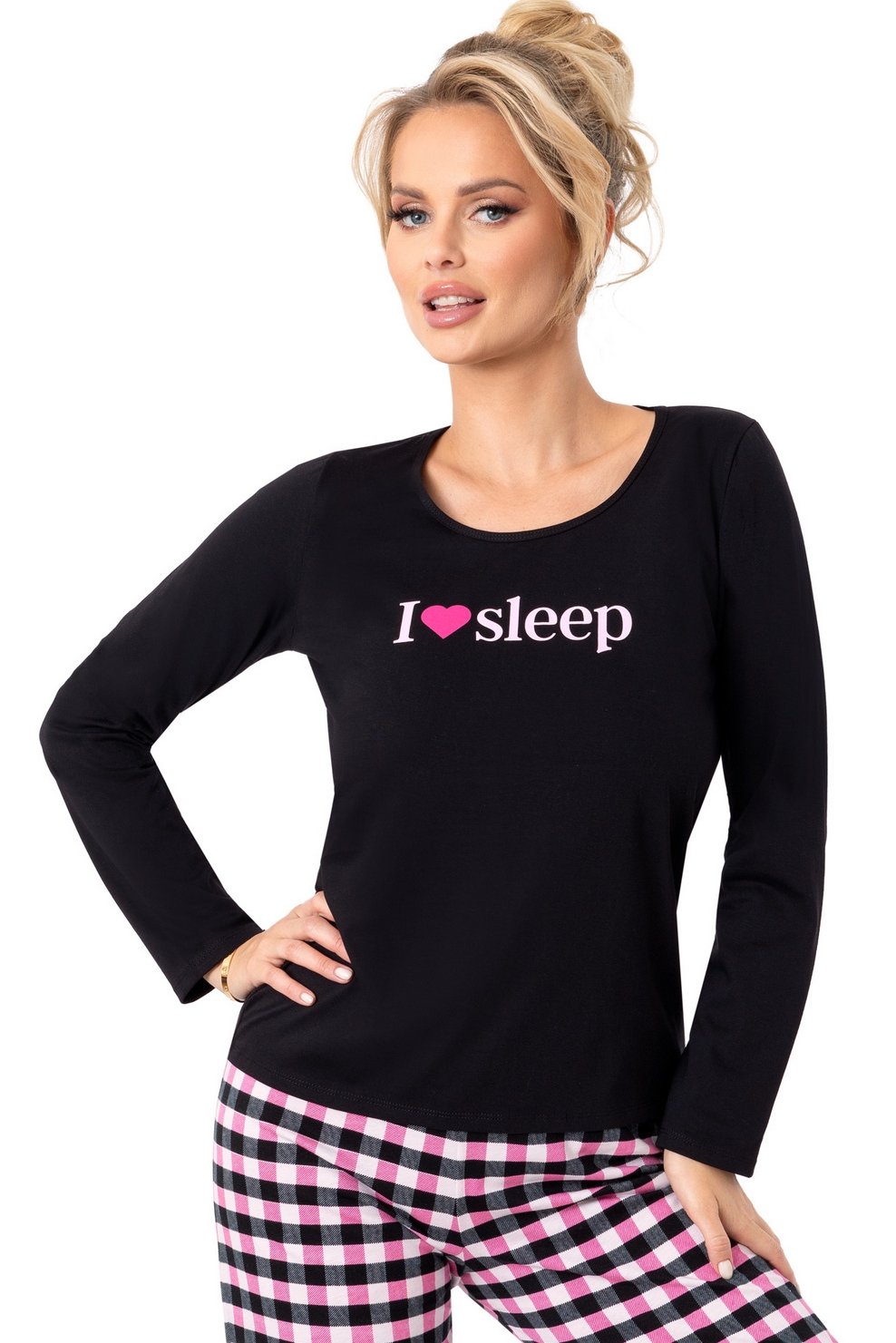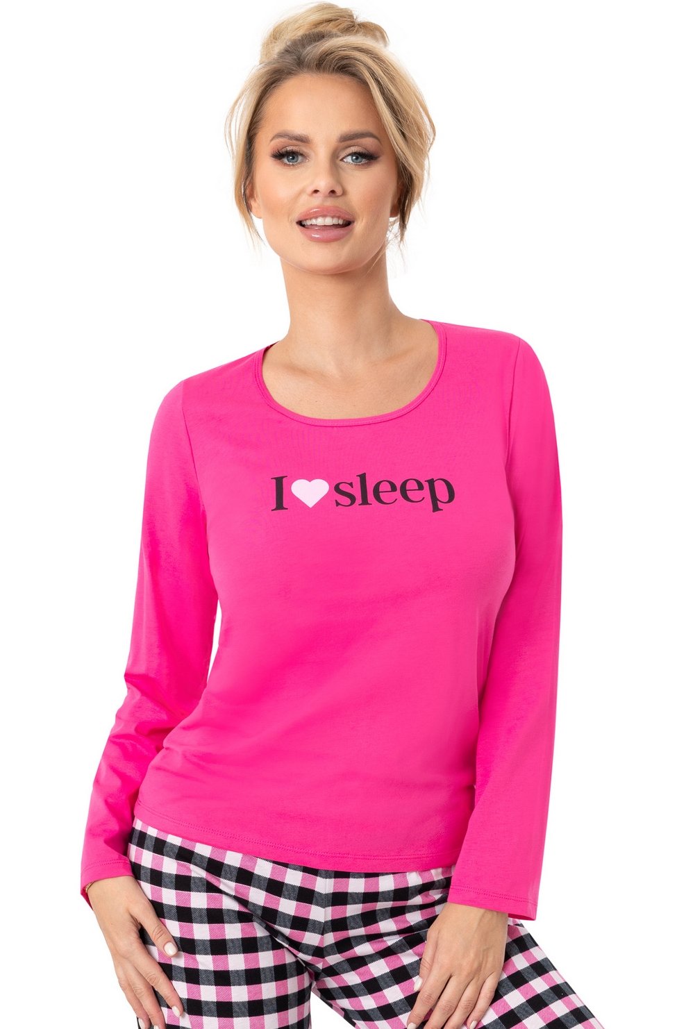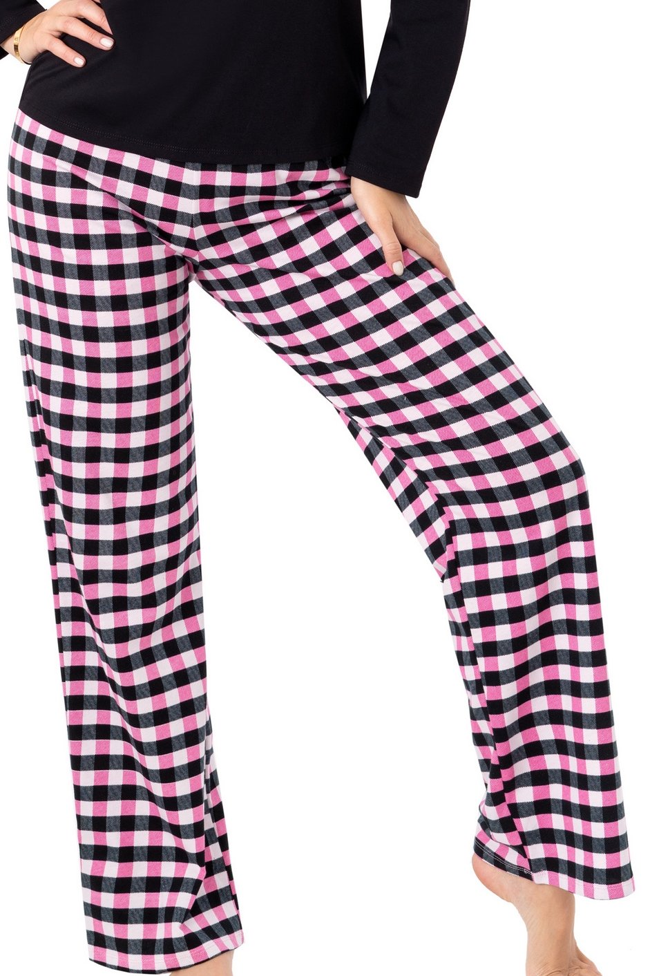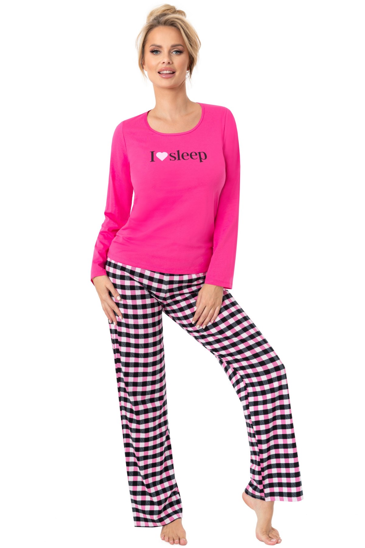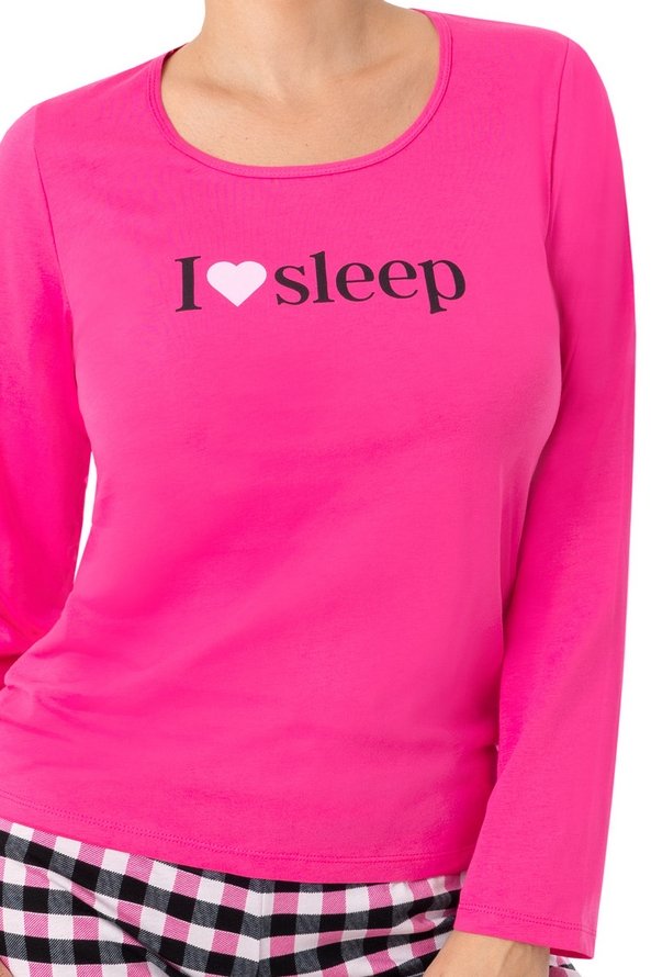 Horní díl je s dlouhým rukávem a kulatým výstřihem, decentní potisk u dekoltu dodává stylový akcent. Dlouhé kostkované kalhoty v klasickém střihu perfektně ladí s jednobarevným trikem a zajišťují komfort i volnost pohybu. Díky bavlněnému materiálu je pyžamo příjemné k pokožce a prodyšné, takže poskytuje pohodlí nejen při spánku, ale i při večerním relaxu doma. Skvělá volba do chladnějších dnů.