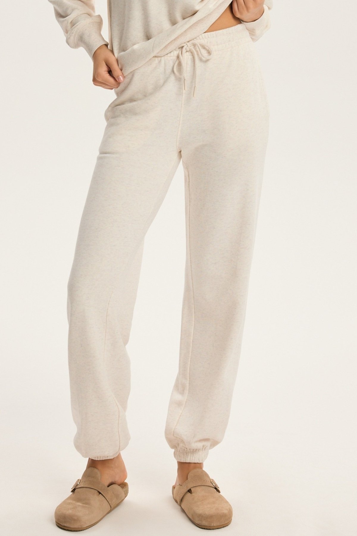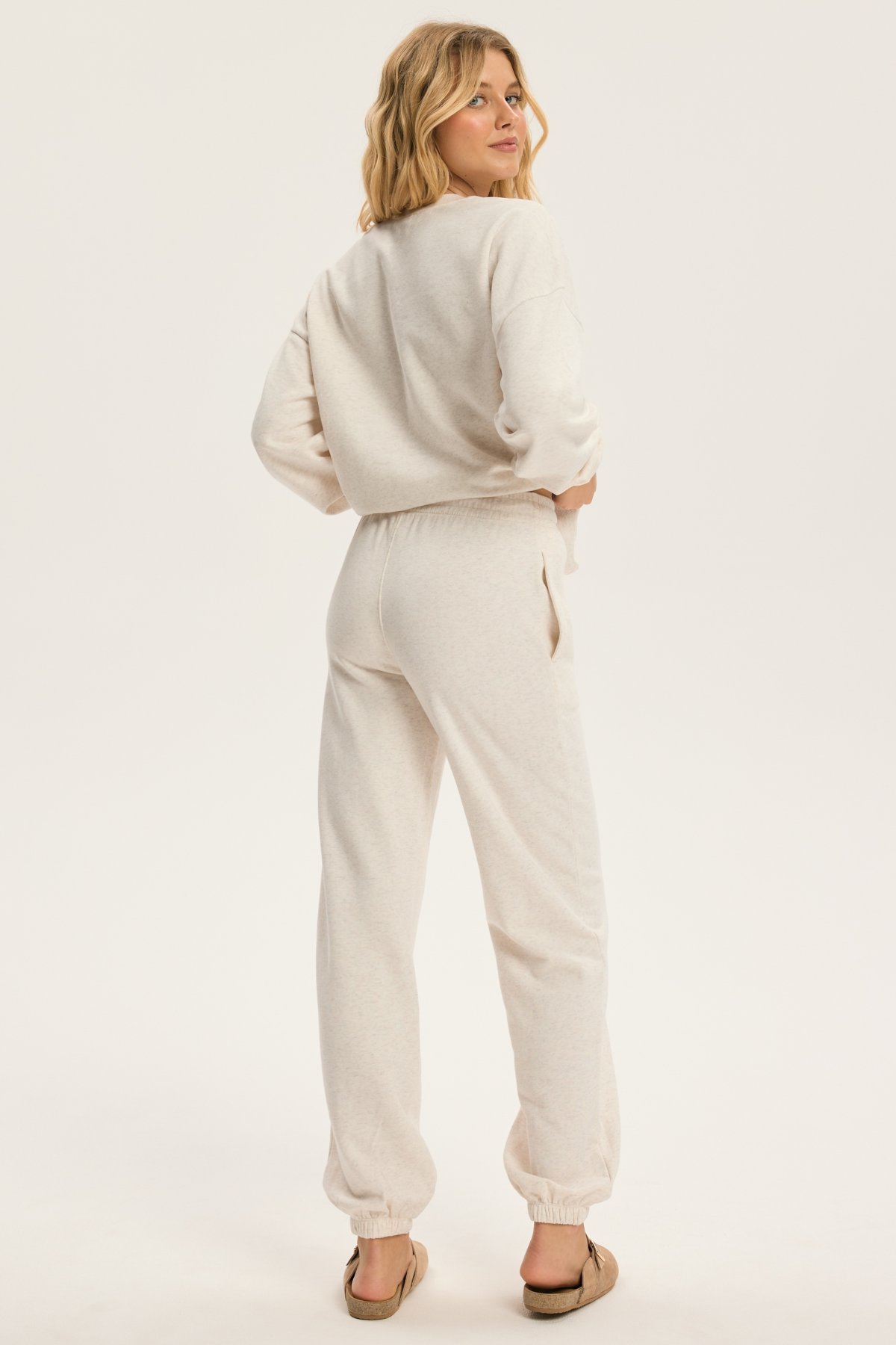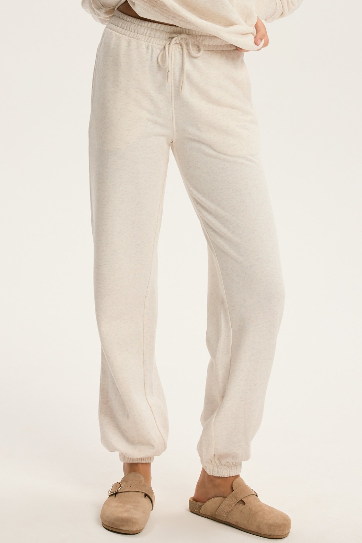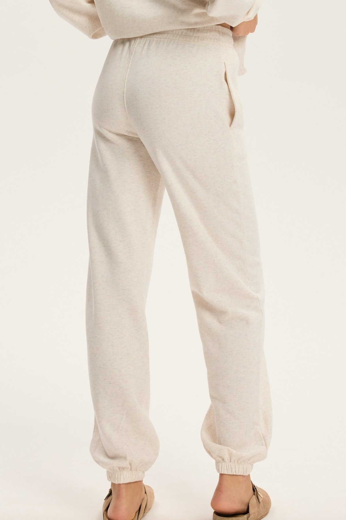 Dámské tepláky Cinnamon v krémovém odstínu. Vyrobené z měkké, příjemné teplákoviny, poskytují maximální komfort při nošení doma, na procházkách i během volných dní. Elastický pas se šňůrkou umožňuje individuální přizpůsobení, zatímco boční kapsy zvyšují praktičnost modelu. Střih s lehce zúženými nohavicemi působí moderně a lichotí postavě. Krémový tón dodává outfitu svěžest a ženskou eleganci – perfektně se doplňuje s mikinou ze stejné kolekce, čímž vzniká stylový a pohodlný komplet pro každý den.