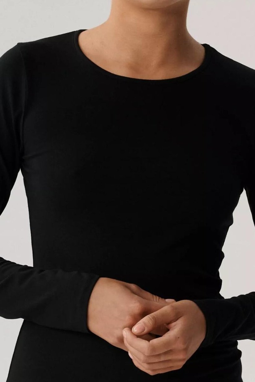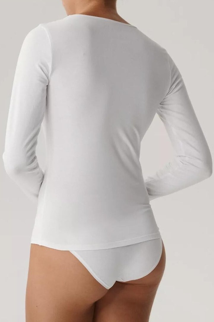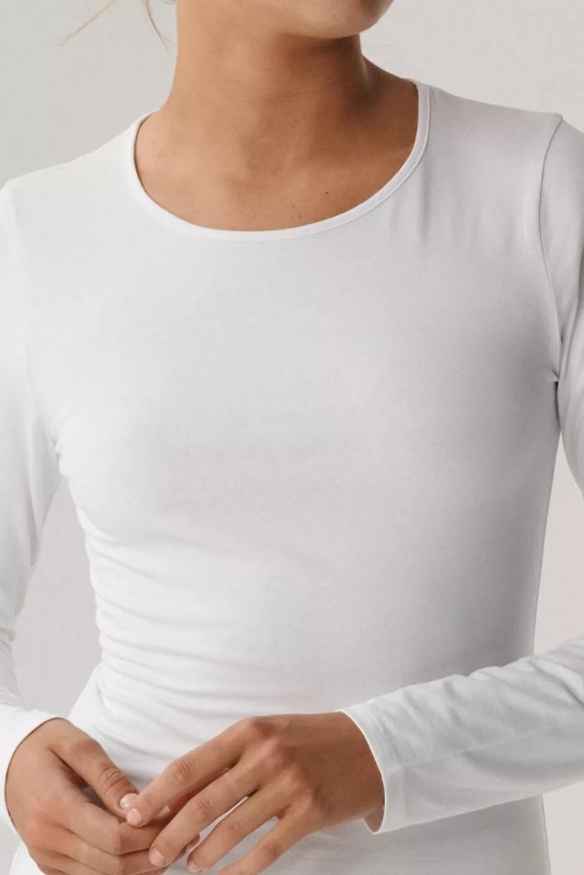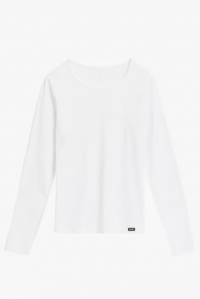 Dámské bavlněné tričko. Univerzální kousek, který nesmí chybět v žádném šatníku. Díky přirozené hebkosti bavlny a příměsi elastanu skvěle sedí na těle, je prodyšné a příjemné na nošení po celý den. Jednoduchý design s kulatým výstřihem a dlouhými rukávy z něj dělá ideální volbu pod svetr, sako nebo jako samostatný kousek pro volný čas. Dostupné v klasických barvách – bílé a černé – pro snadné kombinování s jakýmkoli outfitem.