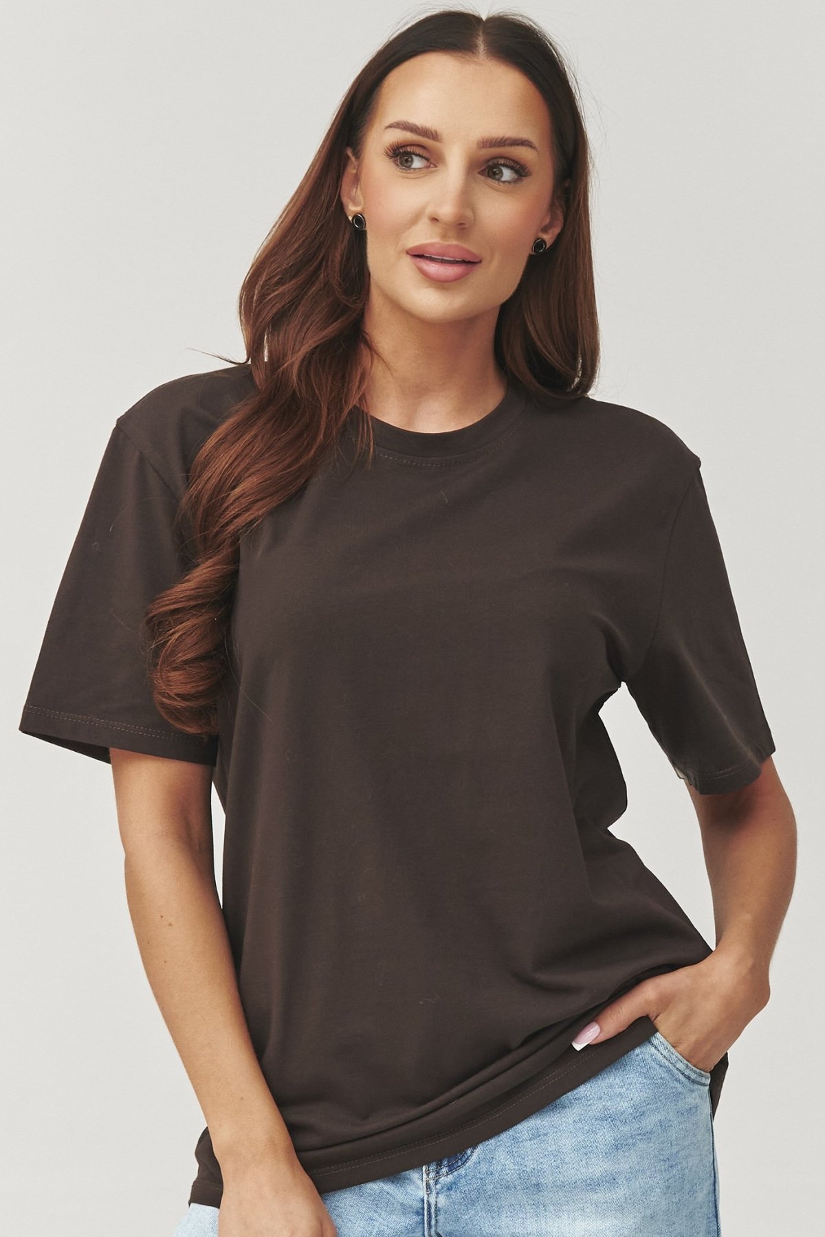 Klasické tričko v tmavě hnědém odstínu. Módní základ, který nikdy nevyjde z trendu. Jednoduchý střih a kvalitní bavlněný materiál zaručují komfort při každodenním nošení – ať už k džínům, sukni nebo pod sako.