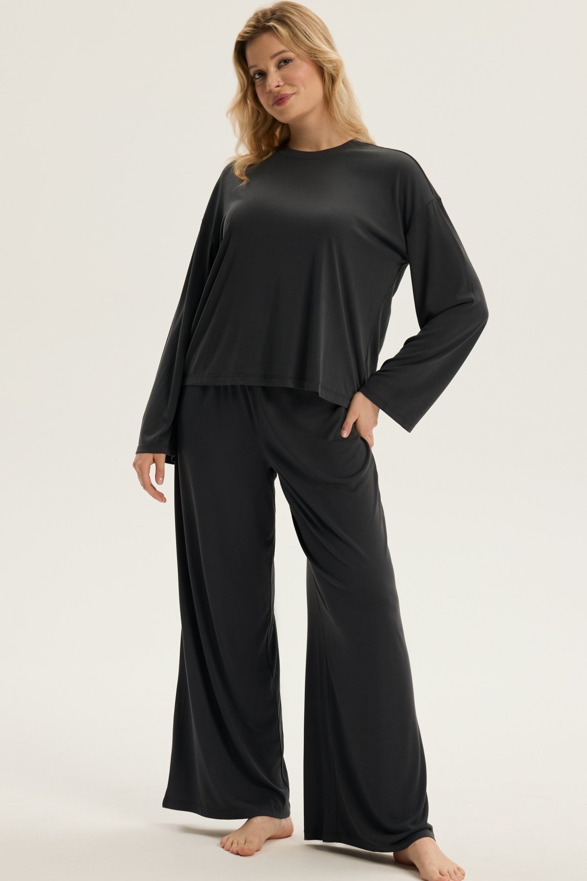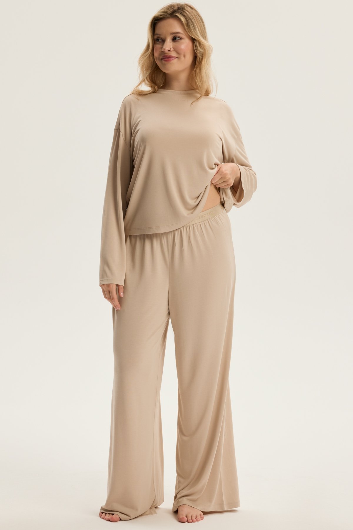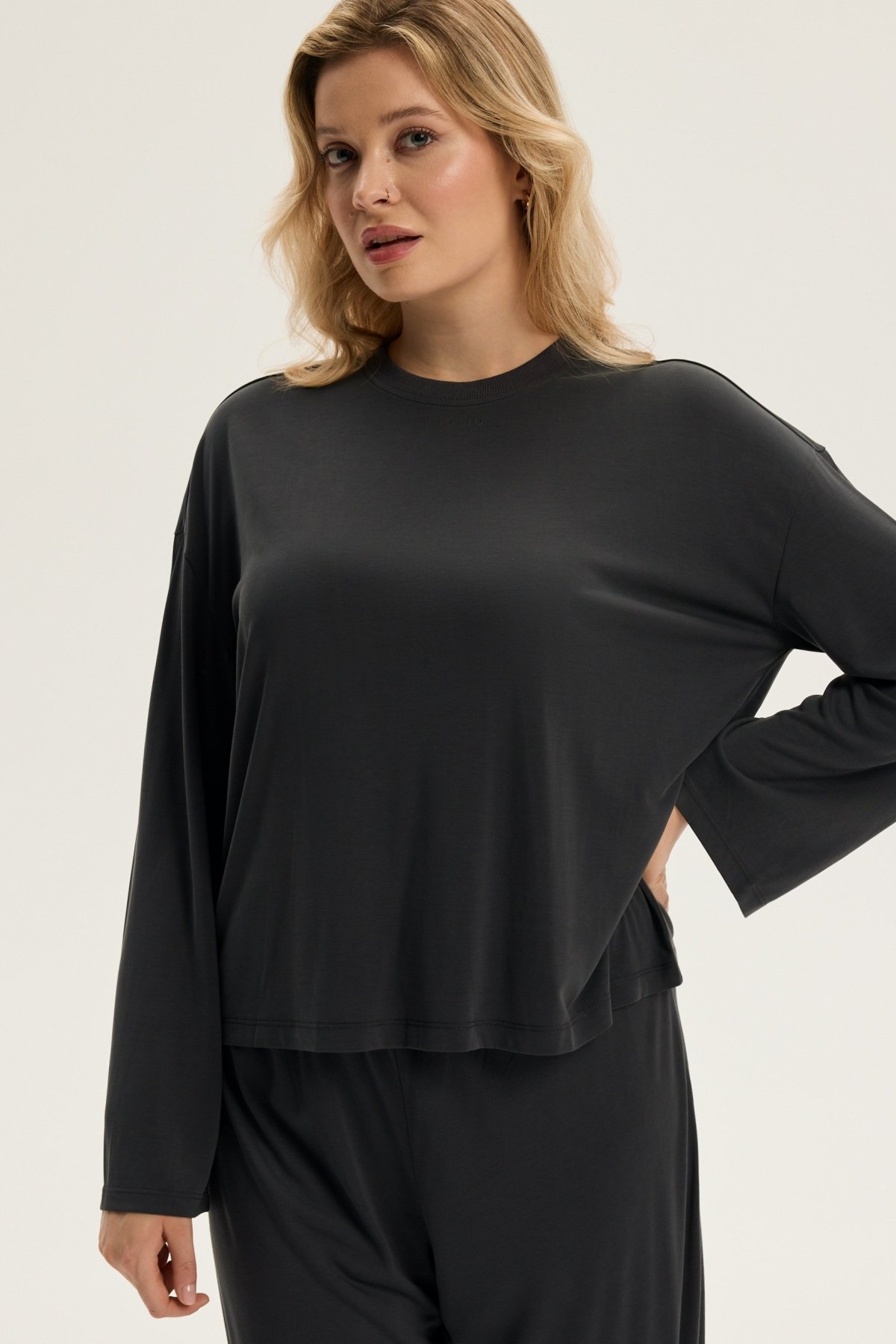Lehký materiál s podílem modalu příjemně splývá po těle a vytváří měkký, vzdušný efekt. Volnější střih zajišťuje volnost pohybu, zatímco dlouhé rukávy přidávají na ženskosti i univerzálnosti. Navíc příjemně zahřejí. Skvěle se hodí jak na klidné chvíle doma, tak jako základ pro ležérní každodenní outfit.