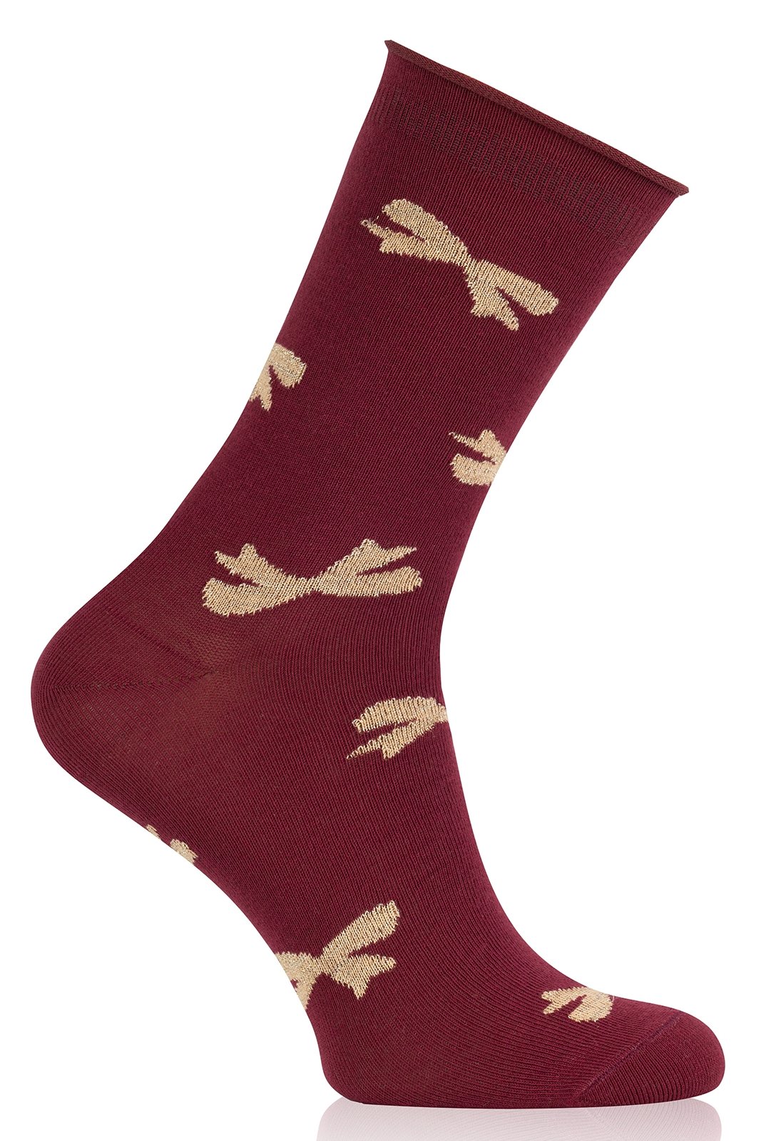 Elegantní dámské ponožky s motivem malých mašliček. Ponožky Figaro jsou bez elastického lemu, díky čemuž se vyhnete nežádoucím otlakům a případnému nekomfortu. Nemusíte se však ani obávat toho, že by ponožky sklouzávaly či se stahovaly. Navíc si je můžete sladit s pyžamy v totožném designu, a vytvořit tak ucelený, stylový komplet.