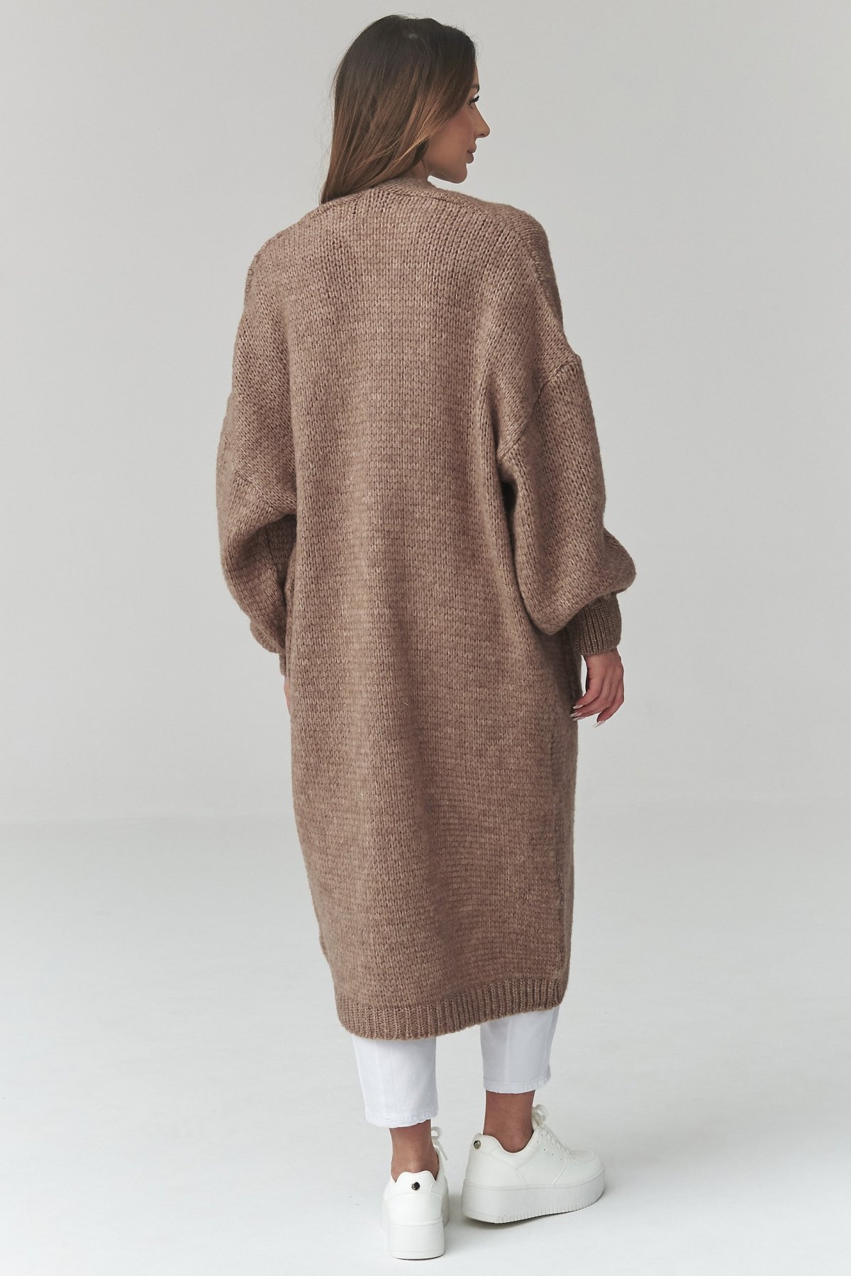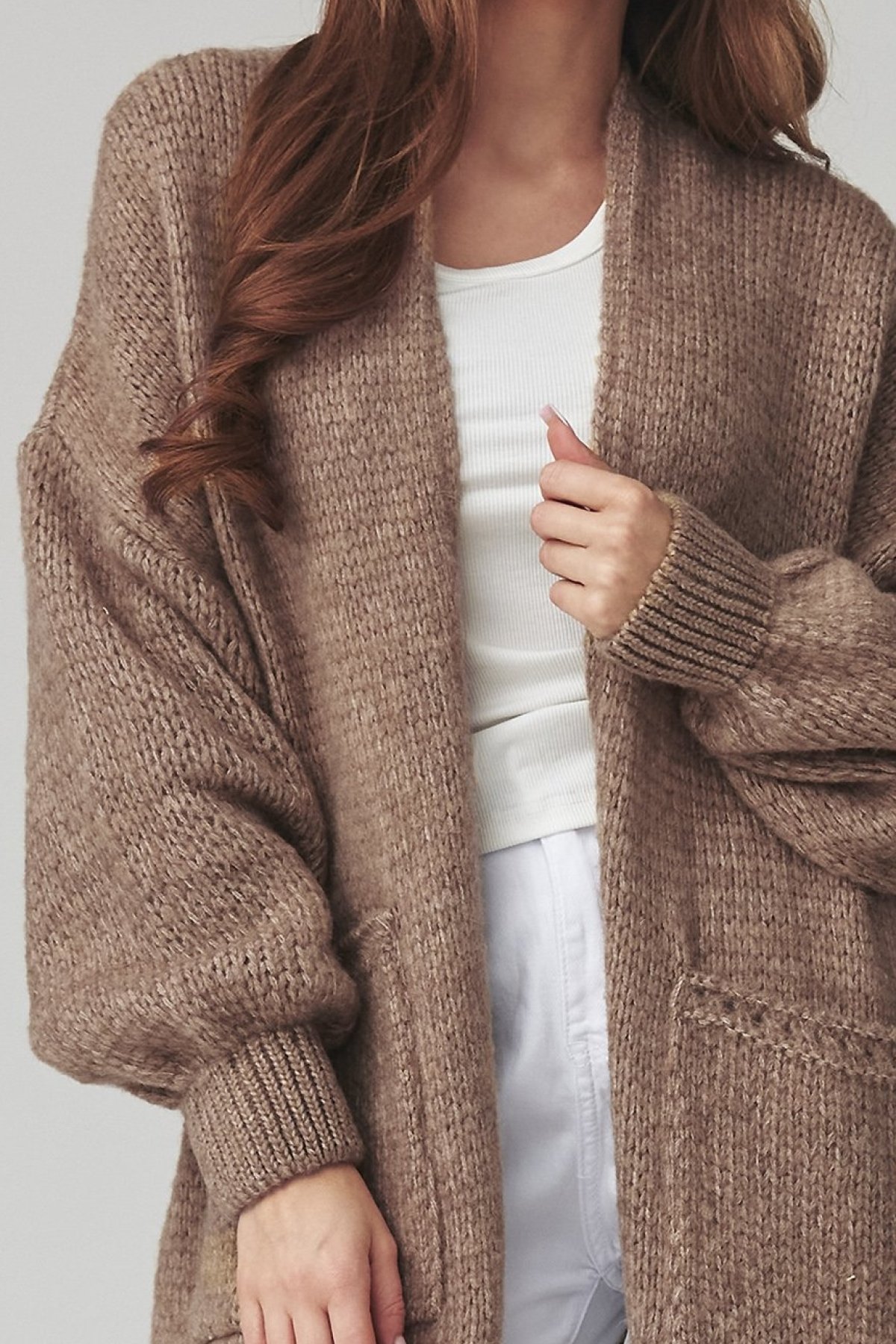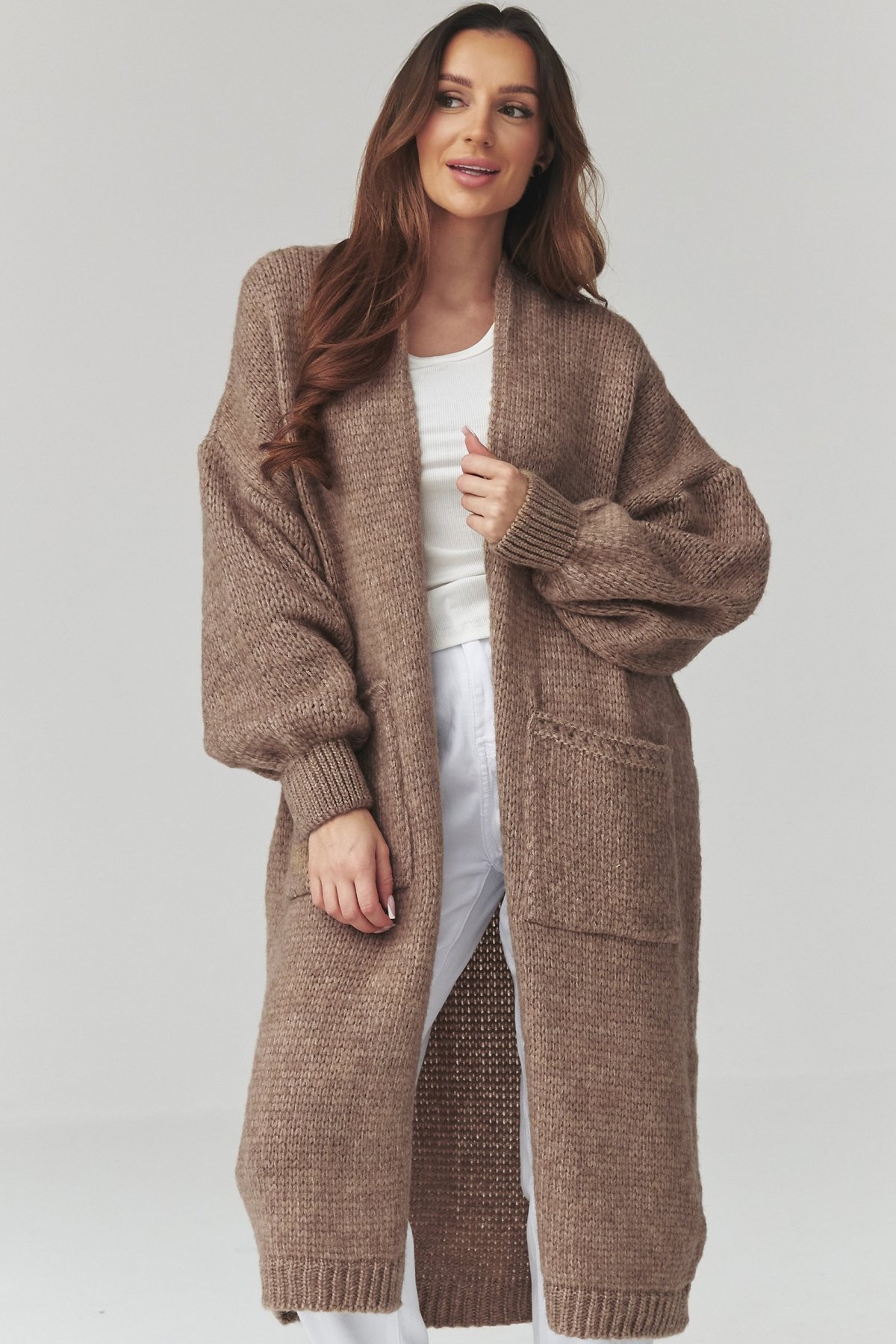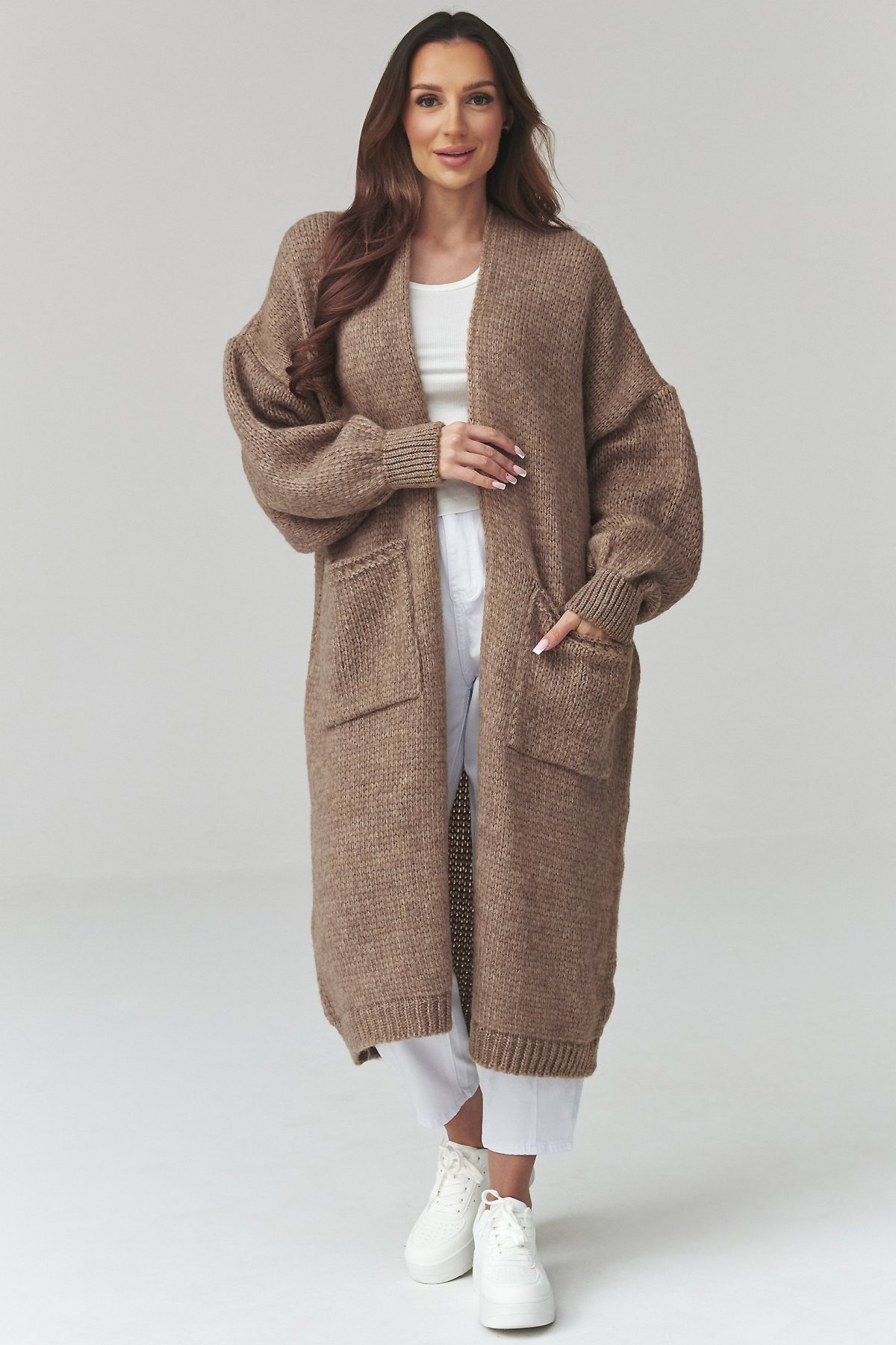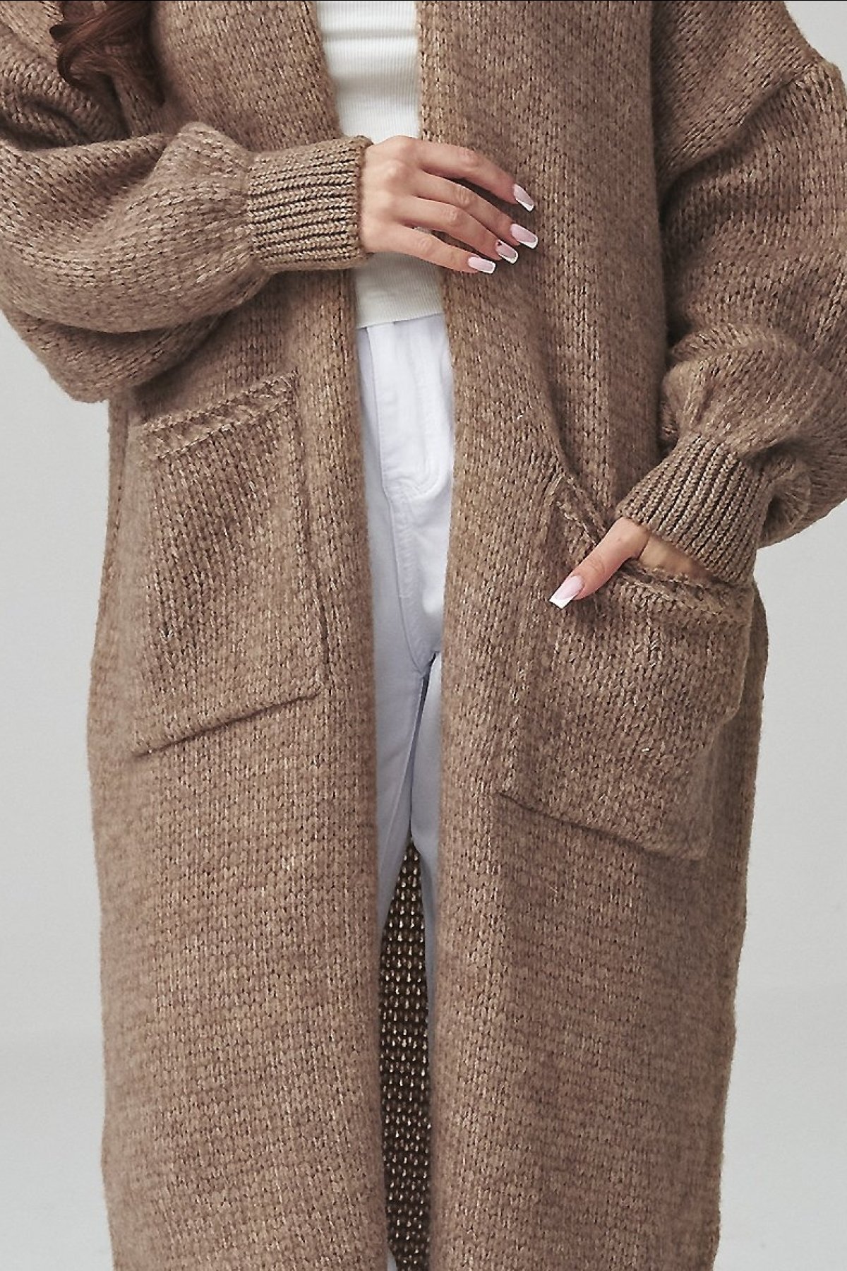 Dlouhý kardigan hnědé barvy s kapsami je kousek, po kterém sáhnete ve chvíli, kdy chcete pohodlí i upravený vzhled.