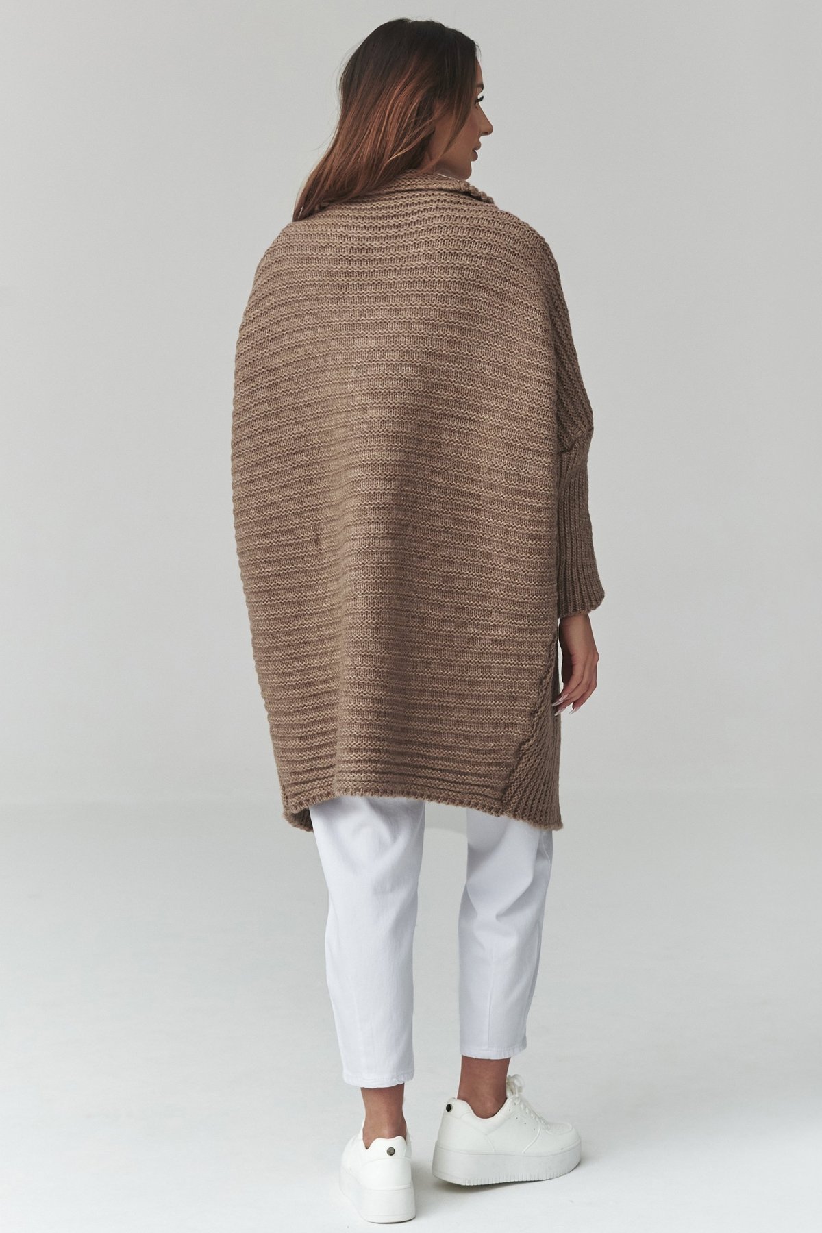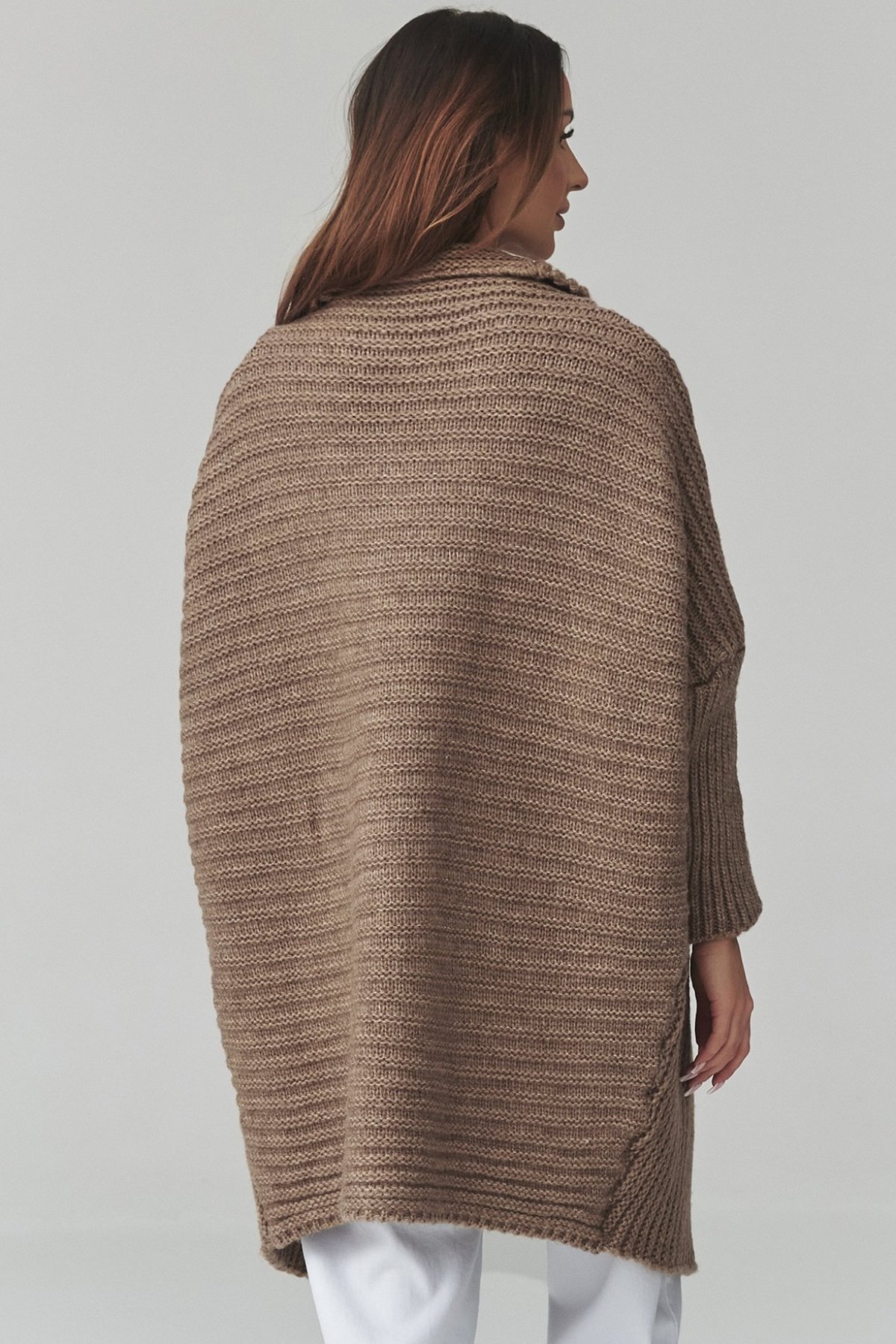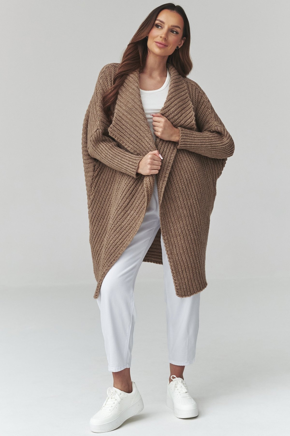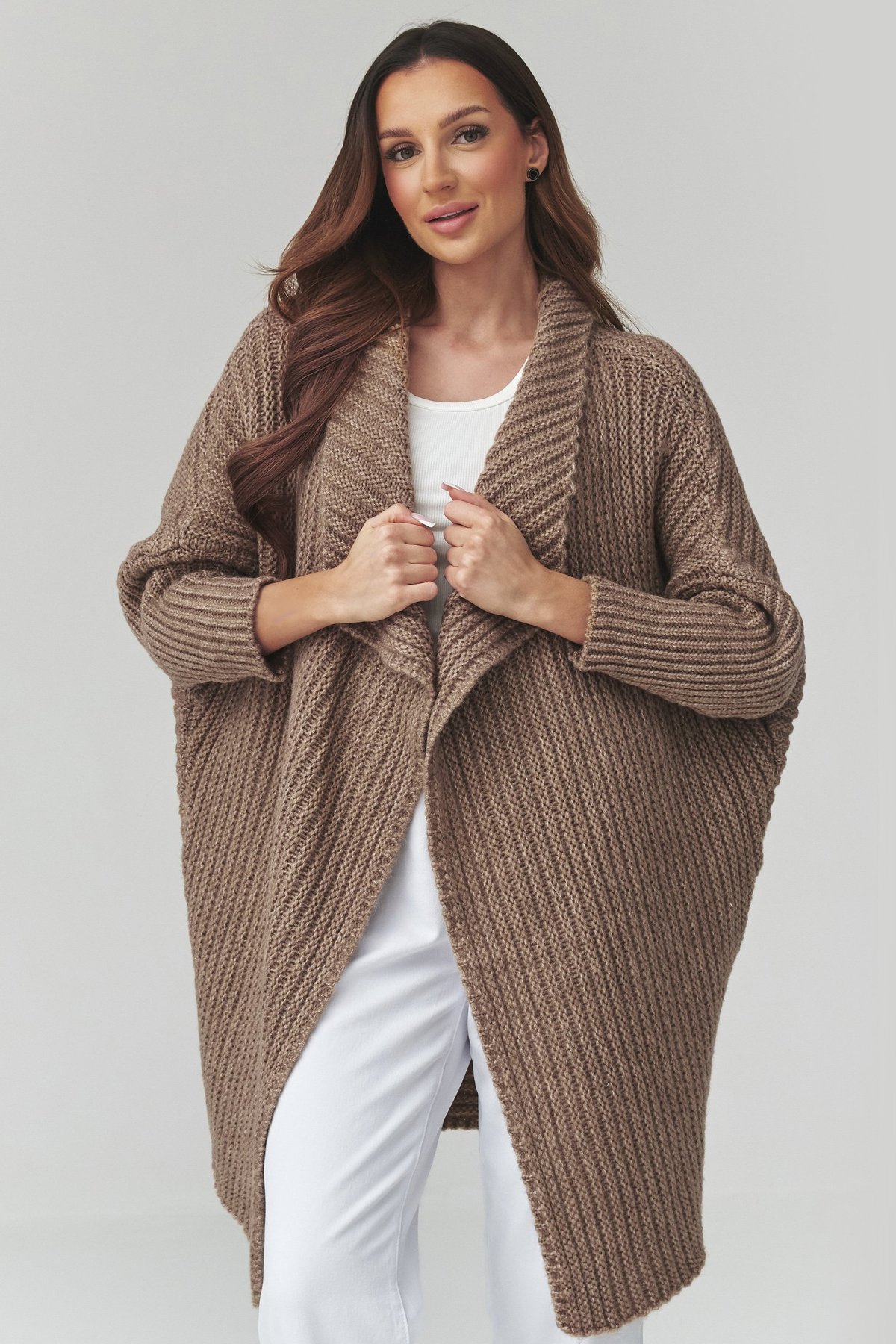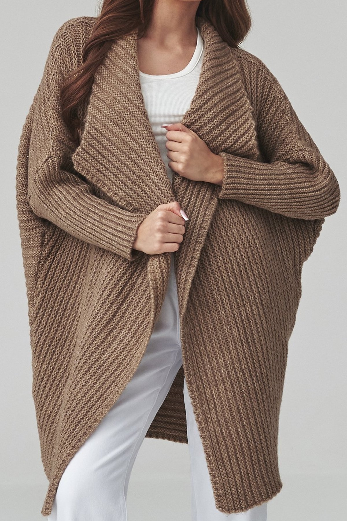 Dlouhý dámský kardigan hnědé barvy. Kousek, který spojuje pohodlí s uvolněnou elegancí.