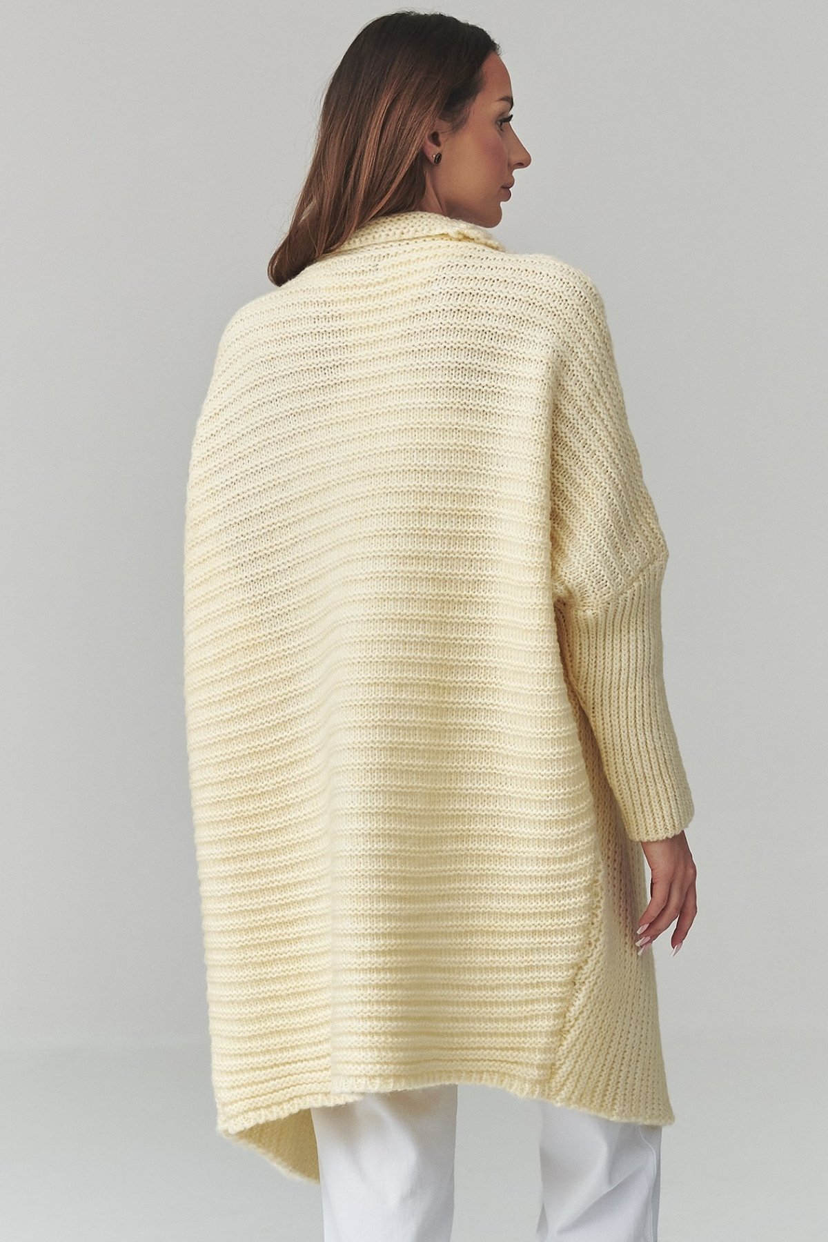 dlouhý otevřený kardigan oversize střih pro volný pohyb výrazný plastický úplet příjemná směs s podílem vlny one size…