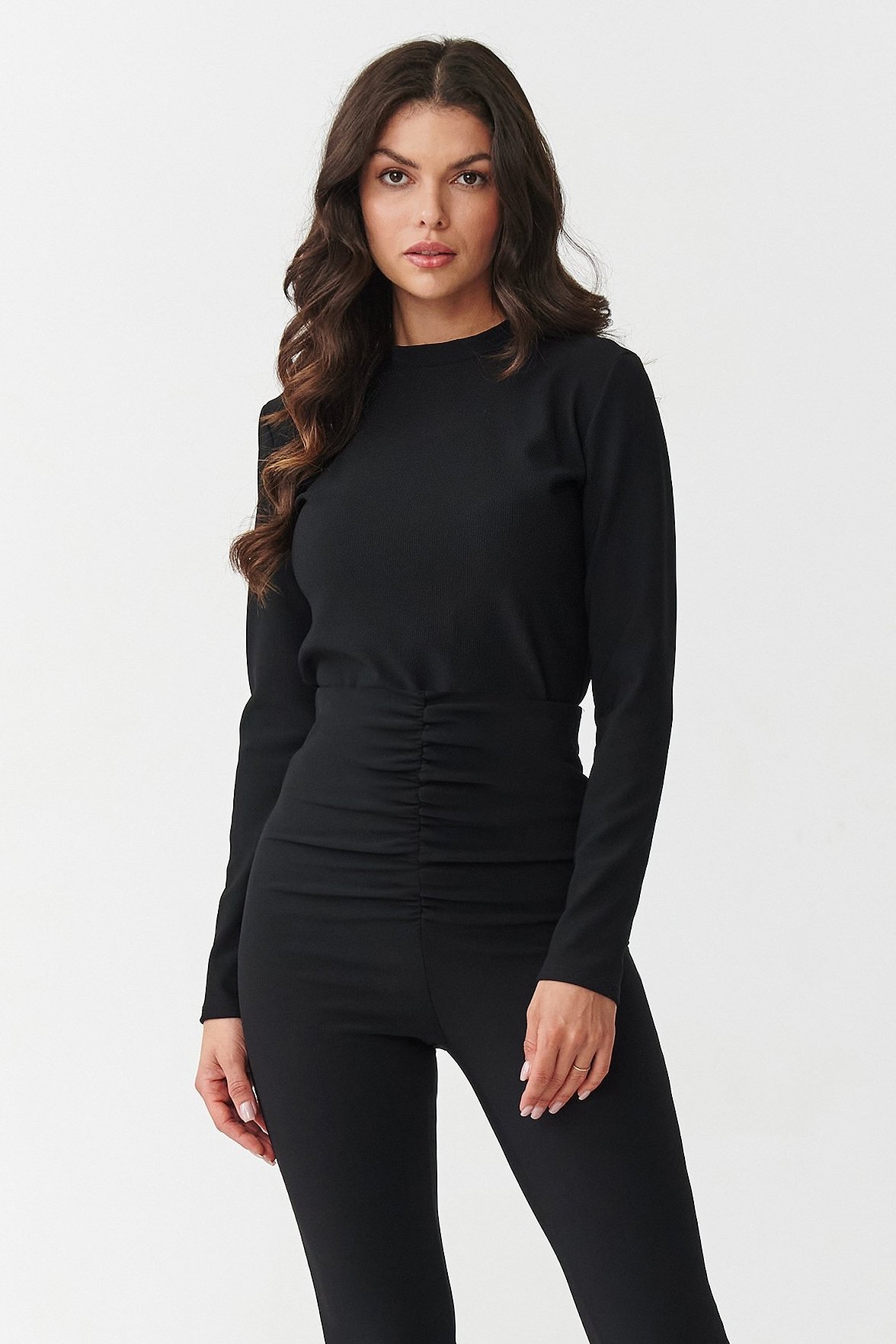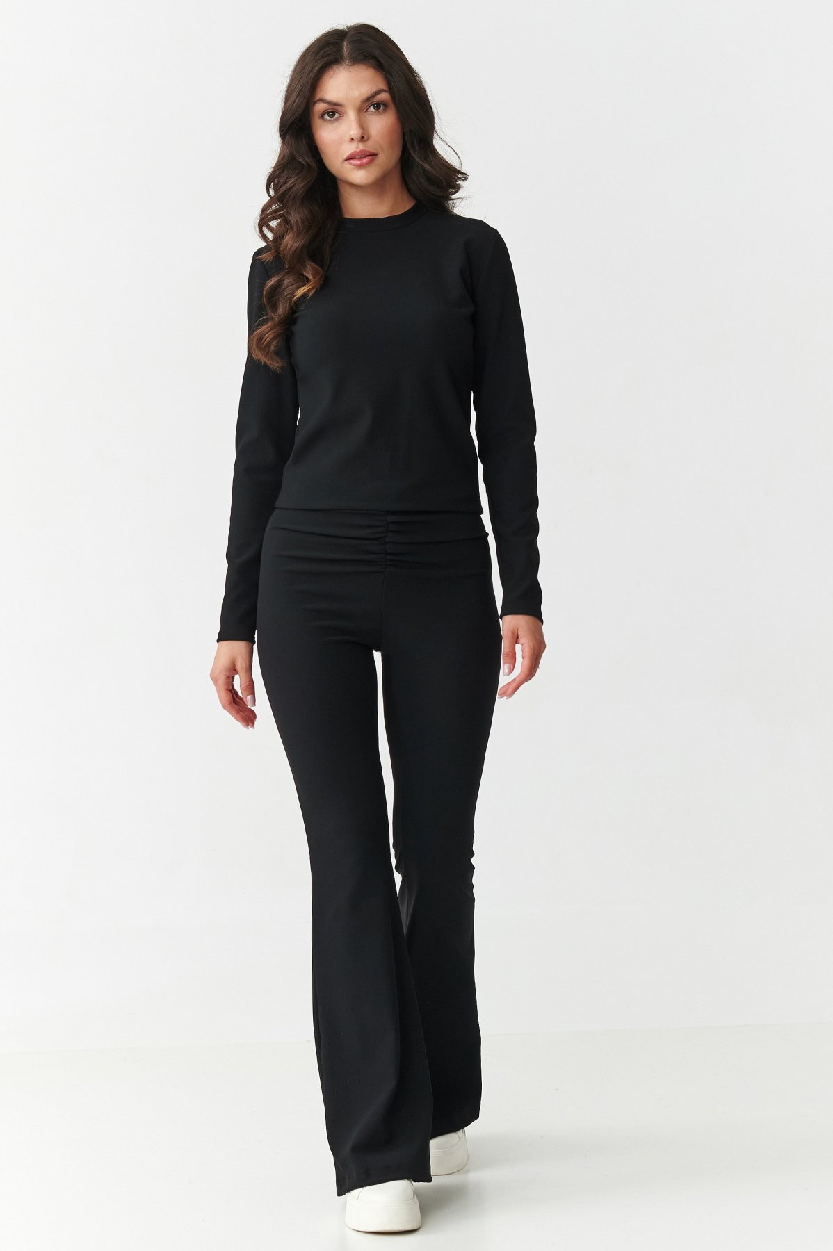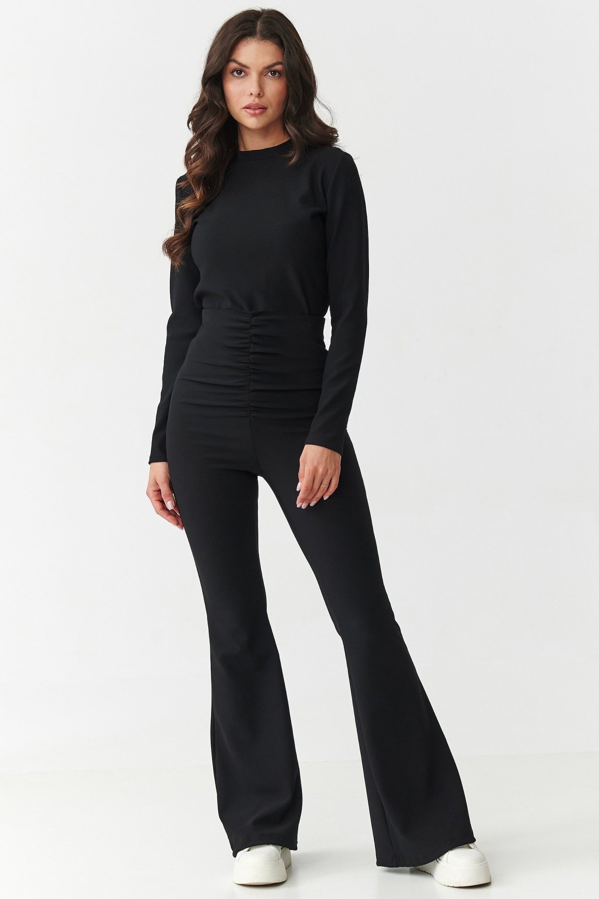 Vsaďte na vzhled, který spojuje eleganci a pohodlí! Tento jedinečný dámský komplet se skládá z přiléhavé halenky s dlouhým rukávem a kalhot s vysokým pasem a rozšířenými nohavicemi. Je vyroben z vysoce kvalitního žebrovaného materiálu, který krásně zdůrazňuje postavu a zajišťuje pohodlí po celý den. Halenka má klasický střih s uzavřeným výstřihem a zapíná se vzadu na zip, což ji dělá pohodlnou a zároveň velmi elegantní. Kalhoty s vysokým pasem zdůrazňují pas a modelují postavu, a díky řasení v pase dodávají postavě správný tvar, zatímco rozšířené nohavice typu flare opticky prodlužují nohy. K dispozici ve čtyřech nadčasových barvách: bordó – ženská a smyslná, černá – klasika, která se hodí ke všemu, čokoládová – moderní a výrazná, béžová – elegantní a jemná. Jedná se o komplet, který se hodí pro různé příležitosti – od večerních setkání přes slavnostní události až po obchodní schůzky. Stačí přidat oblíbené boty na podpatku a šperky a vytvoříte efektní a moderní look.