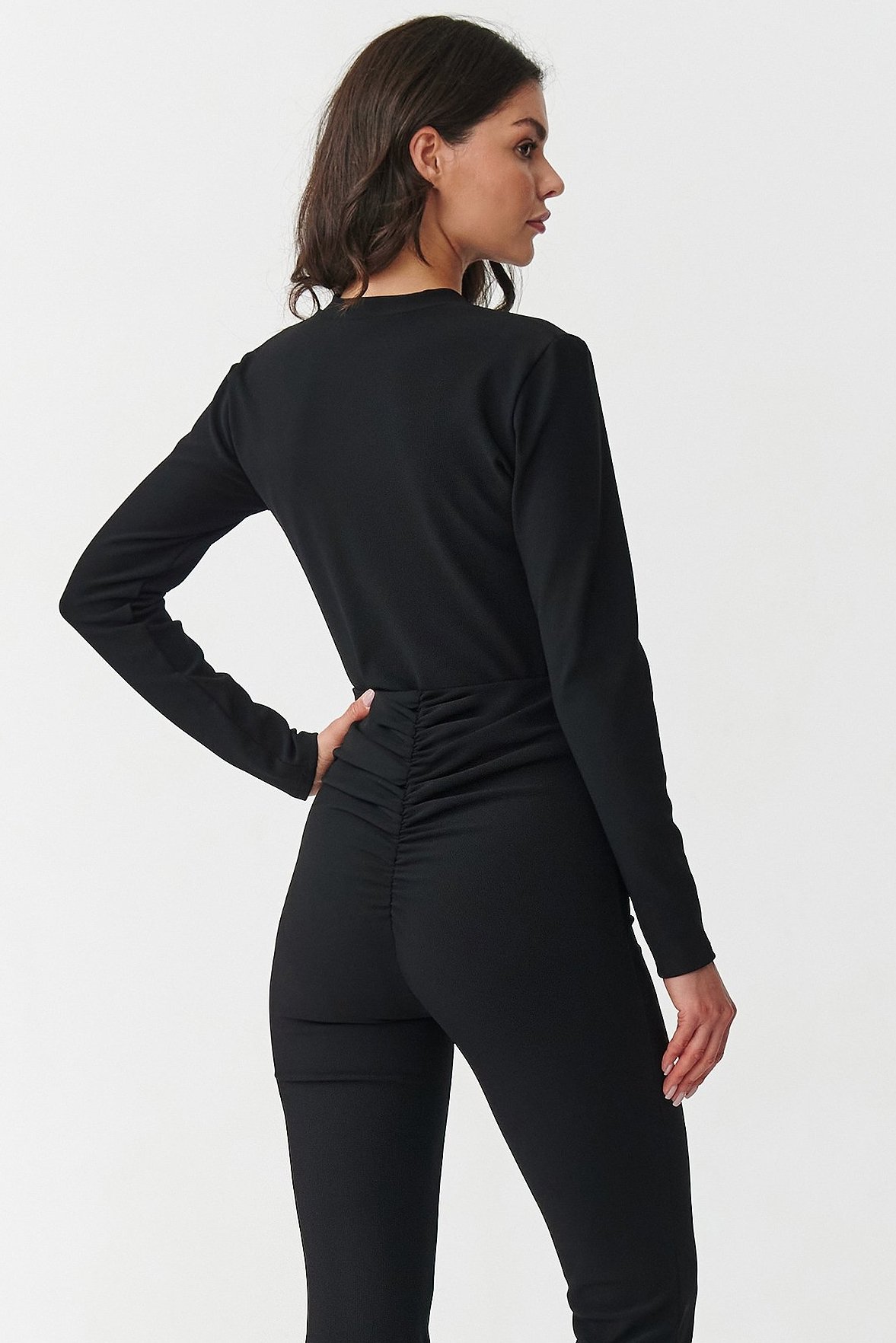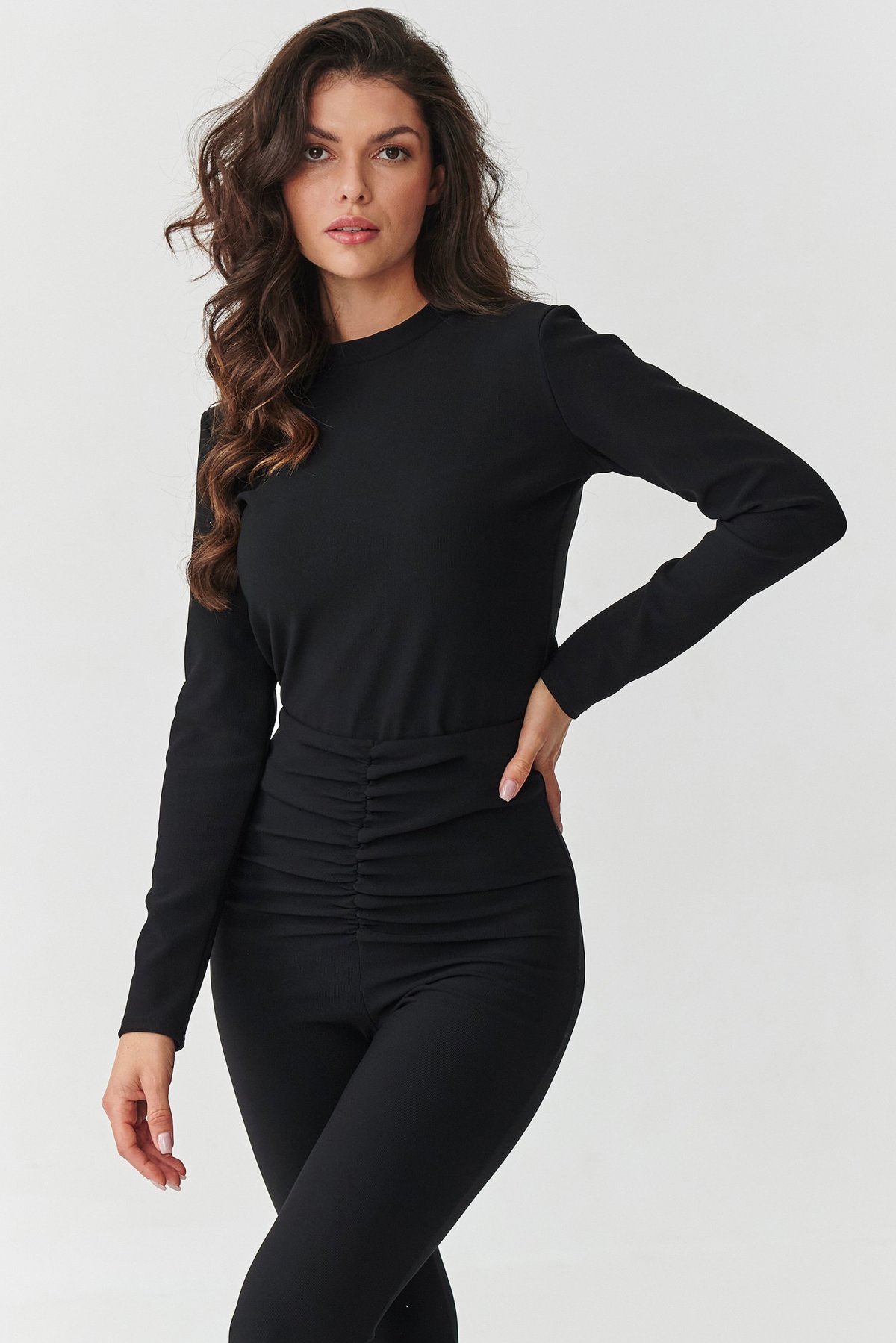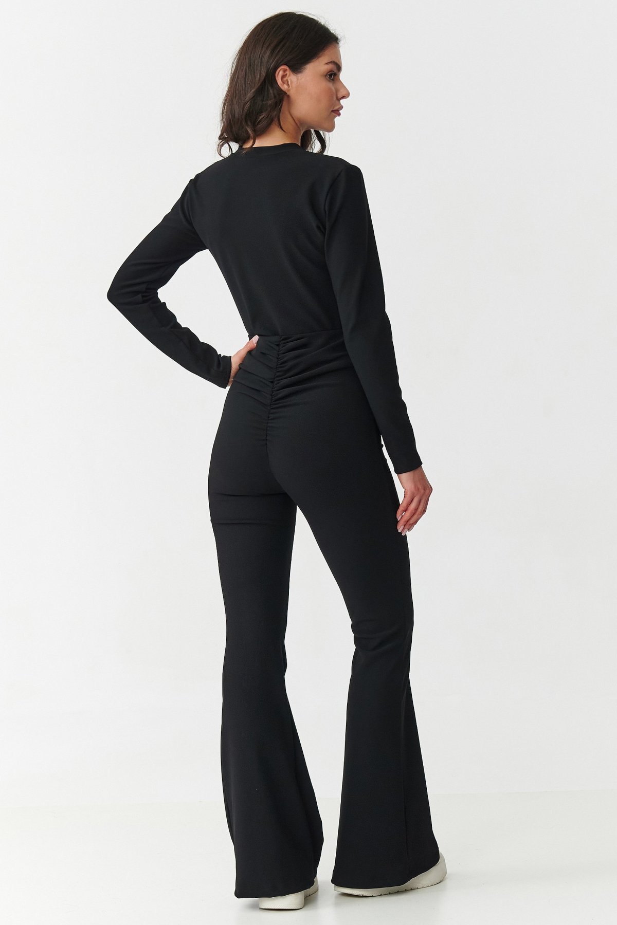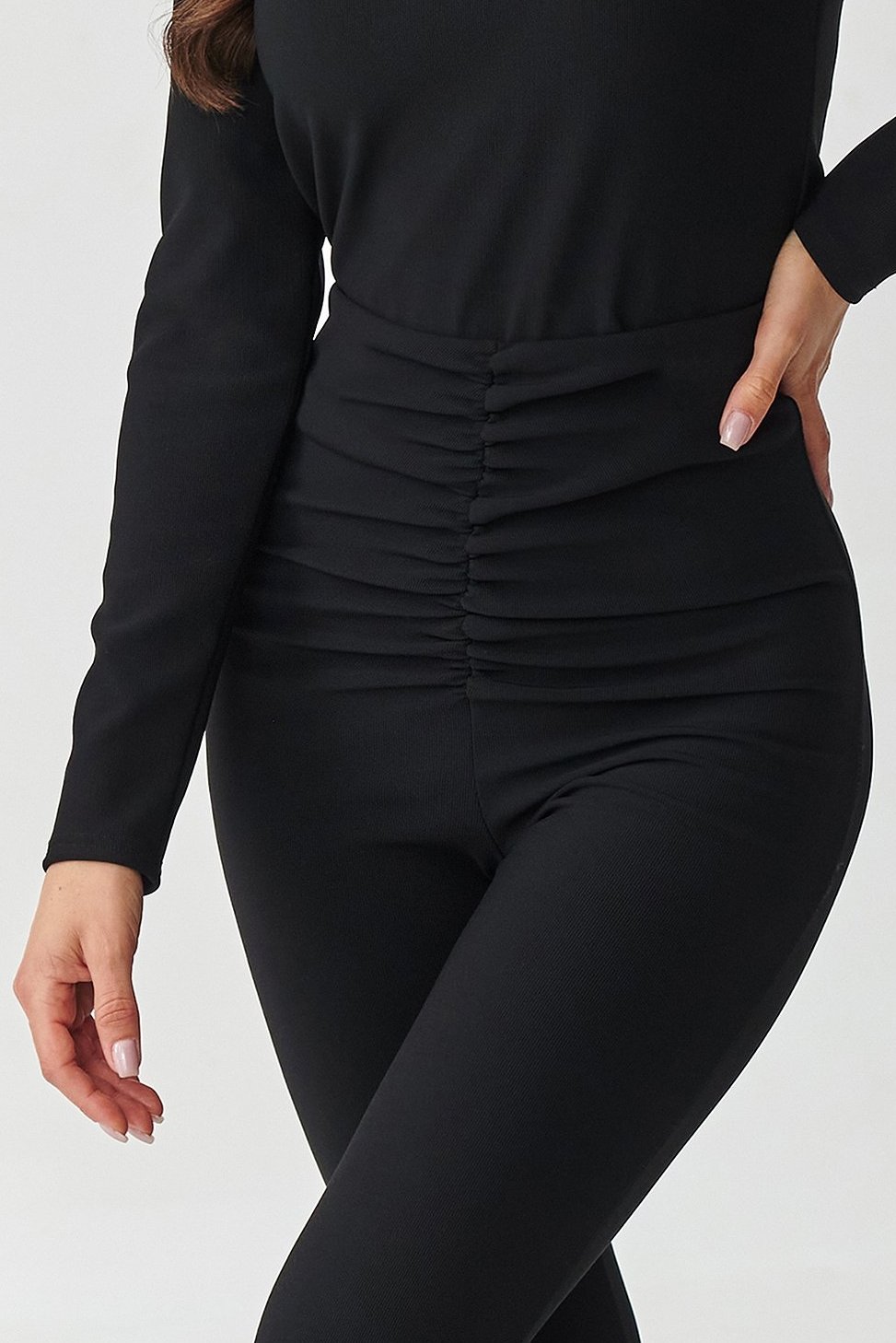 Vsaďte na vzhled, který spojuje eleganci a pohodlí! Tento jedinečný dámský komplet se skládá z přiléhavé halenky s dlouhým rukávem a kalhot s vysokým pasem a rozšířenými nohavicemi. Je vyroben z vysoce kvalitního žebrovaného materiálu, který krásně zdůrazňuje postavu a zajišťuje pohodlí po celý den. Halenka má klasický střih s uzavřeným výstřihem a zapíná se vzadu na zip, což ji dělá pohodlnou a zároveň velmi elegantní. Kalhoty s vysokým pasem zdůrazňují pas a modelují postavu, a díky řasení v pase dodávají postavě správný tvar, zatímco rozšířené nohavice typu flare opticky prodlužují nohy. K dispozici ve čtyřech nadčasových barvách: bordó – ženská a smyslná, černá – klasika, která se hodí ke všemu, čokoládová – moderní a výrazná, béžová – elegantní a jemná. Jedná se o komplet, který se hodí pro různé příležitosti – od večerních setkání přes slavnostní události až po obchodní schůzky. Stačí přidat oblíbené boty na podpatku a šperky a vytvoříte efektní a moderní look.