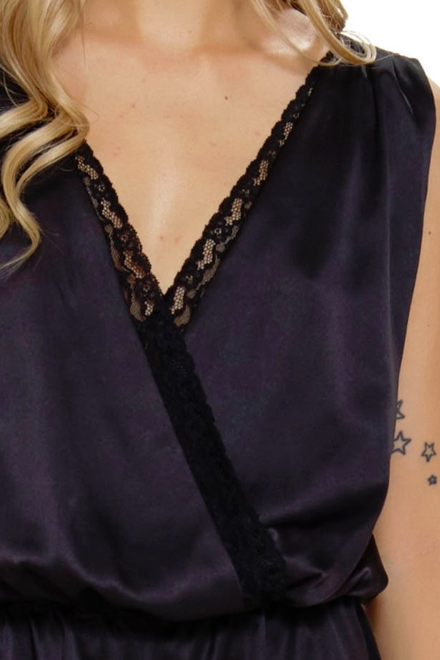 Elegantní dámský overal z jemného saténu vyniká svým smyslným designem a luxusním vzhledem. Hedvábně lesklý materiál s příměsí elastanu se dokonale přizpůsobí postavě, krásně splývá a zaručuje maximální pohodlí při nošení. Romantický výstřih vpředu i na zádech, doplněný krajkovými detaily, podtrhuje ženskost a dodává modelu rafinovaný nádech. Guma v pase zvýrazňuje siluetu a dodává lehkost celému střihu. Tento kousek je ideální volbou pro ženy, které chtějí působit sebevědomě, elegantně a výjimečně.