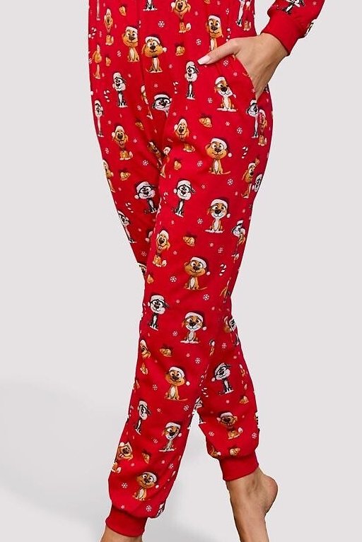 Dámský overal Dog 3 je dokonalým spojením tepla, pohodlí a hravého stylu. Vyrobený z měkké, prodyšné bavlny, poskytuje maximální komfort při nošení – ideální pro dlouhé zimní večery nebo lenošení doma.