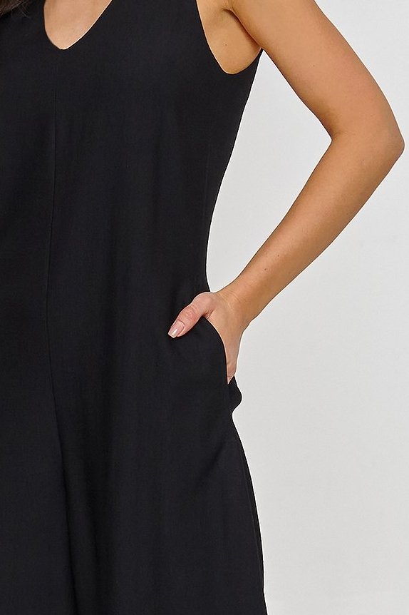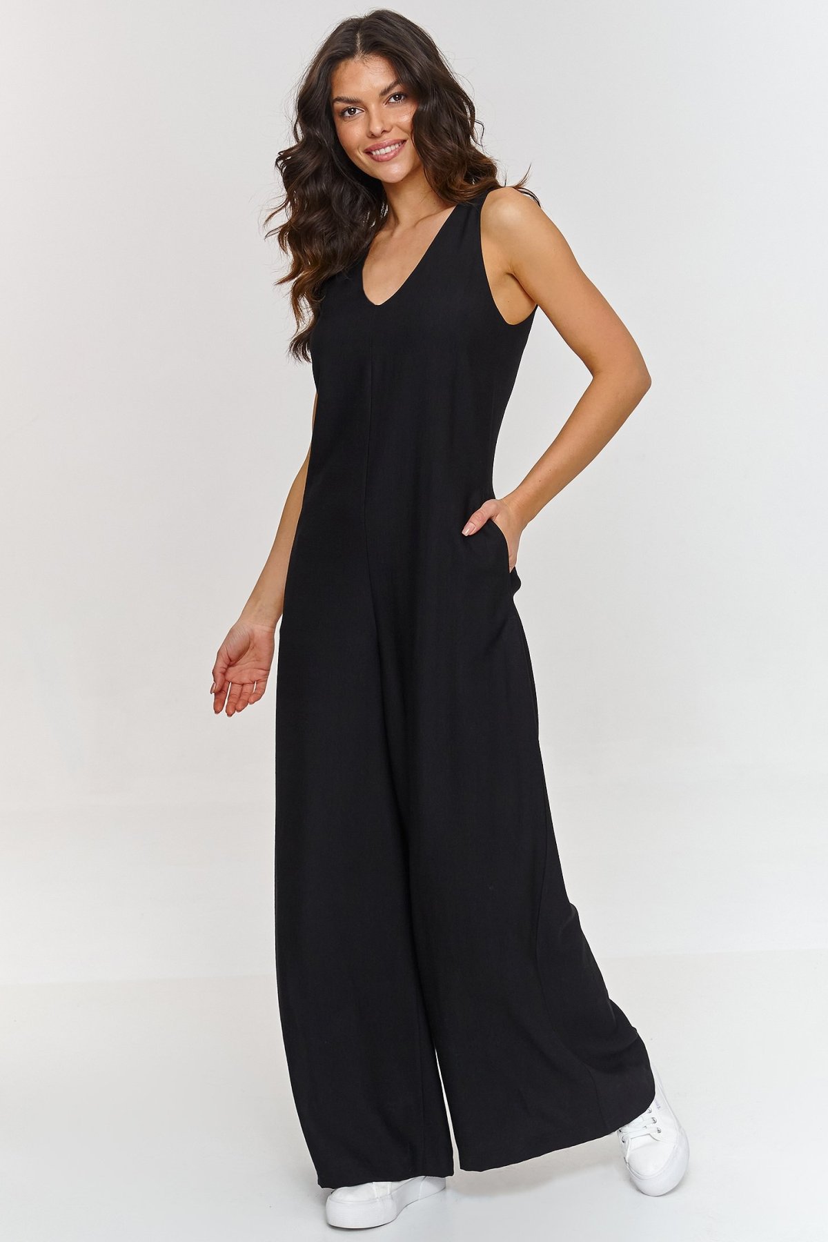 Stylový overal těšící oko každé ženy hledající něco moderního! Tento model vyniká svým jednoduchým V výstřihem, který mu dodává eleganci a ženský šmrnc. Zároveň hezky zdůrazňuje postavu a opticky prodlouží linii dekoltu. Je šik a velmi jemný. Široké nohavice a volnější střih zaručují pohodlnost overalu a jeho originalitu. Overal se zapíná pomocí zipu, což velmi usnadňuje jeho oblékání. Boční kapsy jsou zase velmi praktickým prvkem. Dodatečným plusem tohoto kousku je velmi příjemný a vzdušný materiál, což z něj dělá perfektního společníka pro teplé dny. Díky jednoduchému, ale maximálně efektnímu střihu se overal hodí pro každodenní ležérní stylizace, ale neurazí ani při více formálních událostech jako jsou pracovní schůzky nebo večerní akce. Můžete jej zkombinovat s bílými teniskami a nebo také vysokými podpatky pro elegantnější variantu. Vybírat můžete ze stylových pěti barev!