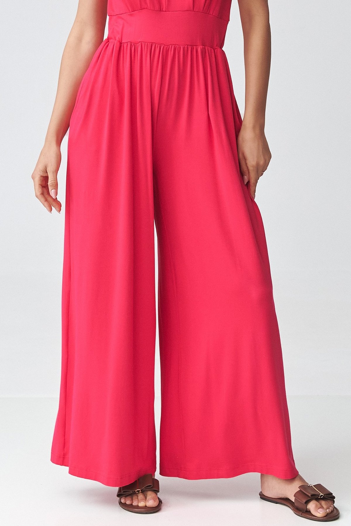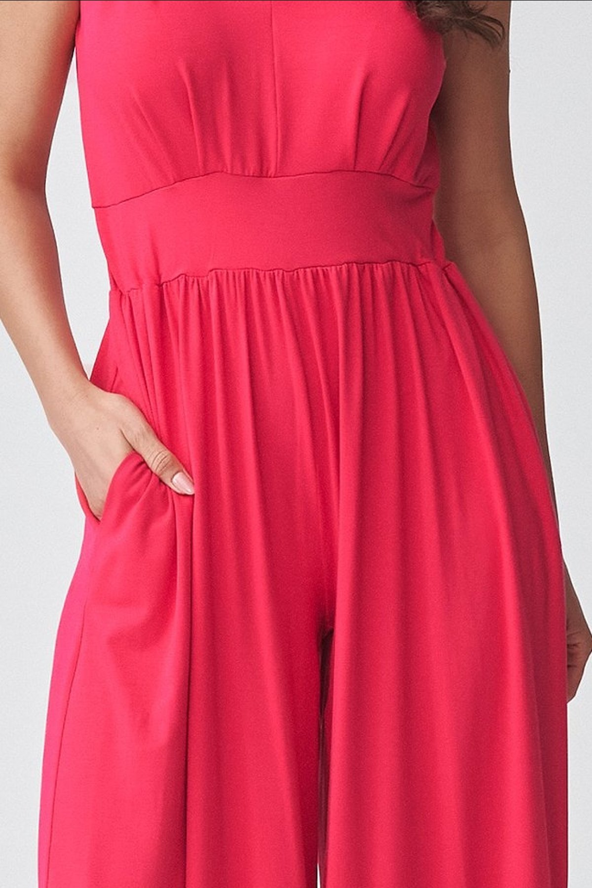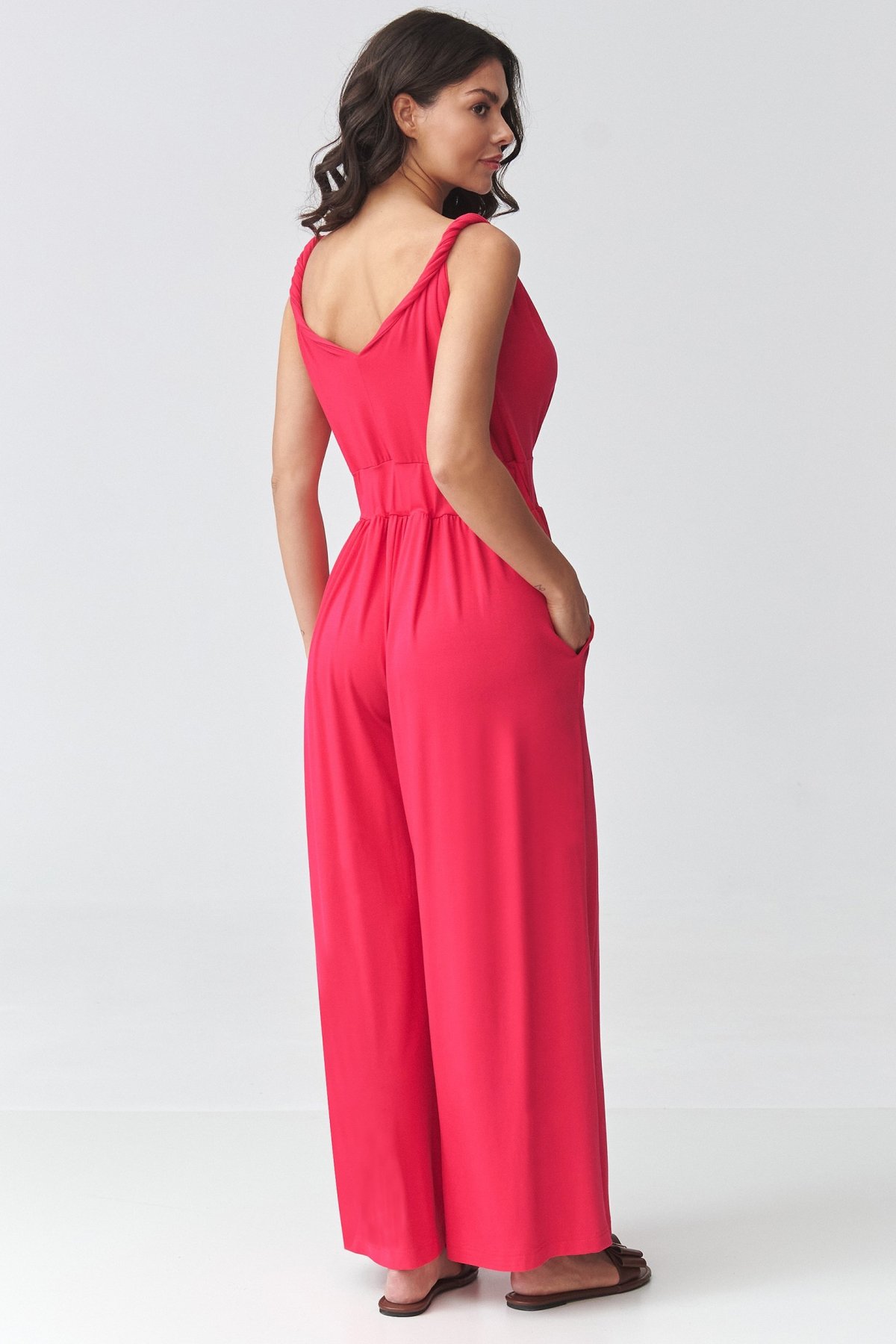 Kousek, který spojuje čistou linii s pohodlím při nošení. Výstřih do tvaru písmene V opticky prodlužuje horní část siluety a zvýrazněný pas pomáhá vytvořit vyvážené proporce bez zbytečné strojenosti. Lehký splývavý materiál se na postavě měkce ukládá a díky širokým nohavicím působí celek vzdušně a uvolněně. Právě proto se overal hodí jak na běžný den, tak na chvíle, kdy chcete zvolit upravenější outfit bez složitého kombinování. Stačí přidat sandály pro lehčí letní vzhled nebo podpatky pro výraznější, elegantnější dojem.