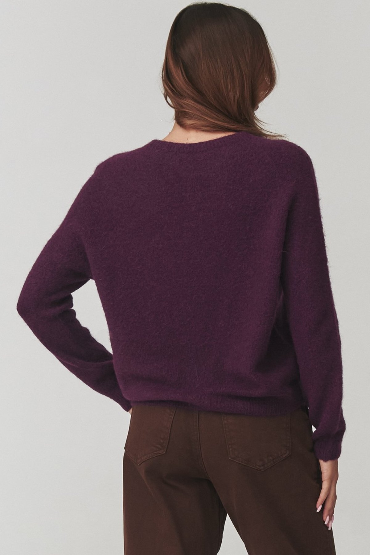 Dámský hřejivý svetr v tmavě fialovém odstínu. Zamilují si jej ženy, které si cení elegance a pohodlí.