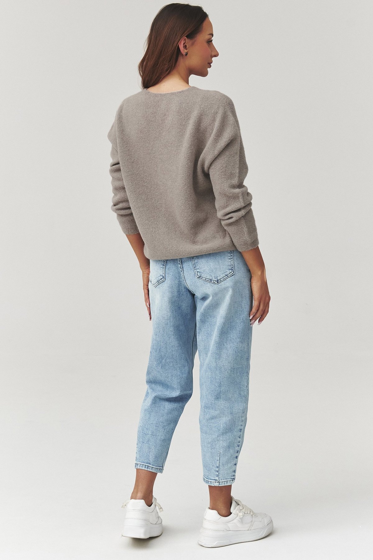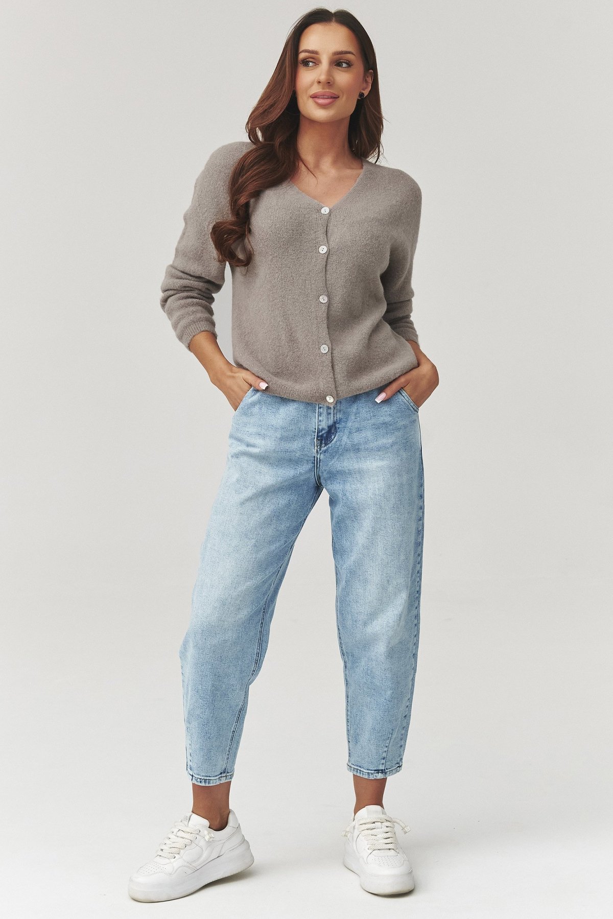 Stylový svetr v odstínu mocca spojuje nadčasovou eleganci a pohodlí. Jemná úpletová struktura je příjemná na dotek a dobře se přizpůsobuje tělu, zatímco výstřih do V a zapínání na knoflíky dodávají ženský, elegantní vzhled.