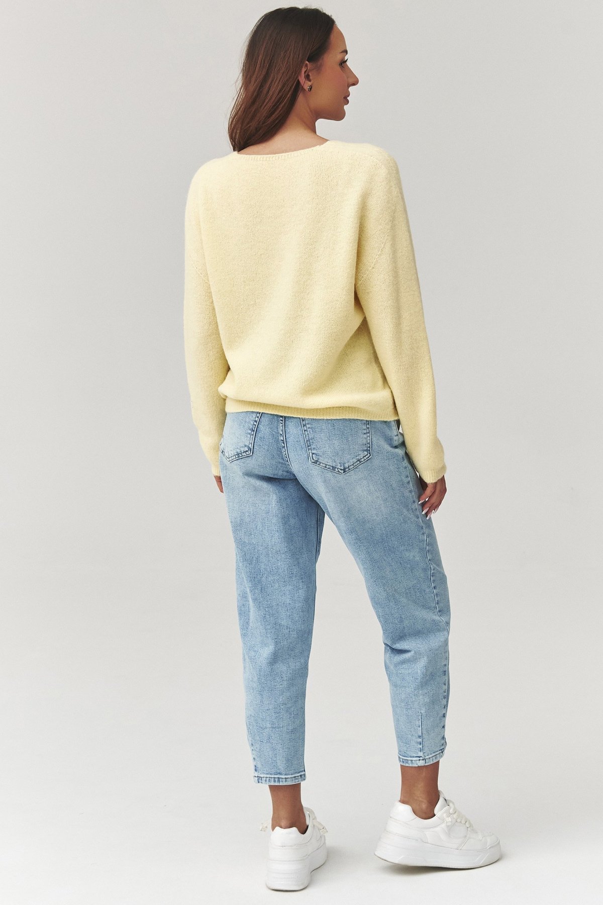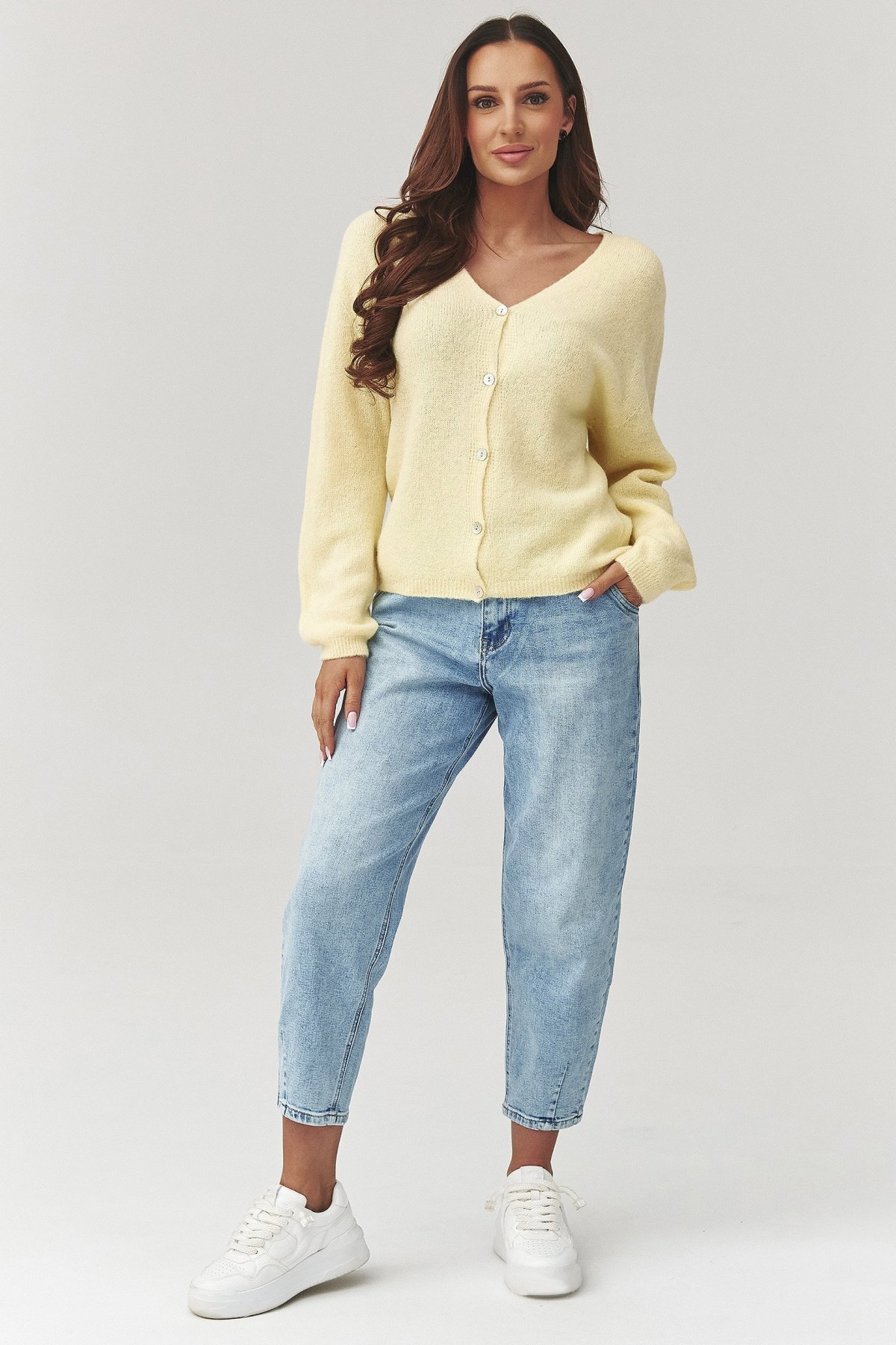 Stylový svetr v zářivě žlutém odstínu spojuje nadčasovou eleganci a pohodlí. Jemná úpletová struktura je příjemná na dotek a dobře se přizpůsobuje tělu, zatímco výstřih do V a zapínání na knoflíky dodávají ženský, elegantní vzhled.