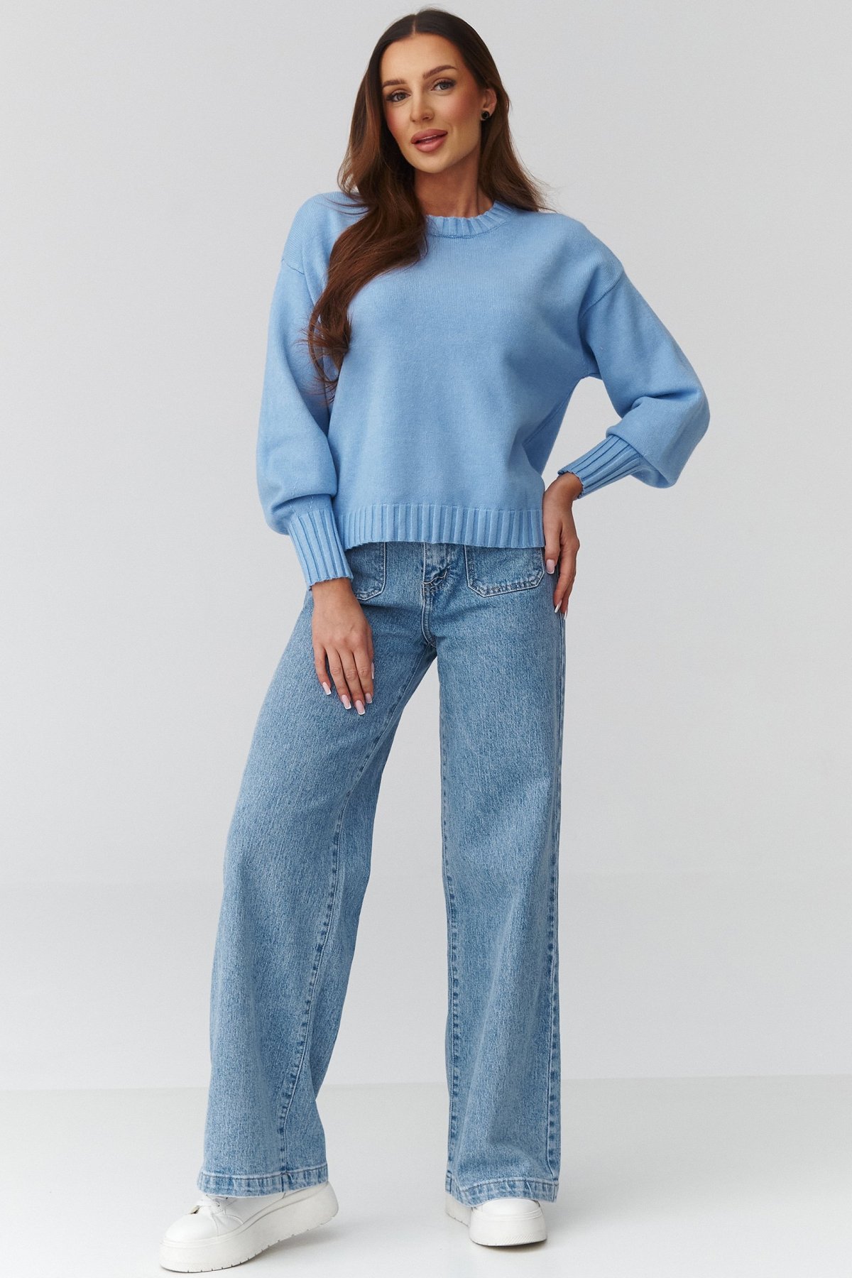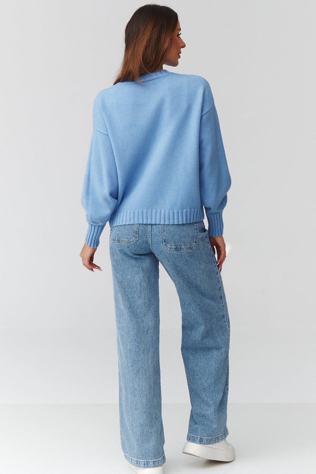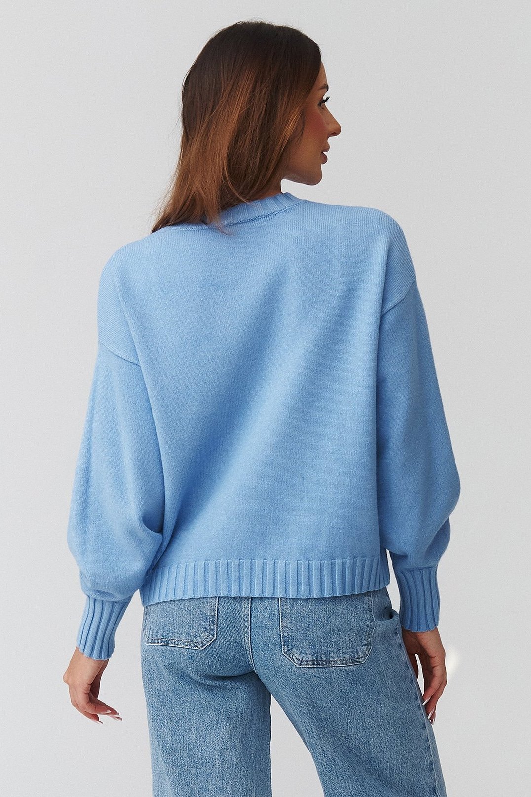 Atraktivní dámský svetr ve světle modré barvě. Nadčasový kousek, který snadno zapadne do každodenního šatníku.