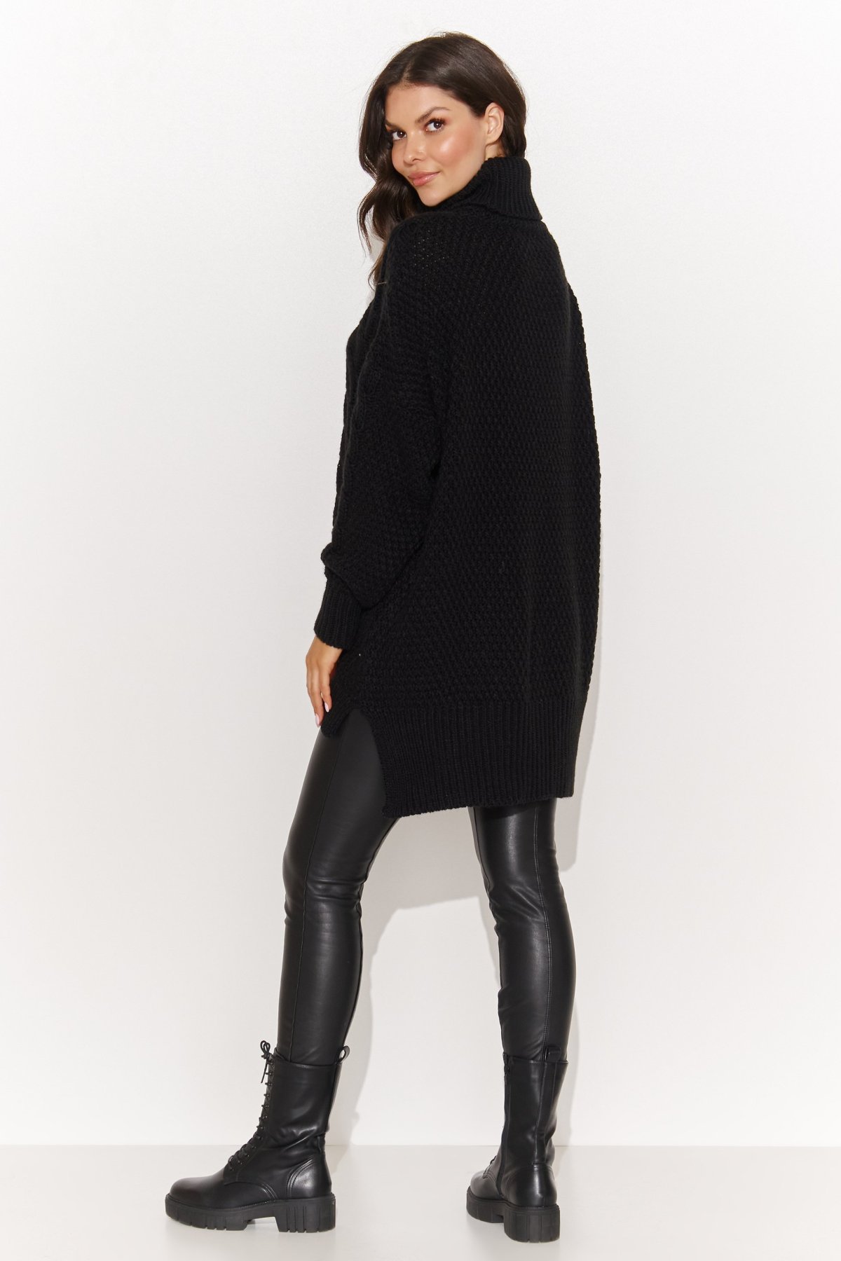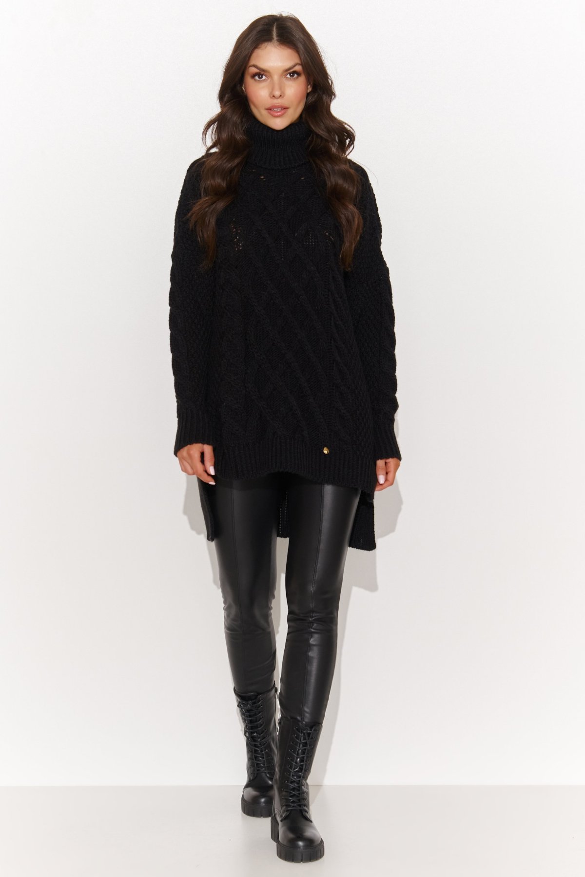 Teplý a tlustý dámský svetr. Skutečná lahůdka pro milovnice zimního pohodlí. Svetr se obléká přes hlavu. Má asymetrický střih, vzadu je o něco delší než vpředu. Po stranách svetru je viditelný rozparek, který mu dodává lehkost a volnost. Svetr má velký a teplý rolák a dlouhé rukávy s praktickými manžetami na koncích. Jeho charakteristickým rysem jsou různé vzory, včetně efektních copánků na přední straně. Tento svetr se skvěle hodí k legínám nebo úzkým kalhotám a lze jej také nosit jako tuniku. K dispozici ve třech barevných provedeních. Tento model svetru vám umožní vyjádřit svůj individuální styl a poskytne vám neuvěřitelnou volnost, zároveň dodá vašemu vzhledu charakter.