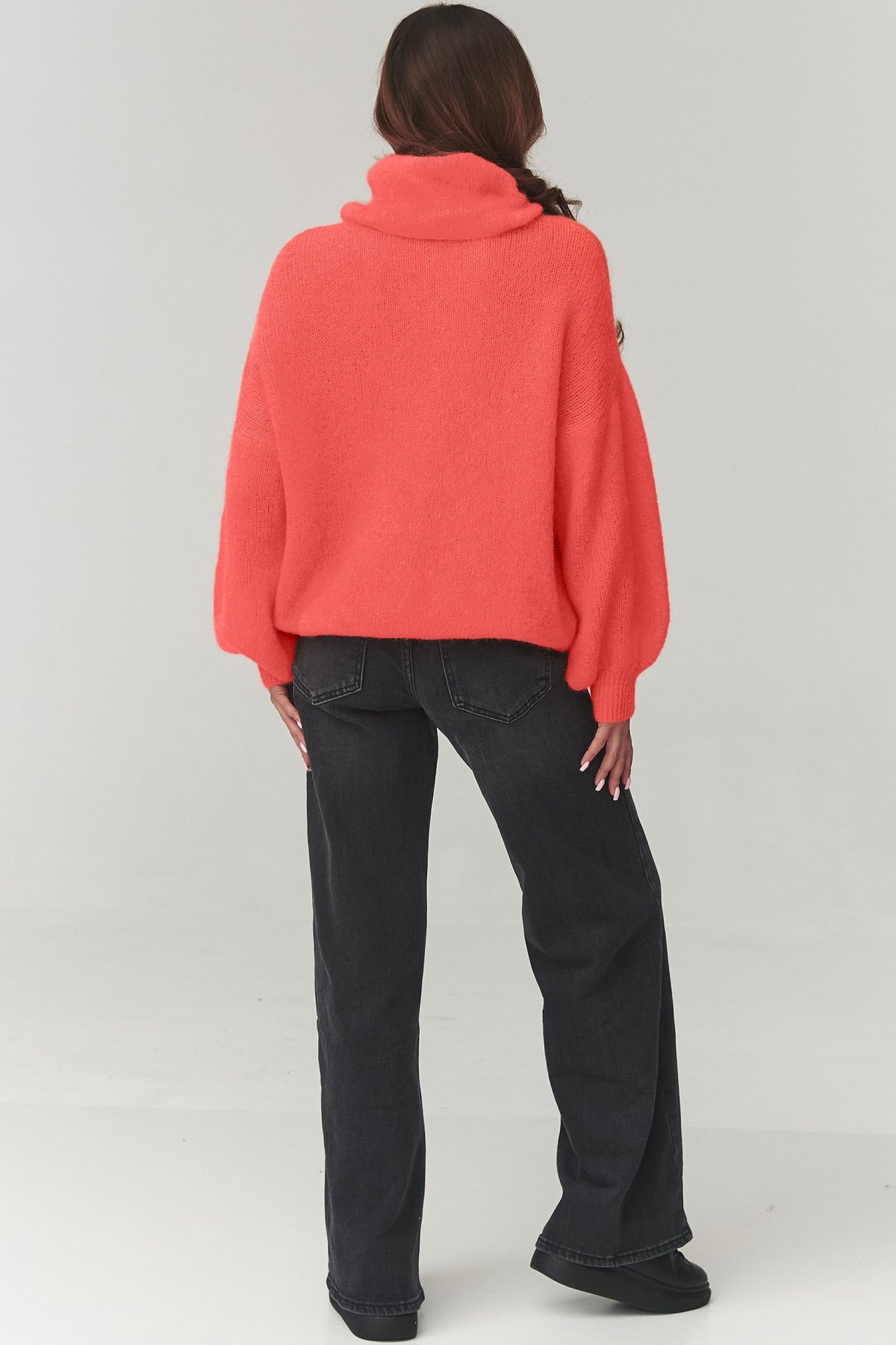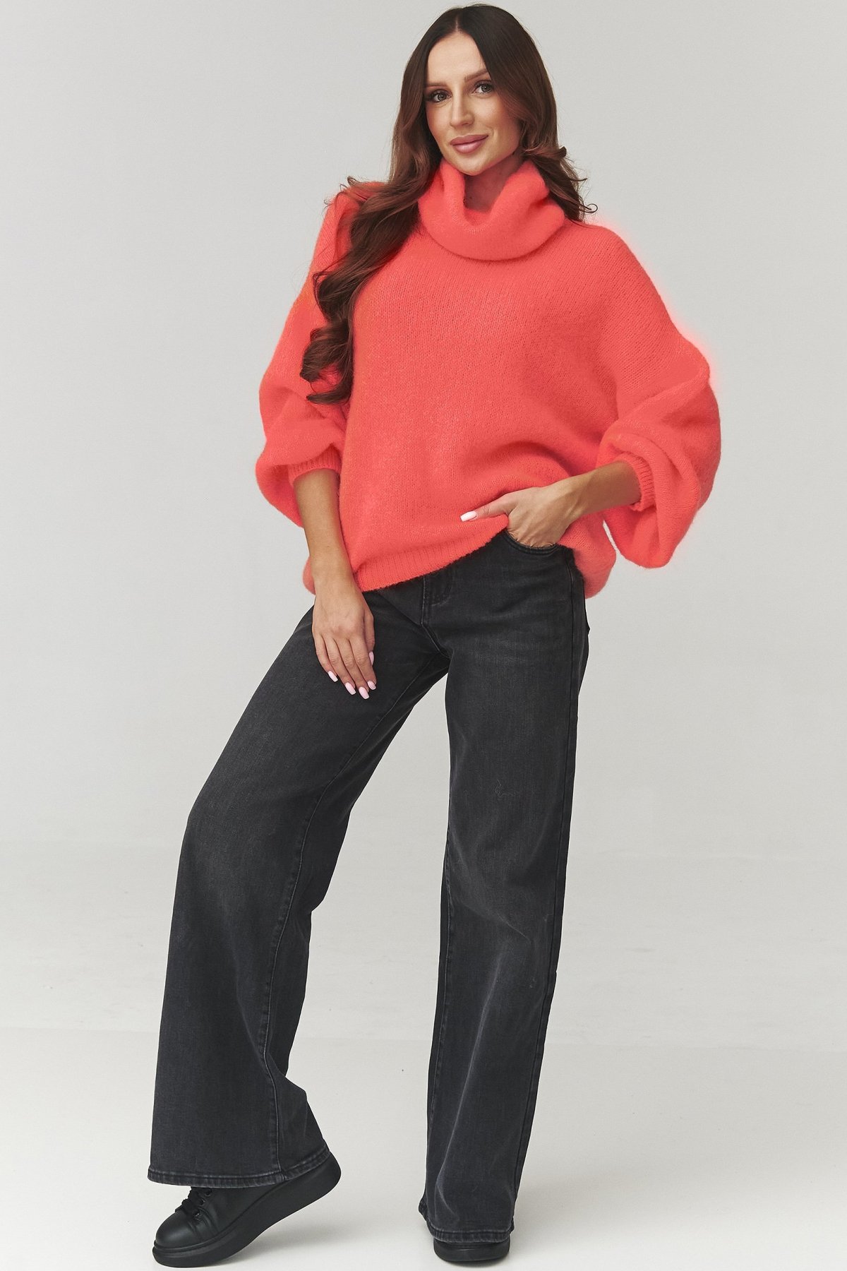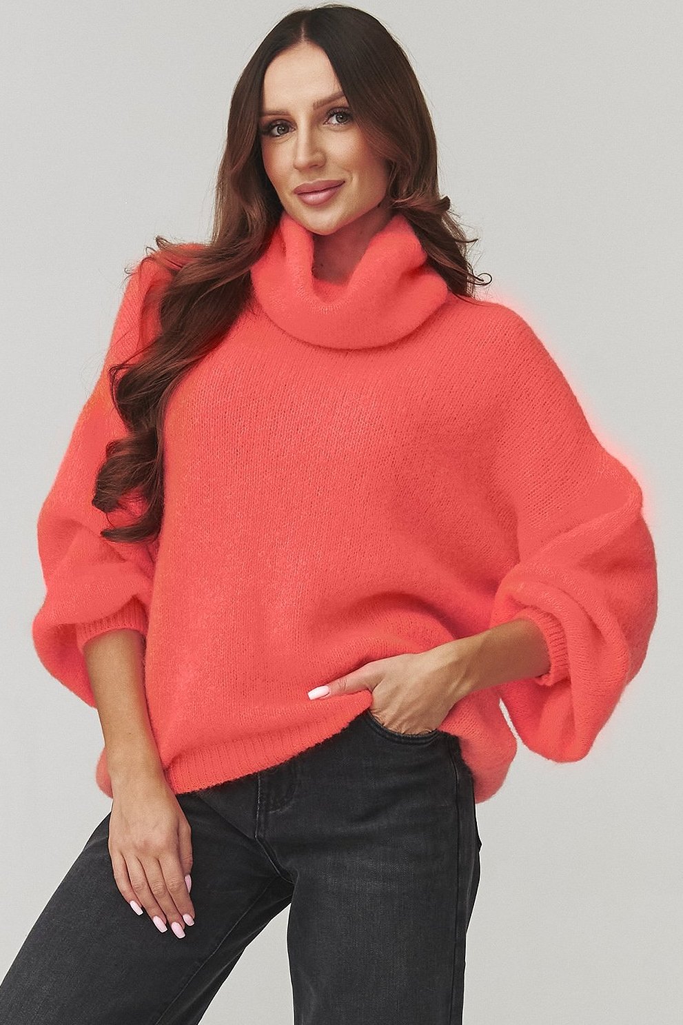 Stylový dámský oversize rolák korálové barvy. Dokonalý kousek pro podzimní a zimní období.