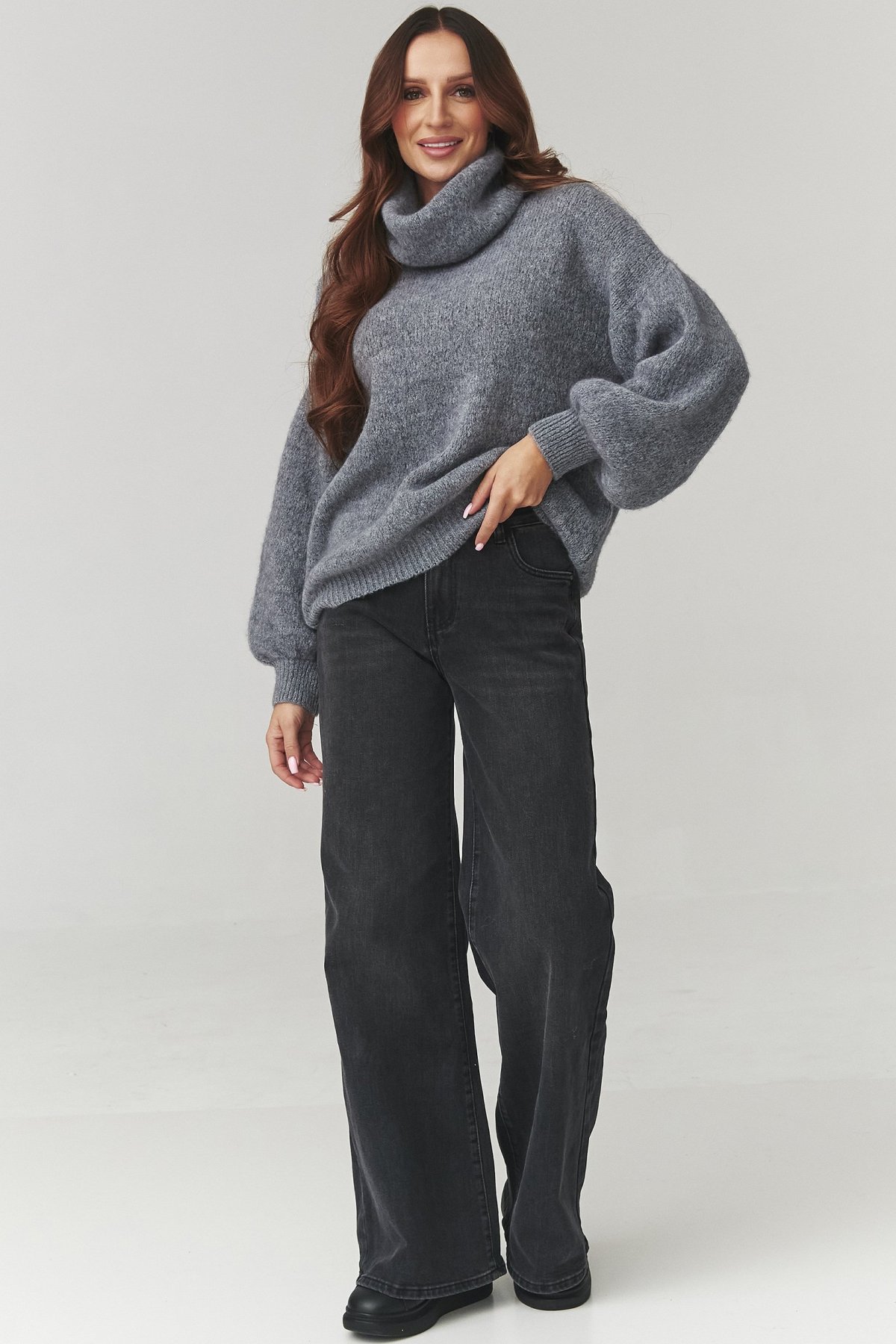- dámský volný svetr s rolákem z příze s podílem baby alpaky