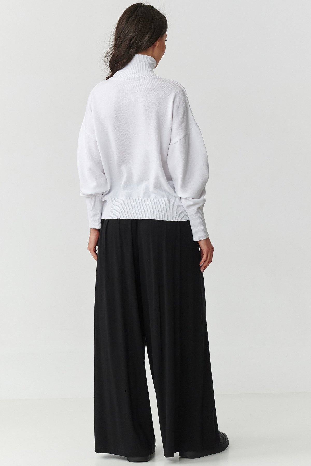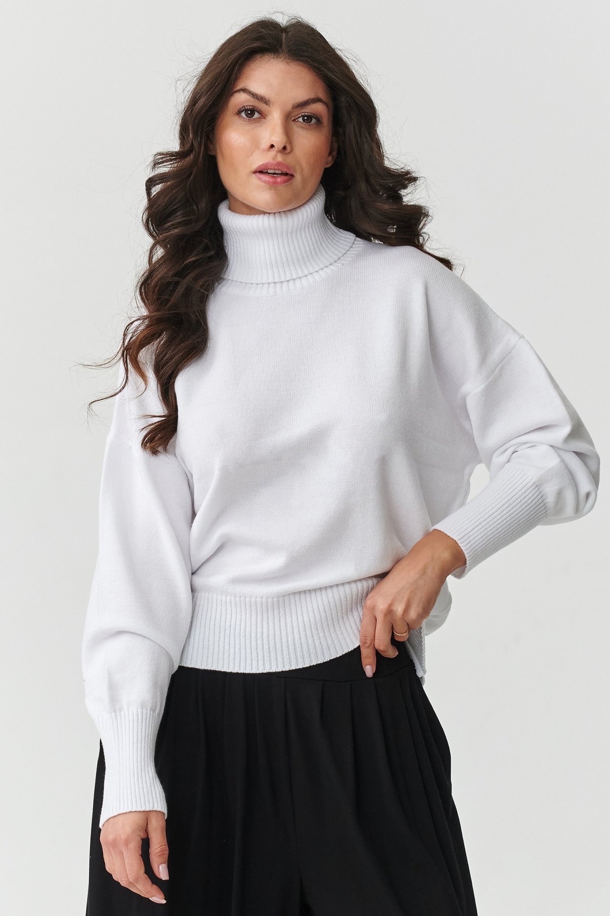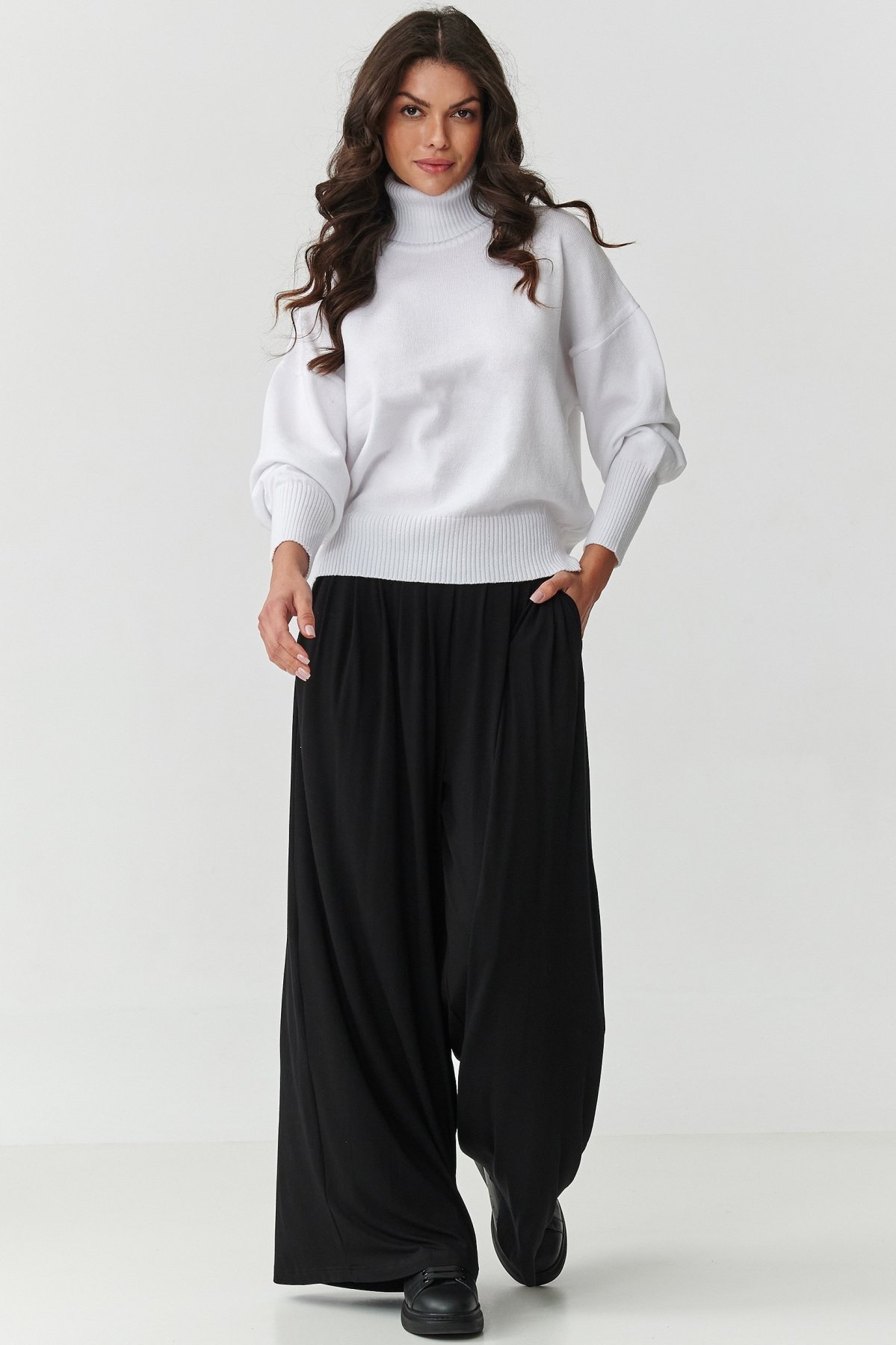 Vsaďte na eleganci a pohodlí v tom nejlepším podání. Tento rolákový svetřík je prostě něco, co musíte mít. Je vyroben z tkaniny unikátního složení. Zaujme svou měkkostí, elasticitou a trvanlivostí. Díky převaze viskózy je svetřík neobvykle příjemný na dotek. Dovoluje pokožce dýchat a krásně se přizpůsobí ženským křivkám. Přídavek syntetických vláken zajišťuje, že se tkanina nevytahá a udržuje si svůj tvar i po více praních. Navíc nežmolkatí, takže si můžete užívat dlouhověkost tohoto kousku. A proč je vlastně tento kousek hodný hříchu? Klasický rolák vás ochrání před chladem a dodává elegantní look během chladnějších měsíců. Oversize střih s lehce sníženou linii ramen zajišťuje pohodlí a maximální svobodu pohybu. Elastické manžety rukávů i spodního lemu dodávají celku opravdu vkusný charakter. Univerzální design je vhodný pro každodenní nošení, ale potěší i v mnohem elegantnějších kombinacích pro práci i volný čas. Můžete jej doplnit klasickými jeansy, elegantními kalhotami nebo klidně plisovanou sukní. Prostě a jednoduše stylový kousek v každé variantě. Pokud tedy hledáte svetřík, který spojí komfort, kvalitu a nadčasový styl, tento rolákový kousek bude dost možná vašim oblíbencem v šatníku. A to nejen na jednu sezónu. Vybírat můžete z mnoha vkusných barev.
