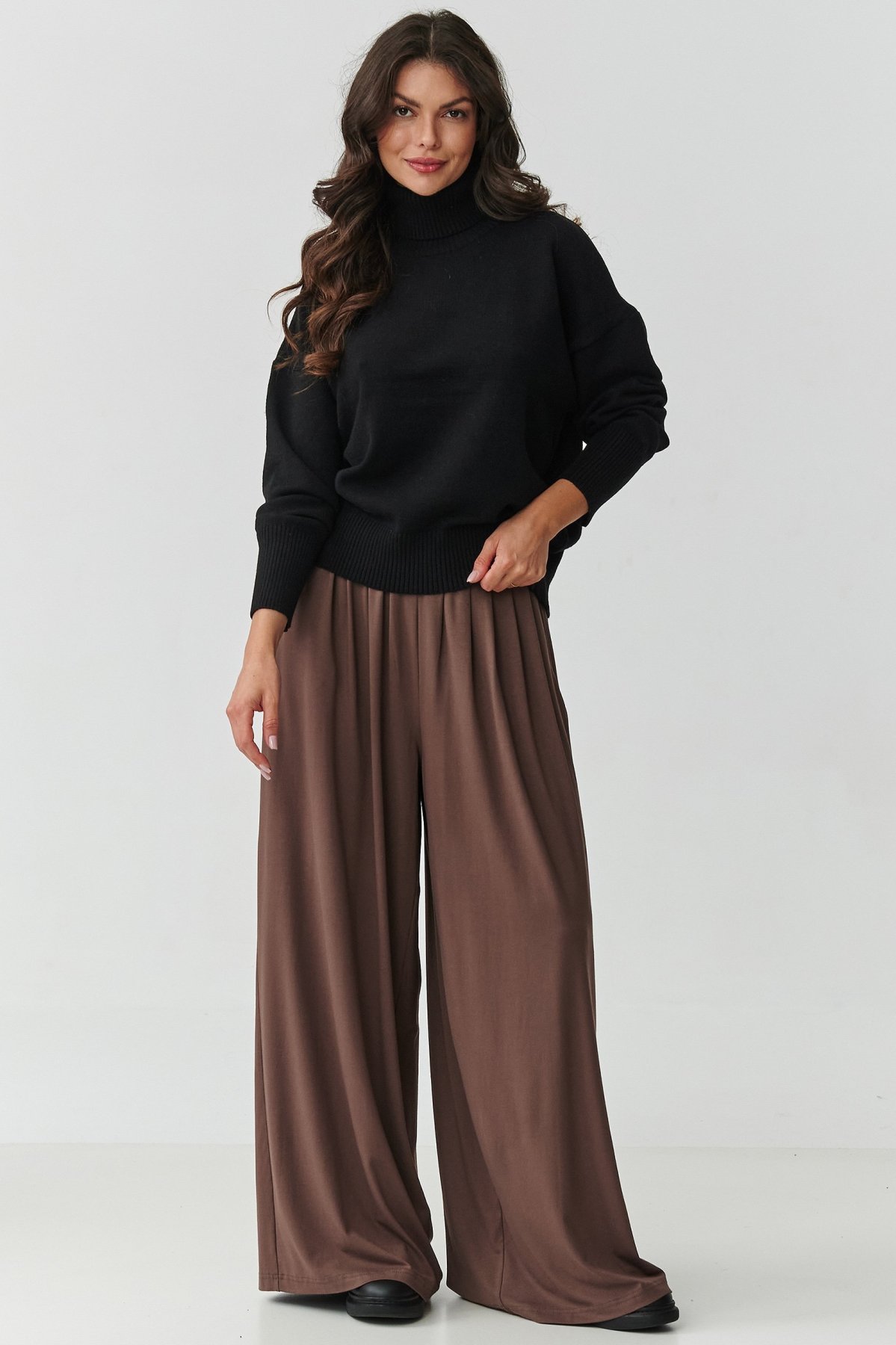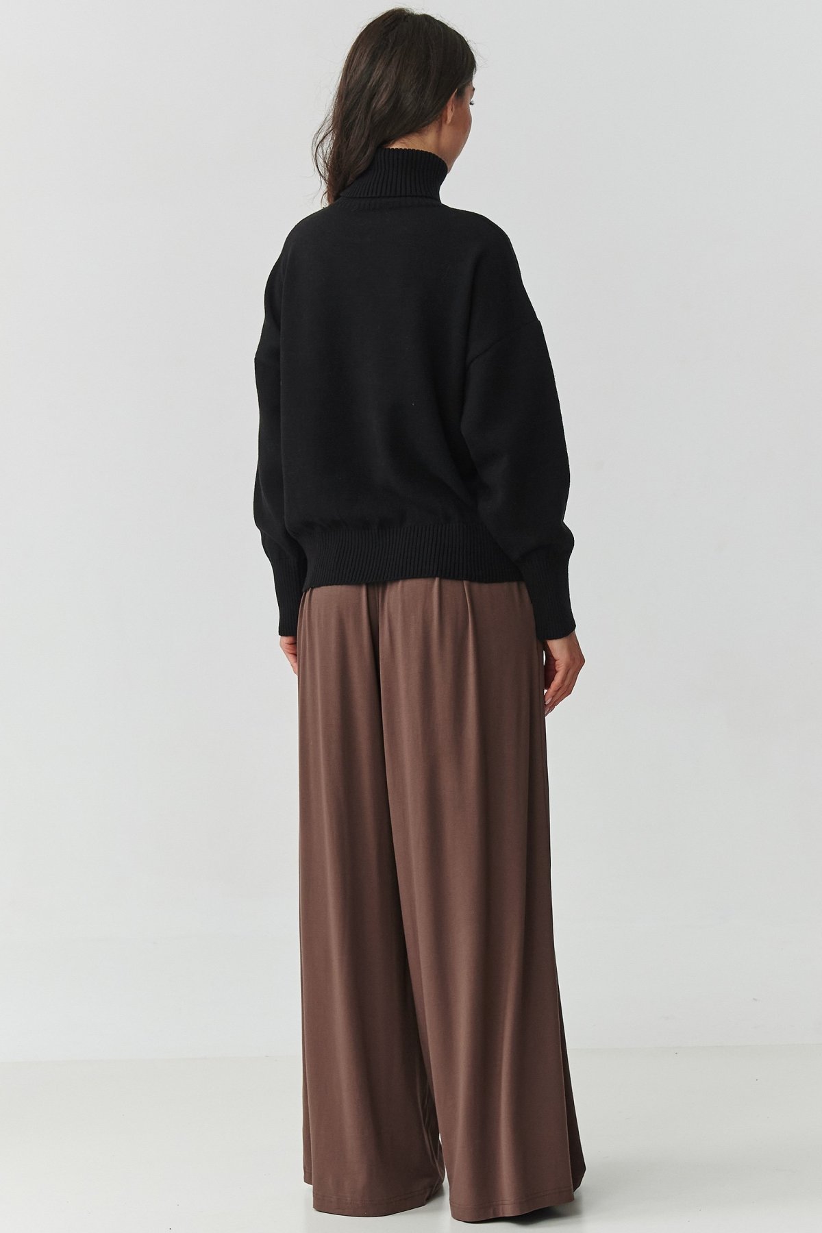Vsaďte na eleganci a pohodlí v tom nejlepším podání. Tento rolákový svetřík je prostě něco, co musíte mít. Je vyroben z tkaniny unikátního složení. Zaujme svou měkkostí, elasticitou a trvanlivostí. Díky převaze viskózy je svetřík neobvykle příjemný na dotek. Dovoluje pokožce dýchat a krásně se přizpůsobí ženským křivkám. Přídavek syntetických vláken zajišťuje, že se tkanina nevytahá a udržuje si svůj tvar i po více praních. Navíc nežmolkatí, takže si můžete užívat dlouhověkost tohoto kousku. A proč je vlastně tento kousek hodný hříchu? Klasický rolák vás ochrání před chladem a dodává elegantní look během chladnějších měsíců. Oversize střih s lehce sníženou linii ramen zajišťuje pohodlí a maximální svobodu pohybu. Elastické manžety rukávů i spodního lemu dodávají celku opravdu vkusný charakter. Univerzální design je vhodný pro každodenní nošení, ale potěší i v mnohem elegantnějších kombinacích pro práci i volný čas. Můžete jej doplnit klasickými jeansy, elegantními kalhotami nebo klidně plisovanou sukní. Prostě a jednoduše stylový kousek v každé variantě. Pokud tedy hledáte svetřík, který spojí komfort, kvalitu a nadčasový styl, tento rolákový kousek bude dost možná vašim oblíbencem v šatníku. A to nejen na jednu sezónu. Vybírat můžete z mnoha vkusných barev.