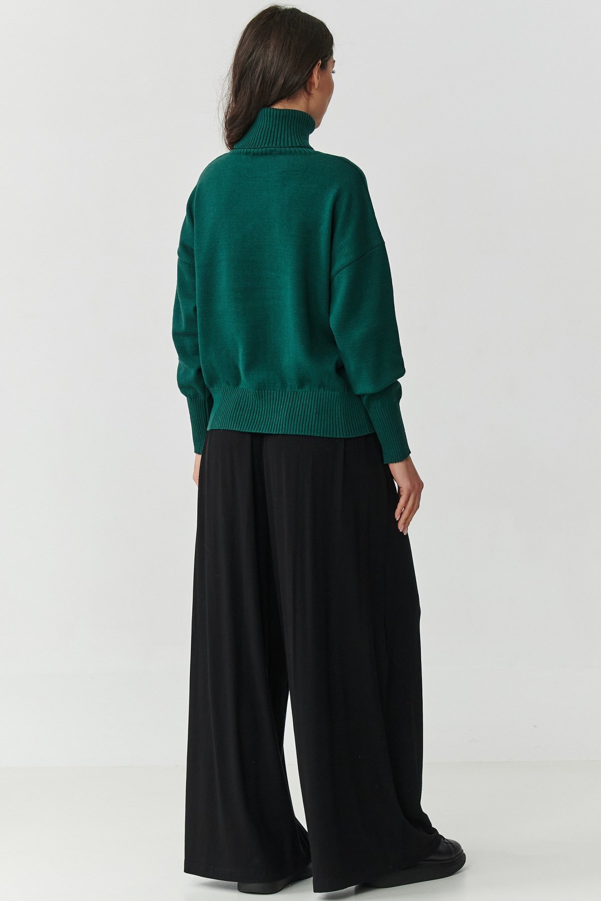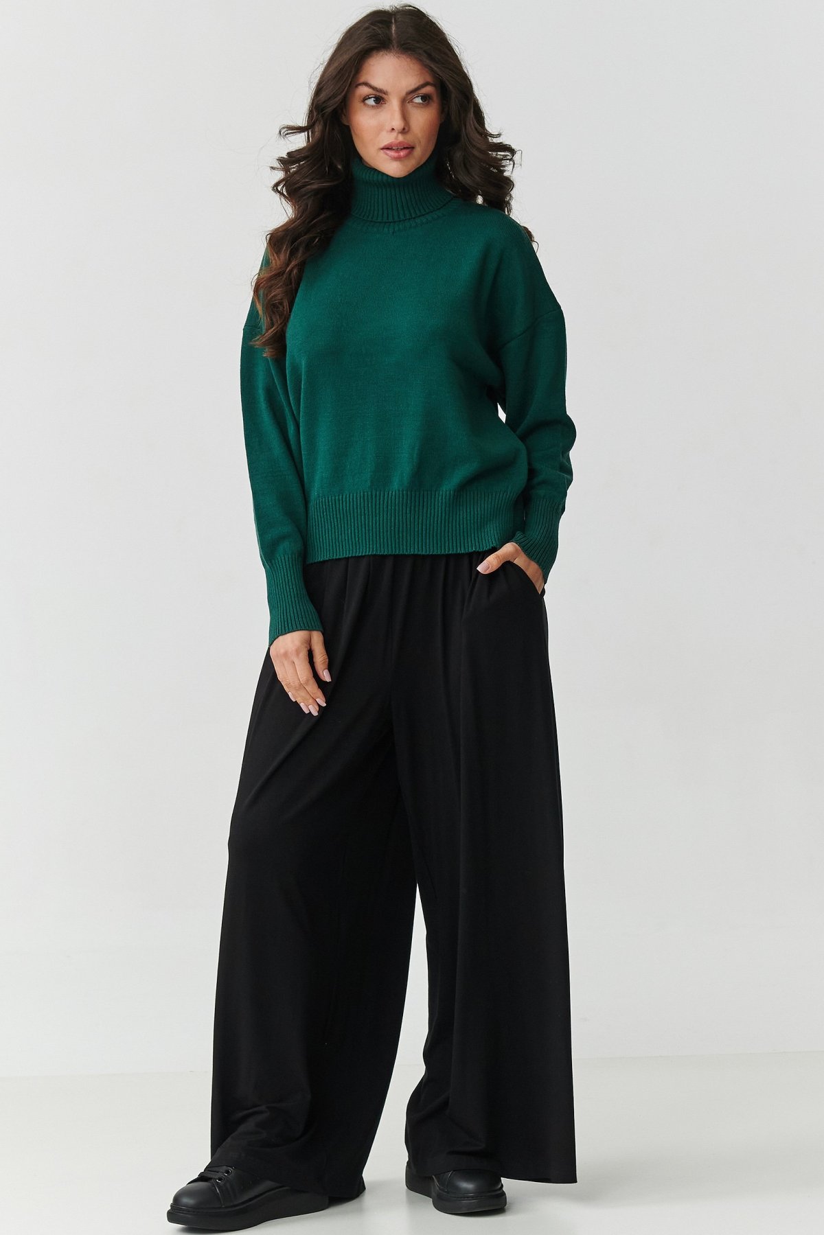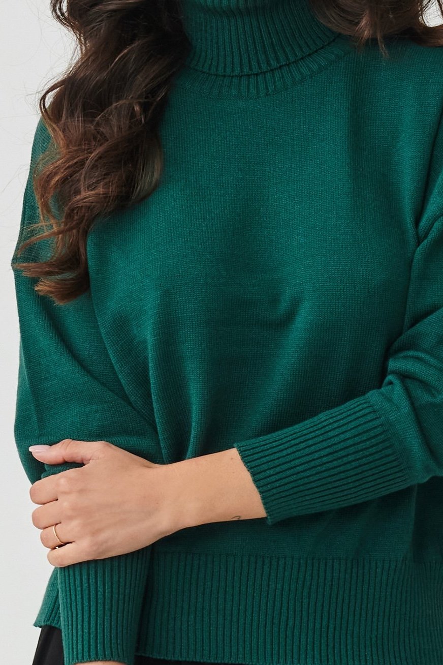 Vsaďte na eleganci a pohodlí v tom nejlepším podání. Tento rolákový svetřík je prostě něco, co musíte mít. Je vyroben z tkaniny unikátního složení. Zaujme svou měkkostí, elasticitou a trvanlivostí. Díky převaze viskózy je svetřík neobvykle příjemný na dotek. Dovoluje pokožce dýchat a krásně se přizpůsobí ženským křivkám. Přídavek syntetických vláken zajišťuje, že se tkanina nevytahá a udržuje si svůj tvar i po více praních. Navíc nežmolkatí, takže si můžete užívat dlouhověkost tohoto kousku. A proč je vlastně tento kousek hodný hříchu? Klasický rolák vás ochrání před chladem a dodává elegantní look během chladnějších měsíců. Oversize střih s lehce sníženou linii ramen zajišťuje pohodlí a maximální svobodu pohybu. Elastické manžety rukávů i spodního lemu dodávají celku opravdu vkusný charakter. Univerzální design je vhodný pro každodenní nošení, ale potěší i v mnohem elegantnějších kombinacích pro práci i volný čas. Můžete jej doplnit klasickými jeansy, elegantními kalhotami nebo klidně plisovanou sukní. Prostě a jednoduše stylový kousek v každé variantě. Pokud tedy hledáte svetřík, který spojí komfort, kvalitu a nadčasový styl, tento rolákový kousek bude dost možná vašim oblíbencem v šatníku. A to nejen na jednu sezónu. Vybírat můžete z mnoha vkusných barev.