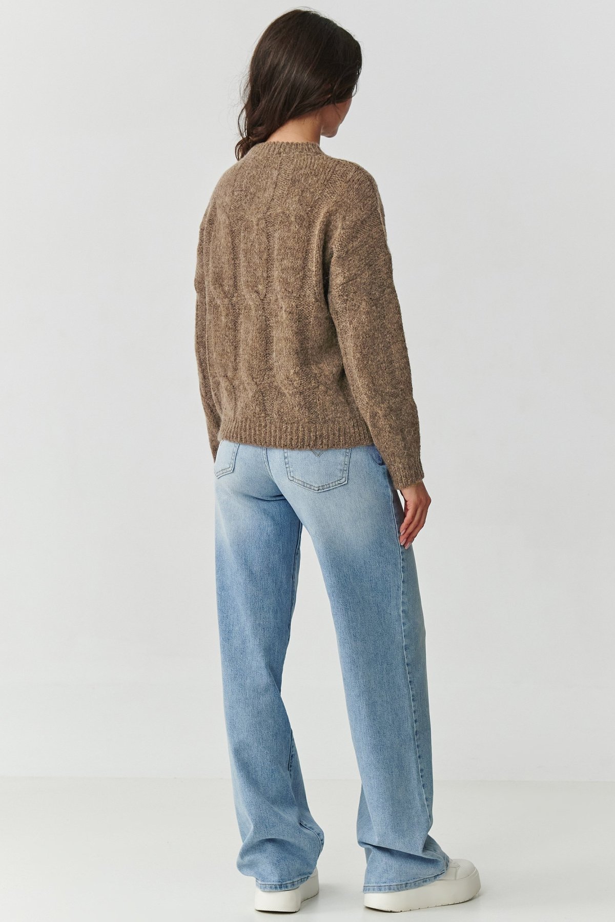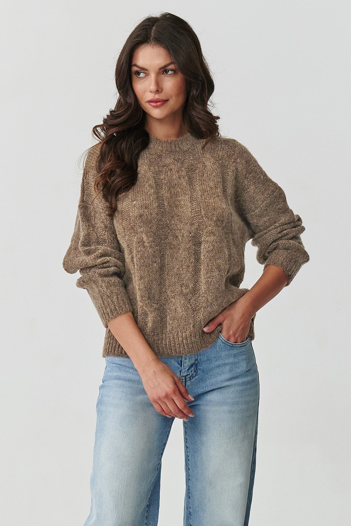 Dámský svetr s copánkovým úpletem, který je vyroben ze směsi kid mohéru, vlny, polyamidu a akrylu. To je kombinace, která spojuje eleganci, komfort i teplo. Krásně měkká a vzdušná tkanina příjemně ovine křivky a zajistí opravdový tepelný komfort během chladnějších dnů. Klasický střih s půlkulatým dekoltem a copovým úpletem dodává nadčasový charakter a zajistí, že v tomto kousku budete šik a in v každé situaci. Střih je volnější, umožňuje svobodu pohybu a komfort nošení. Na rukávech i dolním lemu jsou příjemné manžety. Dobře se přizpůsobí a pěkně padnou. Tento kousek s lehkostí doplníte k džínám nebo i elegantní sukni. Můžete vybírat z mnoha atraktivních a módních barev. Každá barva zdůrazní váš individuální styl.