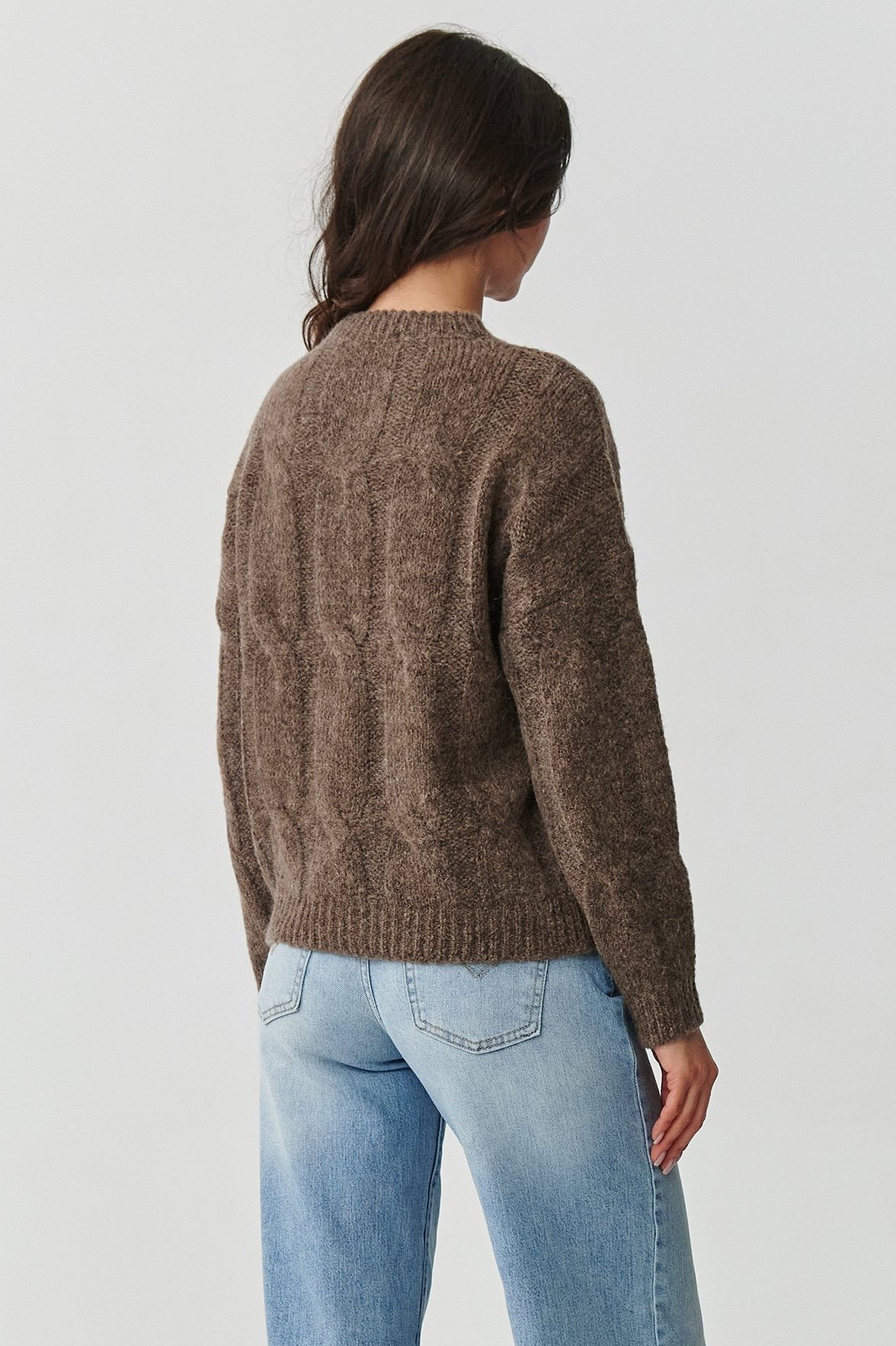 Dámský svetr s copánkovým úpletem, který je vyroben ze směsi kid mohéru, vlny, polyamidu a akrylu. To je kombinace, která spojuje eleganci, komfort i teplo. Krásně měkká a vzdušná tkanina příjemně ovine křivky a zajistí opravdový tepelný komfort během chladnějších dnů. Klasický střih s půlkulatým dekoltem a copovým úpletem dodává nadčasový charakter a zajistí, že v tomto kousku budete šik a in v každé situaci. Střih je volnější, umožňuje svobodu pohybu a komfort nošení. Na rukávech i dolním lemu jsou příjemné manžety. Dobře se přizpůsobí a pěkně padnou. Tento kousek s lehkostí doplníte k džínám nebo i elegantní sukni. Můžete vybírat z mnoha atraktivních a módních barev. Každá barva zdůrazní váš individuální styl.