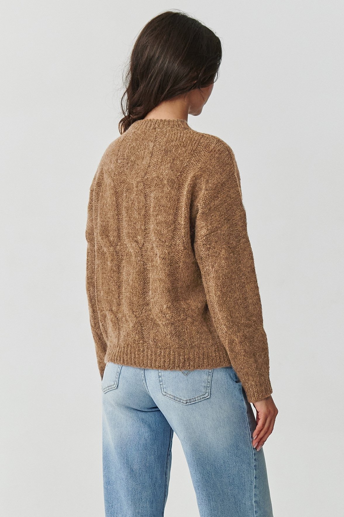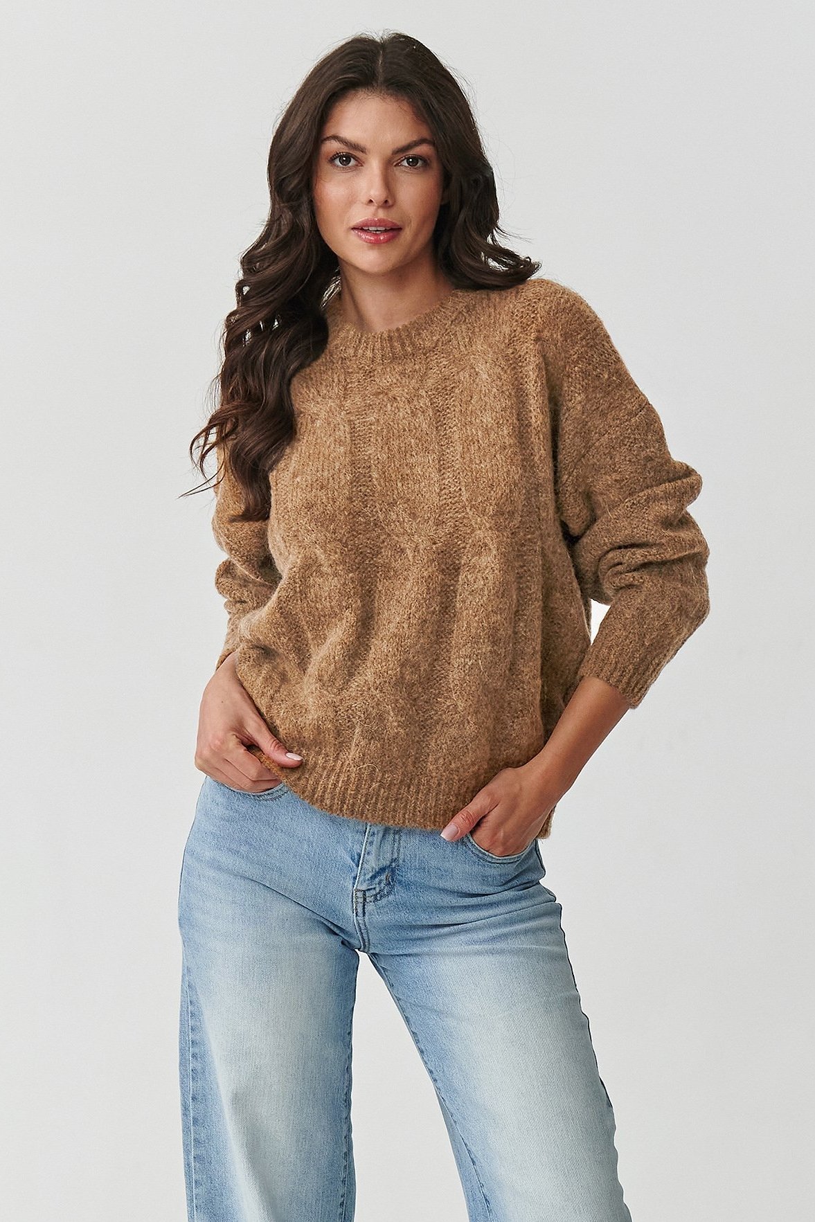 Dámský svetr s copánkovým úpletem, který je vyroben ze směsi kid mohéru, vlny, polyamidu a akrylu. To je kombinace, která spojuje eleganci, komfort i teplo. Krásně měkká a vzdušná tkanina příjemně ovine křivky a zajistí opravdový tepelný komfort během chladnějších dnů. Klasický střih s půlkulatým dekoltem a copovým úpletem dodává nadčasový charakter a zajistí, že v tomto kousku budete šik a in v každé situaci. Střih je volnější, umožňuje svobodu pohybu a komfort nošení. Na rukávech i dolním lemu jsou příjemné manžety. Dobře se přizpůsobí a pěkně padnou. Tento kousek s lehkostí doplníte k džínám nebo i elegantní sukni. Můžete vybírat z mnoha atraktivních a módních barev. Každá barva zdůrazní váš individuální styl.