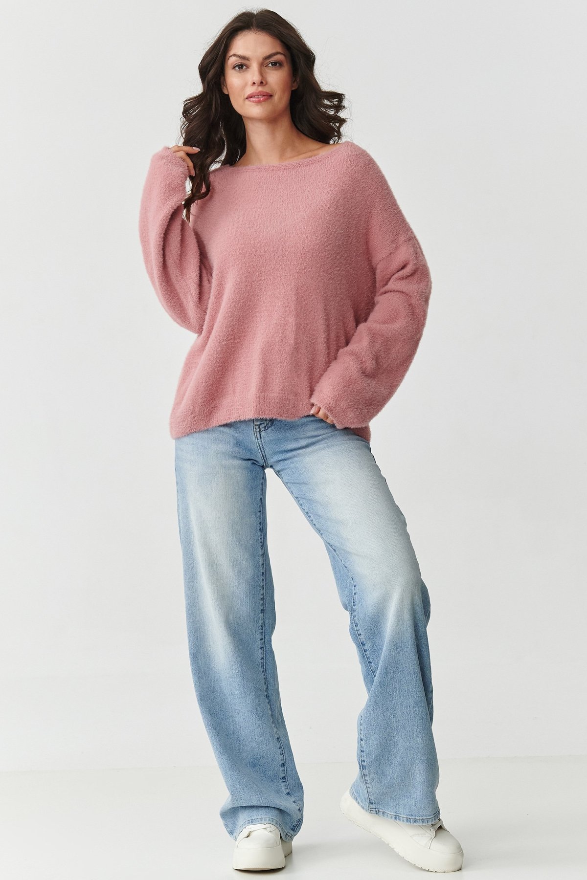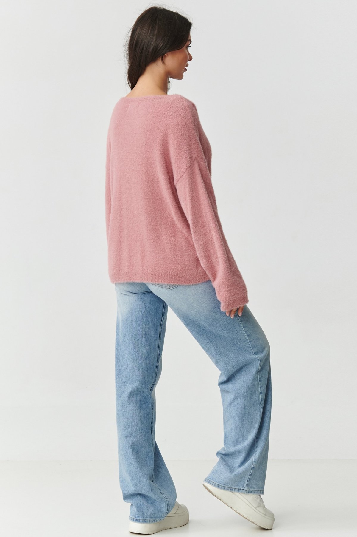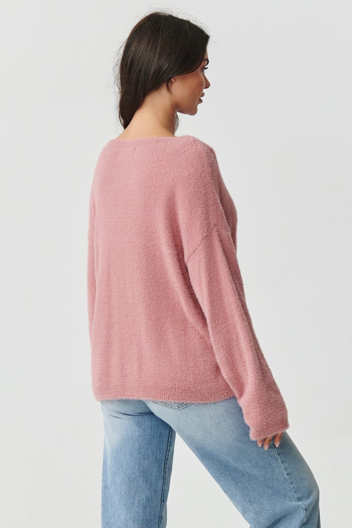 Dámský nadýchaný svetřík, který v sobě spojuje moderní design a výjimečné pohodlí. Měkký a na dotek příjemně nadýchaný materiál smyslně ovine tělo jako příjemná deka. Udrží vás v teple i během chladnějších dní. Volný střih s lehce sníženou linií ramen dodává celku lehkost a neformální charakter. Oceníte jej jako prvek pro ležérní stylizace, ale i ty více elegantní. Klasický V výstřih zvýrazňuje linii ramena a dekoltu a široké rukávy jsou ukončeny jemným lemováním. Svetr se hodí k džínám, sukni i leginám. Je to jednoduše kousek, který se rychle stane vašim basic prvkem v šatníku. Tento skvost je dostupný v příjemných barvách. Všechny odstíny jsou nadčasové, ženské a velmi univerzální.