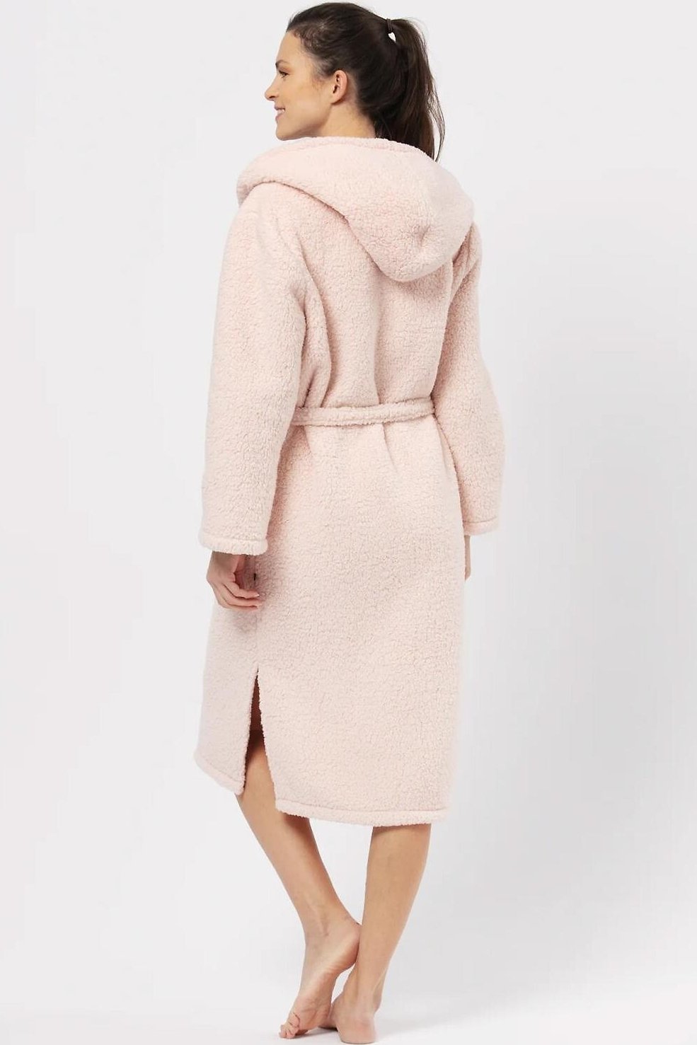 Dámský župan s kapucí. Vyrobený z plyšově hebkého materiálu, který příjemně zahřeje a přitom je lehký na nošení.