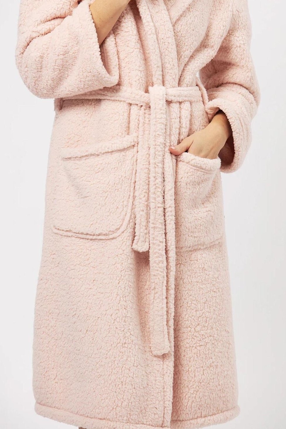 Kapuce a dlouhé rukávy poskytují extra komfort během chladných večerů, pásek v pase umožňuje přizpůsobit střih postavě. Praktické kapsy a rozparky po stranách zvyšují pohodlí i volnost pohybu. Jemný, pudrově růžový odstín dodává županu romantický, uklidňující charakter. Ideální pro domácí relax, víkendová rána i večery po koupeli – stylový a měkoučký kousek, který si zamilujete na první dotek.