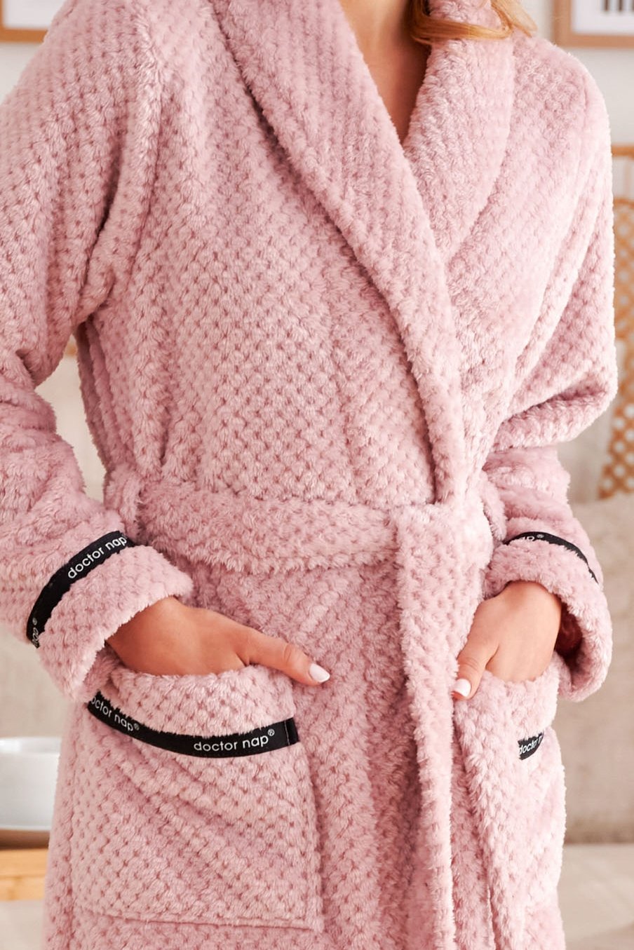 Dlouhý dámský župan z mimořádně měkkého soft materiálu, který jemně obejme tělo a poskytne příjemné teplo i v nejchladnějších dnech. Jeho delší střih sahající pod kolena zaručuje maximální pohodlí a pocit útulna, kapuce chrání před chladem a dodává ležérní styl.