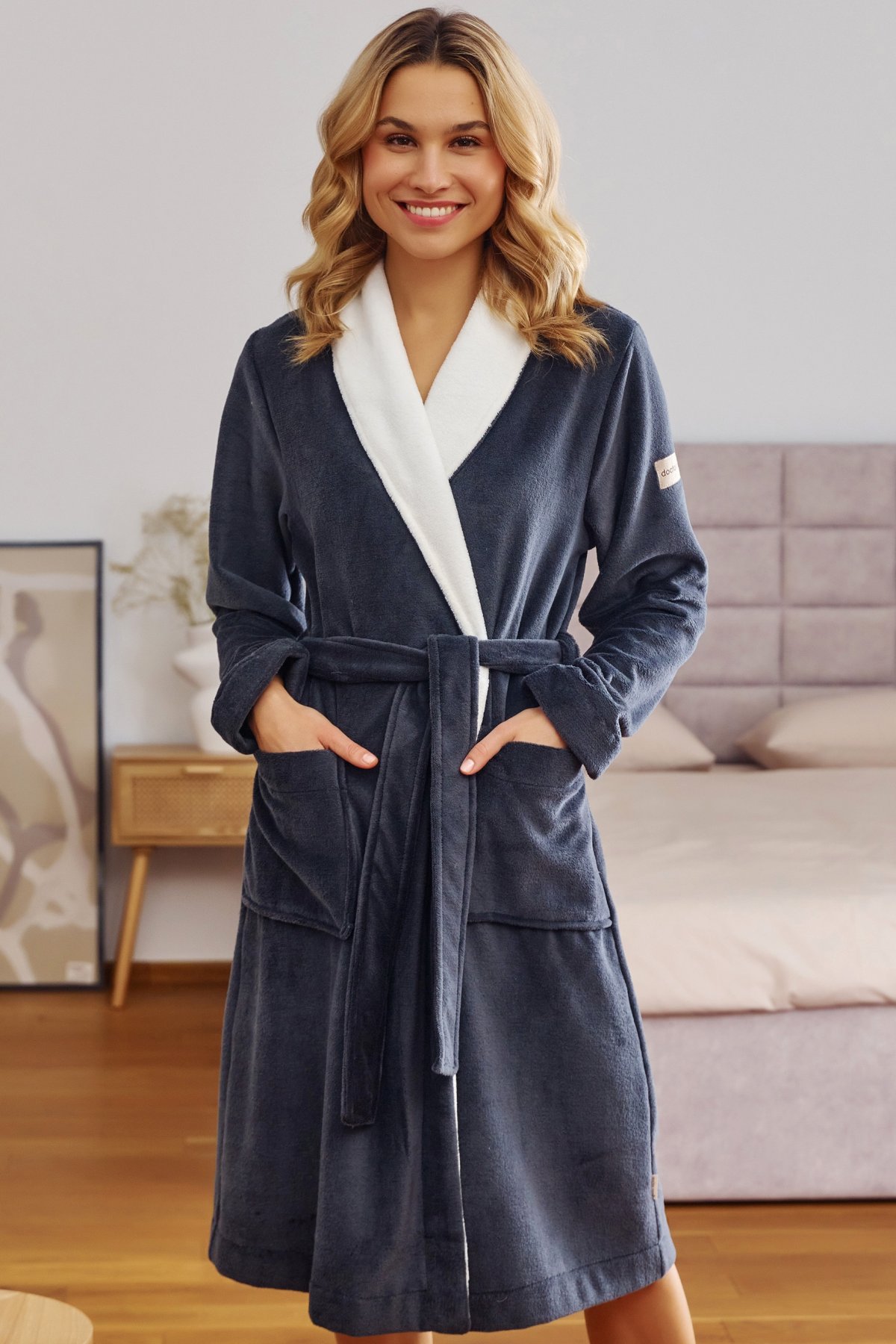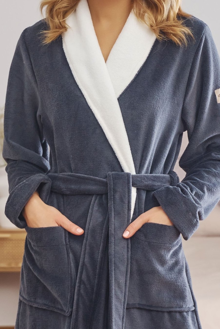 Dlouhý dámský župan z extra měkkého soft materiálu, který vás zahřeje během chladných rán i večerů. Díky prodlouženému střihu a praktické kapuci poskytuje komfort, pásek v pase krásně zvýrazní siluetu.