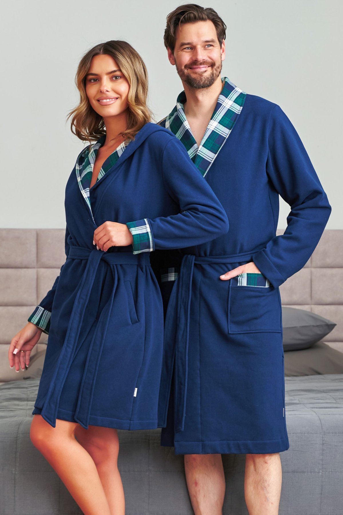 Dámský krátký župan s kapucí spojující klasický vzhled a komfort nošení. Hebká bavlna příjemně hřeje po koupeli i během lenivých rán, přitom je prodyšná a šetrná k pokožce. Praktická kapuce dodá pocit útulna, pásek v pase umožní snadno zvýraznit siluetu. Dvě prostorné kapsy pojmou veškeré drobnosti nebo zahřejí vaše ruce. Kostkované podšití na kapuci a manžetách županu propůjčuje moderní, svěží šmrnc a skvěle ladí s pyžamy a nočními košilemi ze stejné kolekce. Díky nadčasovému střihu je model ideální pro celodenní nošení – od ranní kávy až po večerní relax. Pokud hledáte pohodlný kousek s promyšlenými detaily a kvalitním provedením, tenhle župan bude sázkou na jistotu.