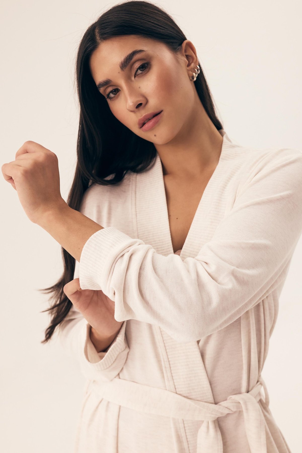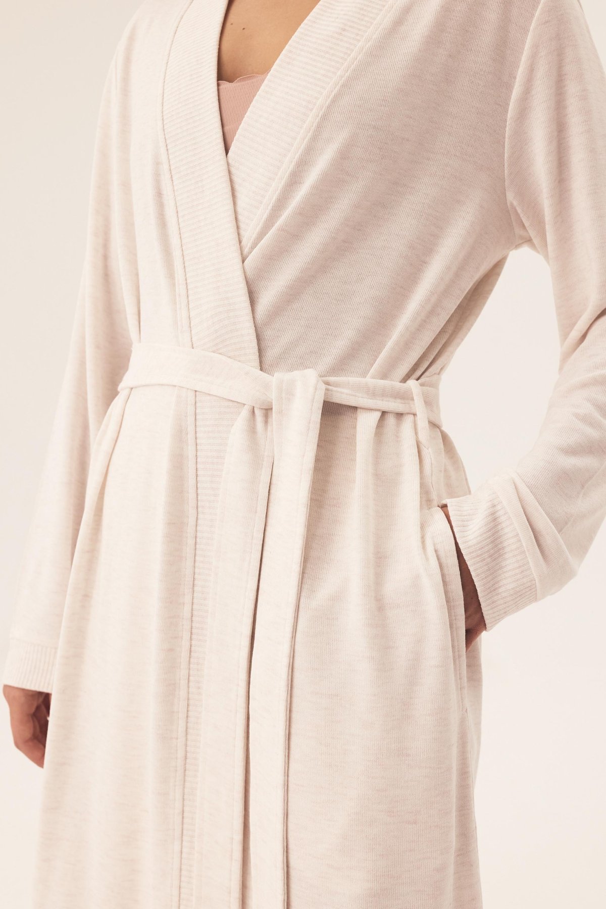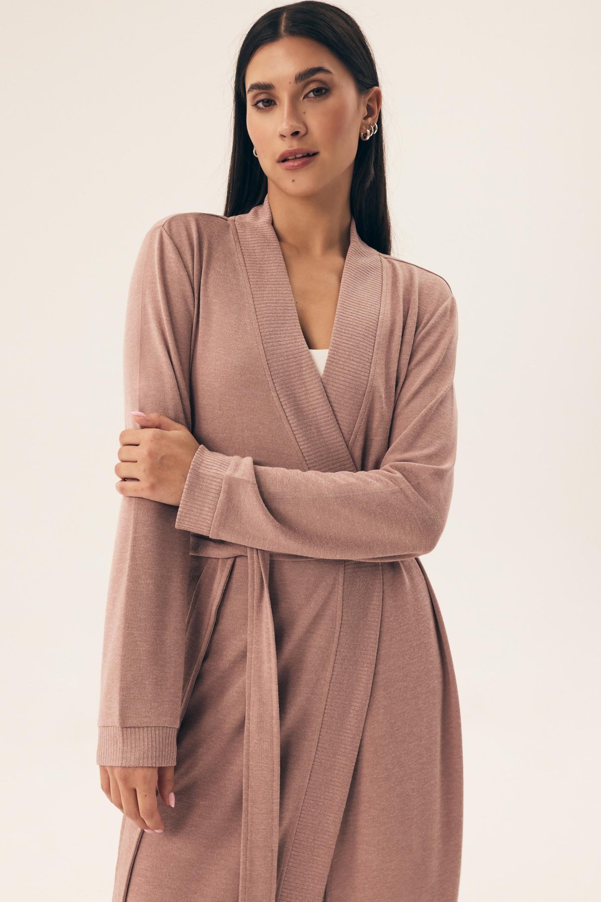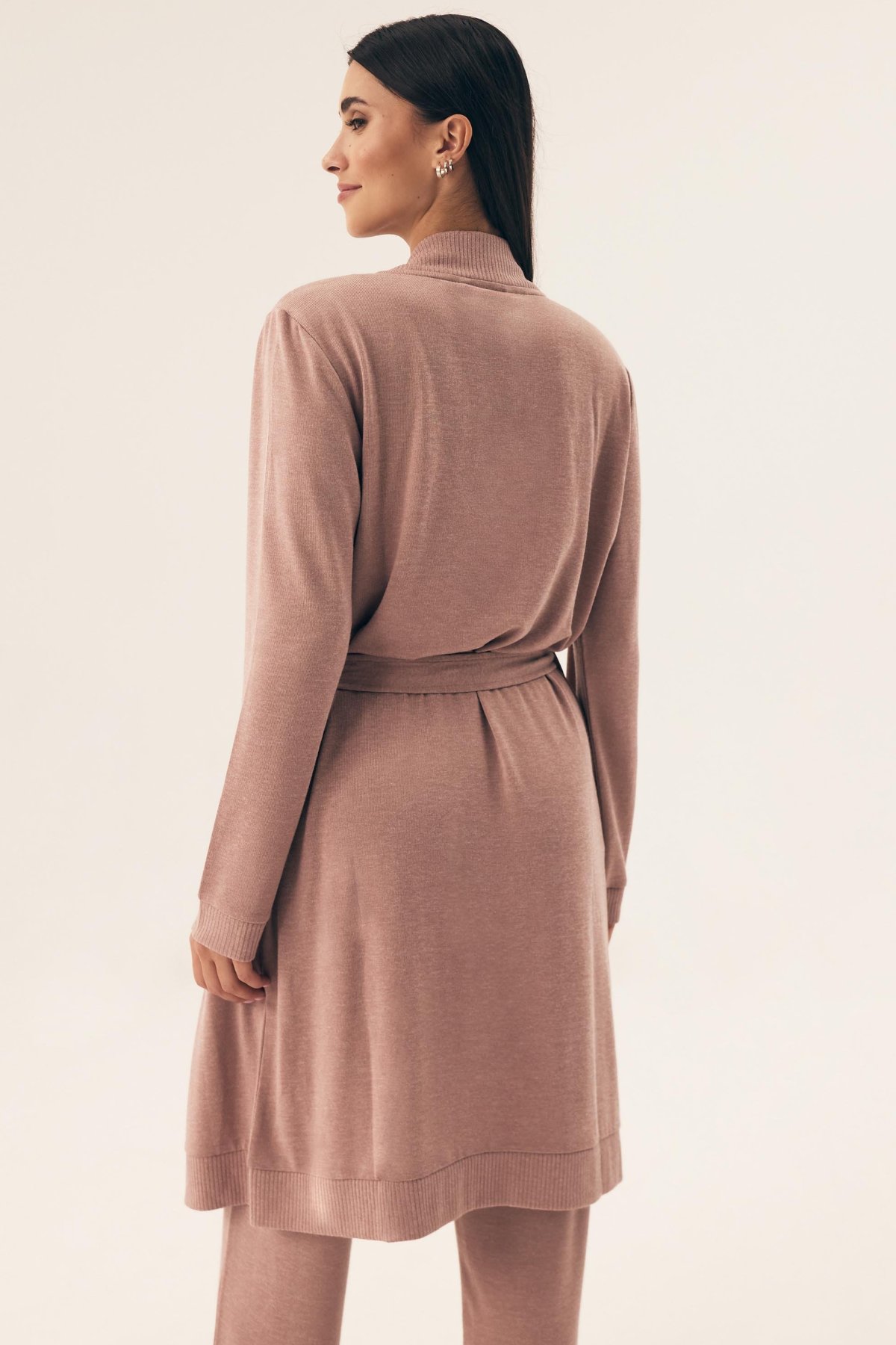 Dámský župan Boar je ideální pro ženy, které ocení kombinaci komfortu a elegance. Vyroben z kvalitního materiálu s podílem viskózy a elastanu, je mimořádně měkký, prodyšný a příjemný na dotek. Jeho jednoduchý střih s páskem v pase zvýrazní siluetu a délka po kolena poskytne optimální pohodlí. Jemný růžový nebo pískový odstín dodává županu ženský, sofistikovaný vzhled — perfektní pro domácí pohodu i večerní relax.