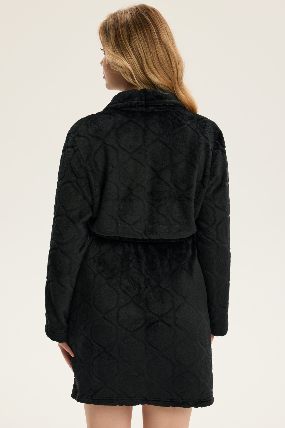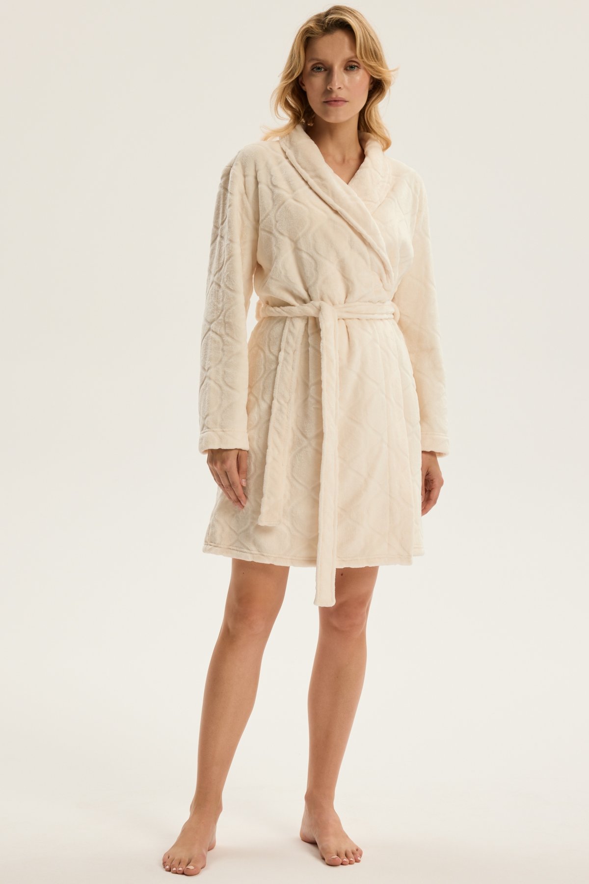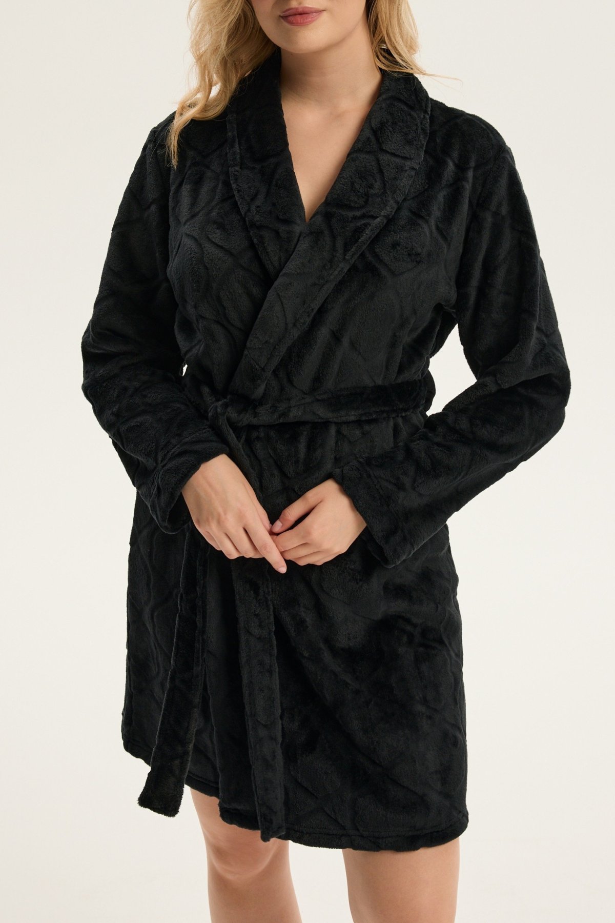 Dámský župan Coco je ztělesněním jemnosti, pohodlí a ženské elegance. Jeho krátký střih nad kolena krásně zvýrazňuje siluetu, šálový límec dodává modelu nádech luxusu. Vyrobený z hebkého materiálu, příjemně hřeje a hladí pokožku, díky čemuž je ideální pro chvíle odpočinku po koupeli i klidné večery doma. Pásek v pase umožňuje upravit obvod podle potřeby a podtrhnout ženské křivky. Coco je dokonalou kombinací stylu, pohodlí a kvality – župan, který promění běžný večer v okamžik domácího luxusu.