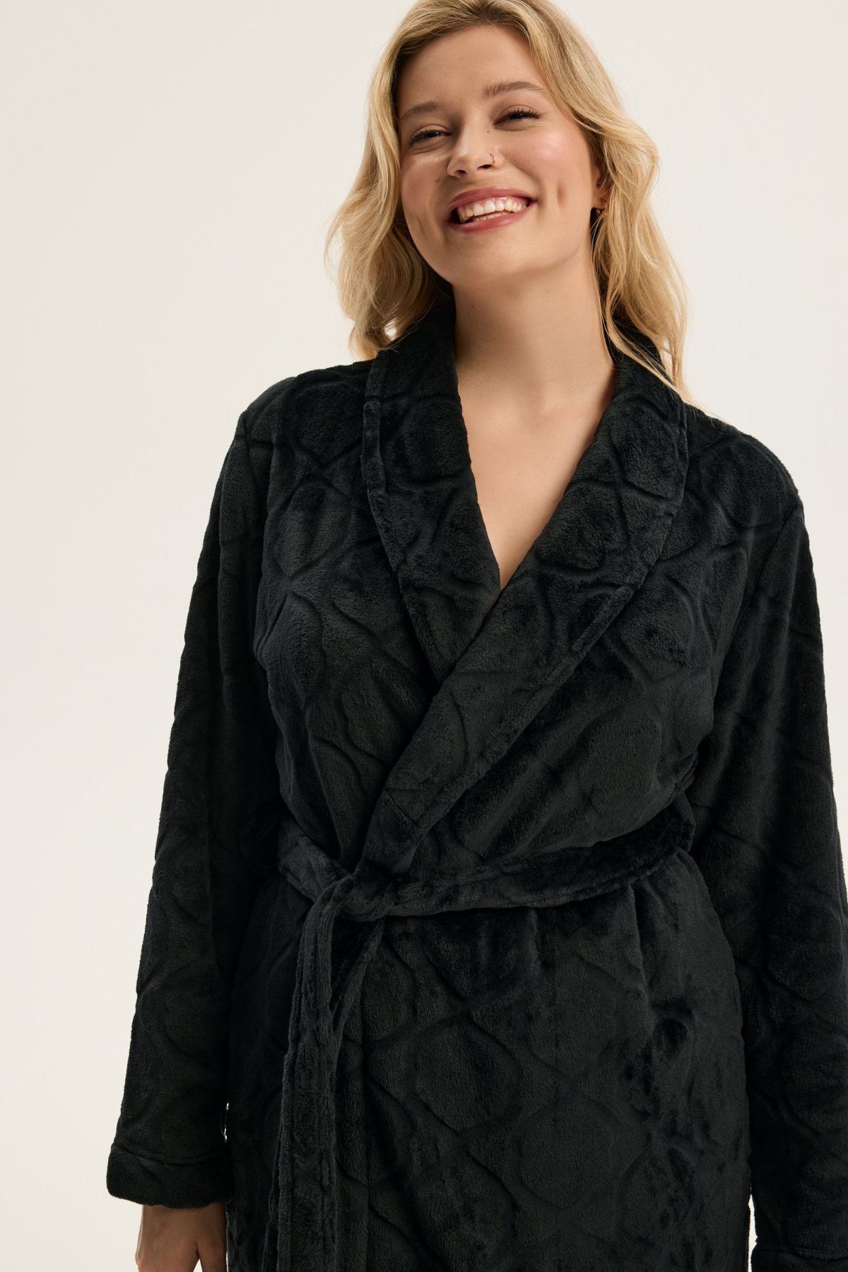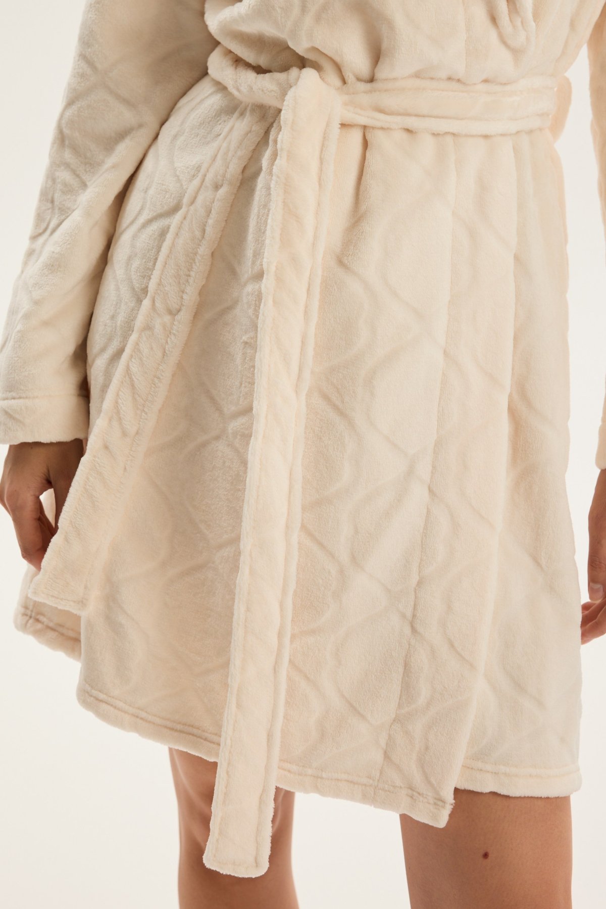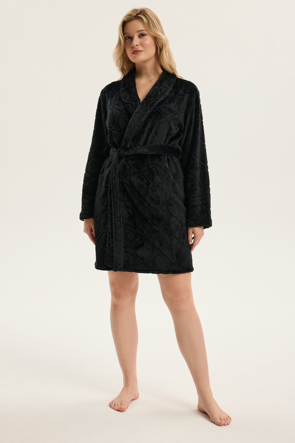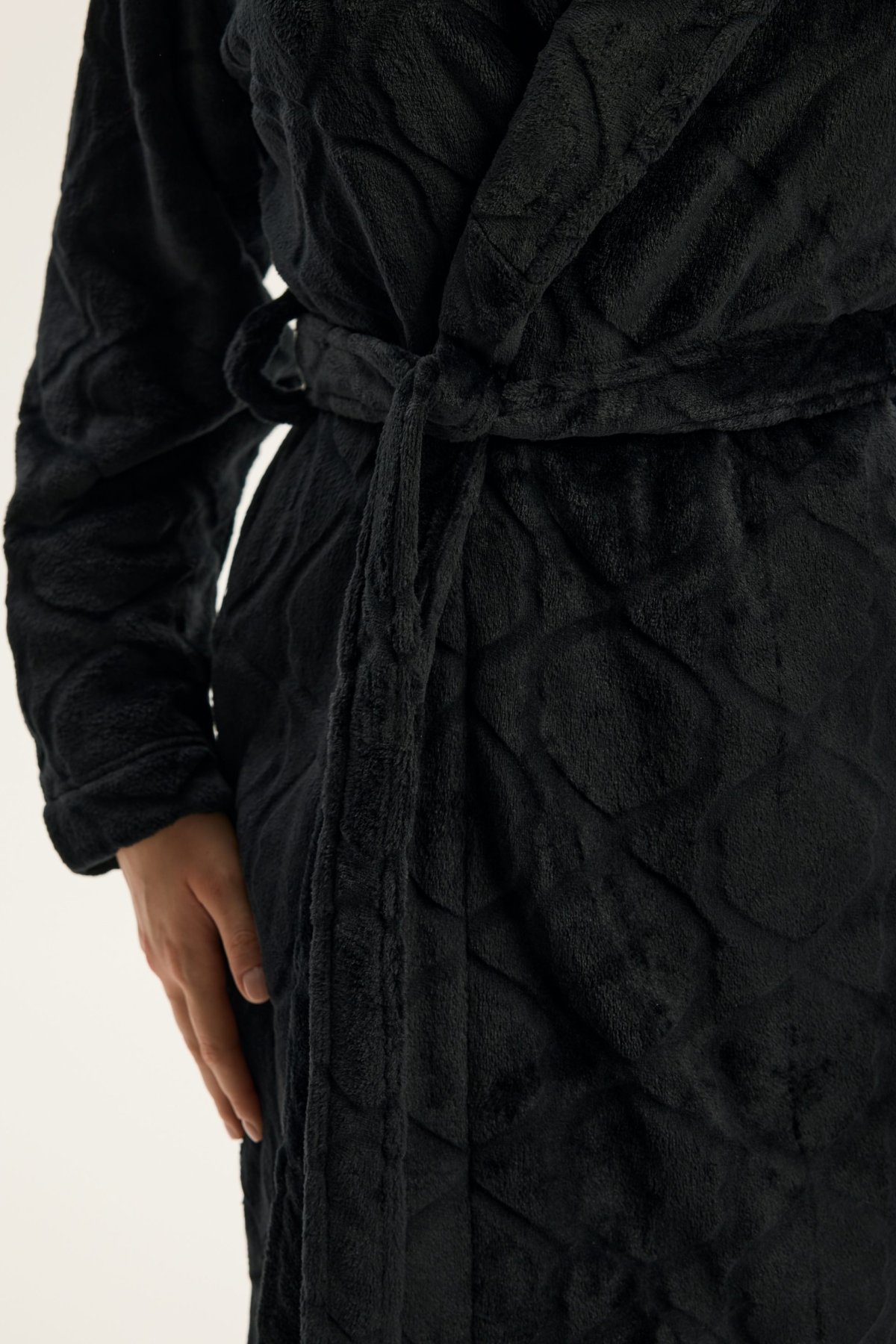 Dámský župan Coco je ztělesněním jemnosti, pohodlí a ženské elegance. Jeho krátký střih nad kolena krásně zvýrazňuje siluetu, šálový límec dodává modelu nádech luxusu. Vyrobený z hebkého materiálu, příjemně hřeje a hladí pokožku, díky čemuž je ideální pro chvíle odpočinku po koupeli i klidné večery doma. Pásek v pase umožňuje upravit obvod podle potřeby a podtrhnout ženské křivky. Coco je dokonalou kombinací stylu, pohodlí a kvality – župan, který promění běžný večer v okamžik domácího luxusu.